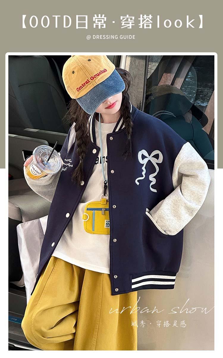 Jaqueta de Beisebol de Outono para Meninas 2025 Nova Moda Infantil Elegante Top Estilo Outono para Meninas