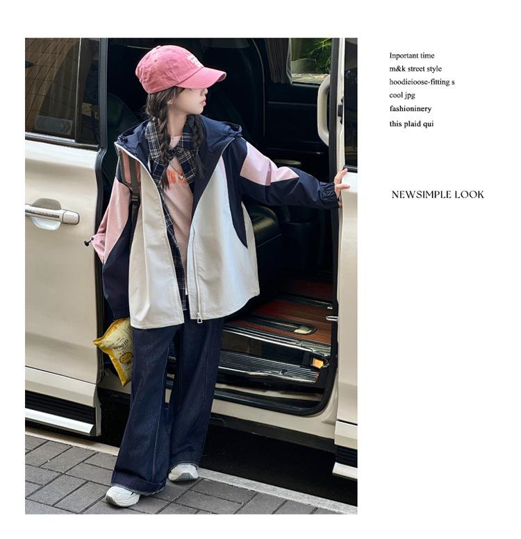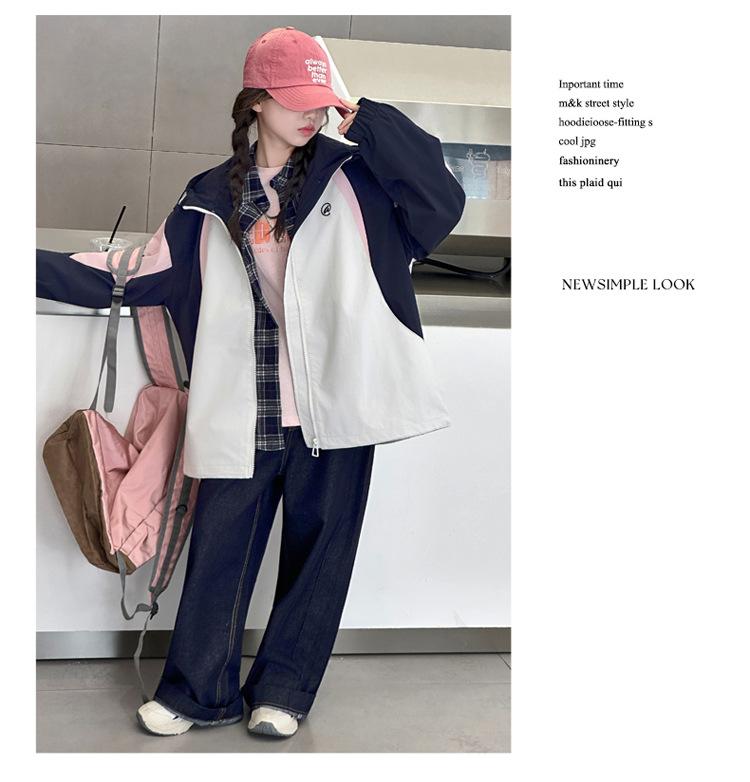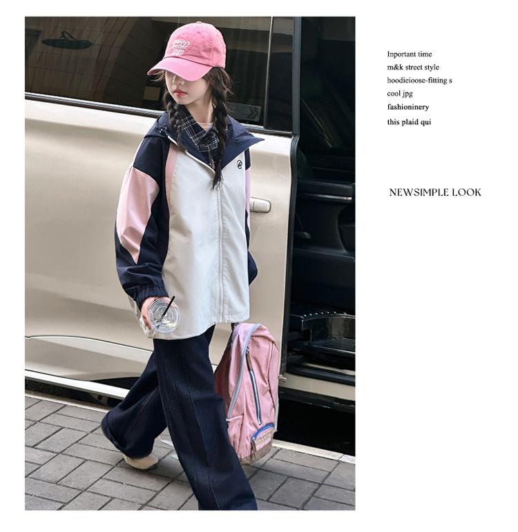Casaco Corta-Vento Outdoor de Outono para Meninas 2025 Novo Estilo Jaqueta Infantil Grande para Meninas Estilo Coreano Jaqueta Casual Infantil de Primavera e Outono