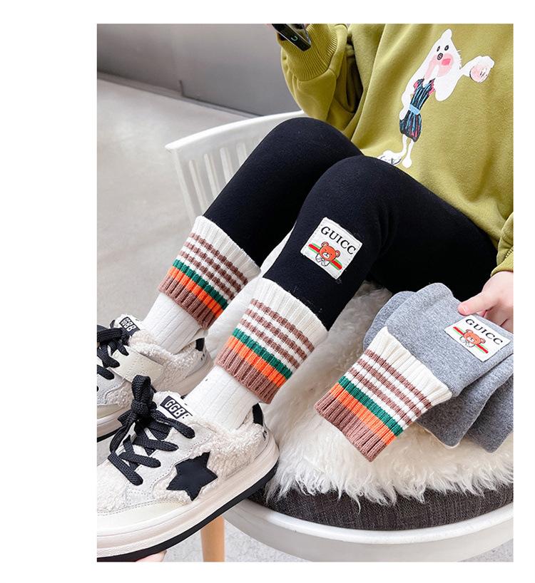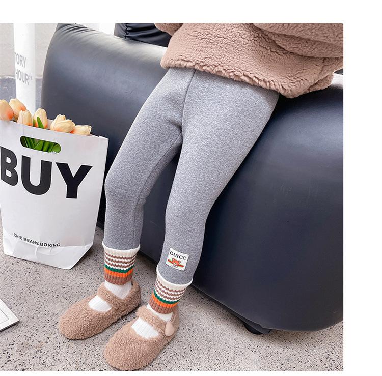 Leggings modernas forradas com lã para meninas outono e inverno 2025 nova roupa infantil calça comprida de lã peça única roupa de inverno para meninas