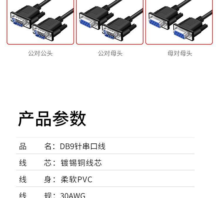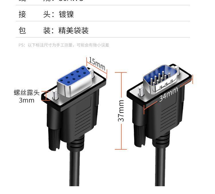 Linha de porta serial DB9 linha de conexão RS232 macho para macho para fêmea para fêmea linha de porta COM de 9 pinos conexão direta cruzada transmissão 485