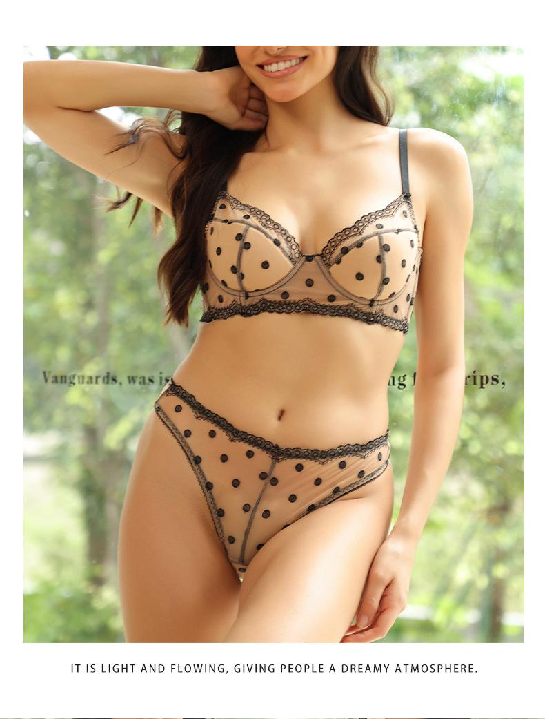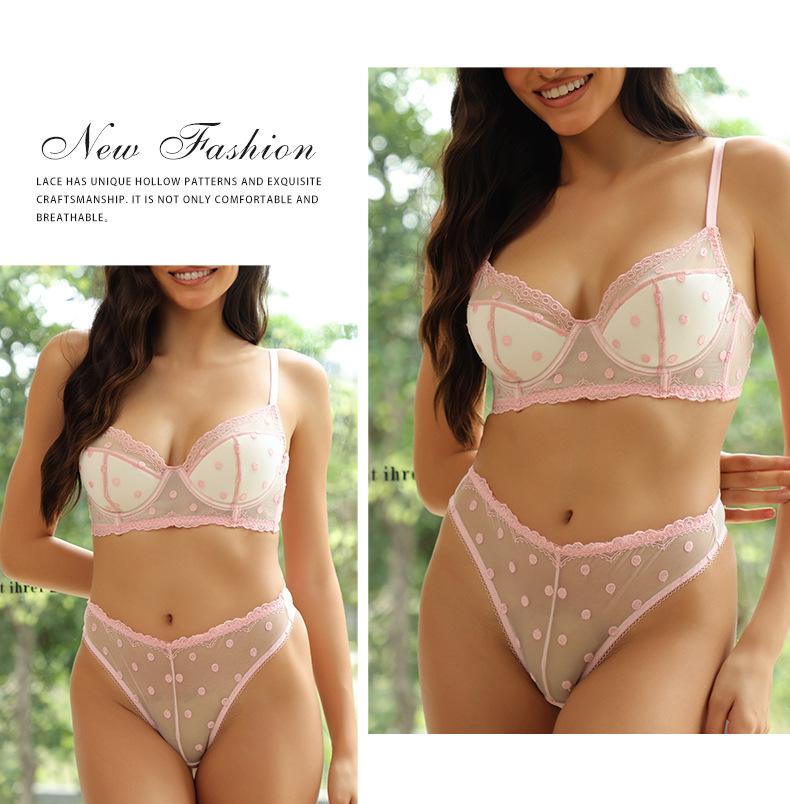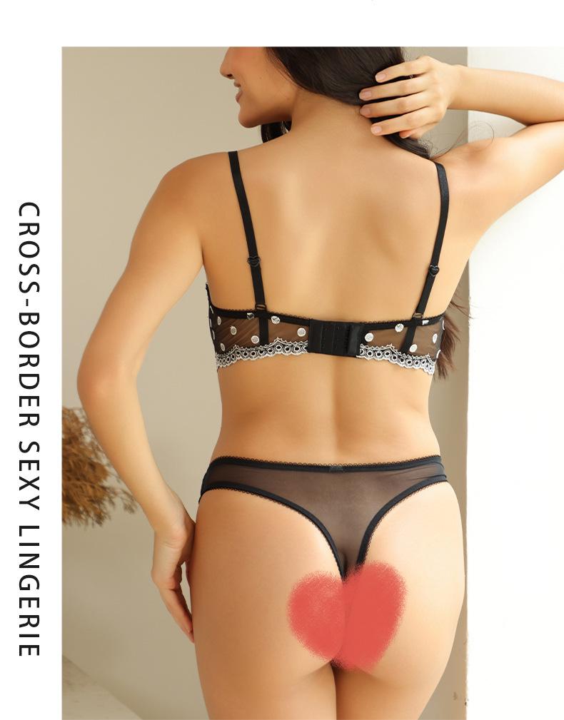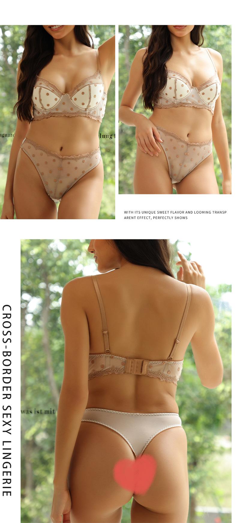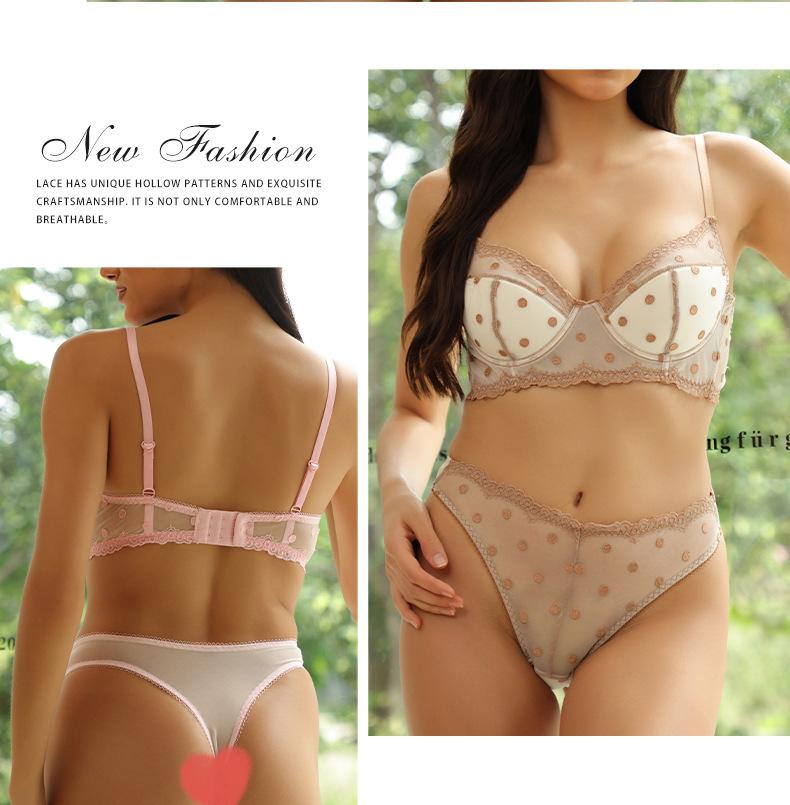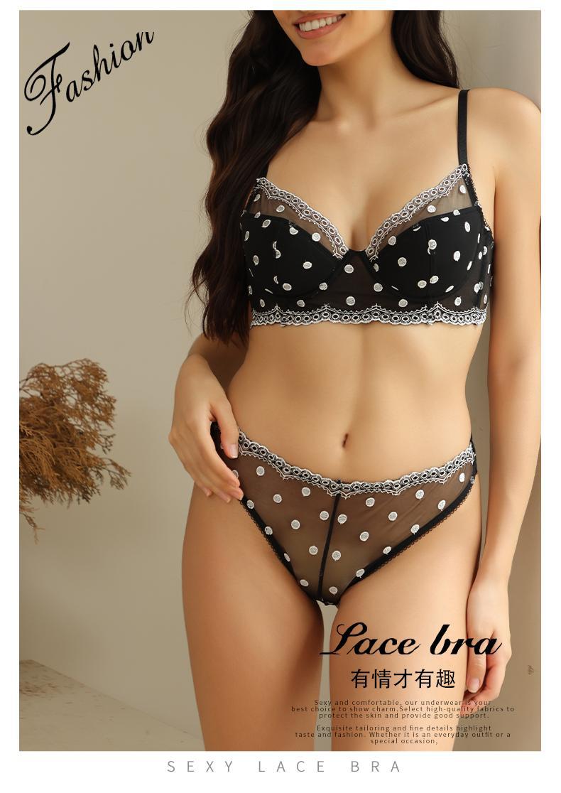 Lingerie Francesa Europeia e Americana Sexy Seção Fina Renda de Bolinhas Seios Grandes Parecem Pequenos Anti-Flacidez Sustentação Conjunto de Sutiã Adolescente