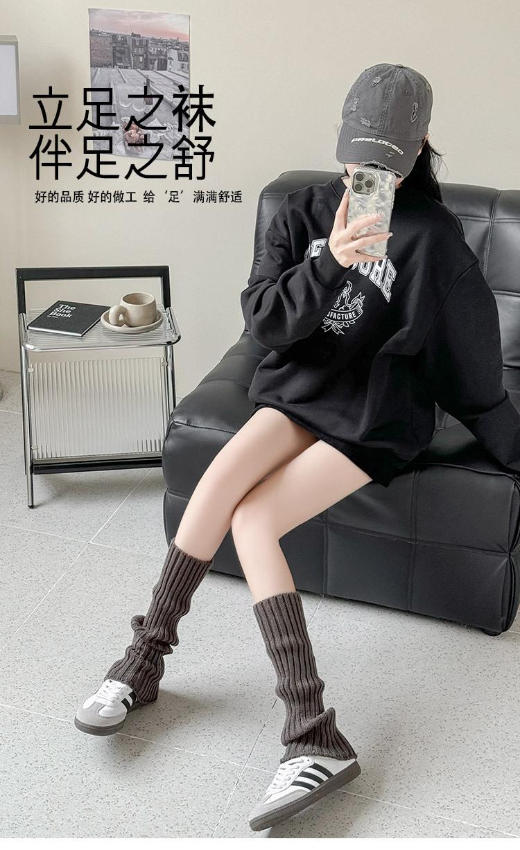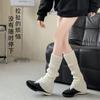 Meias Zhuji polainas meias folgadas femininas outono inverno quentes grossas brancas tricotadas polainas mostram pernas finas menina quente versátil