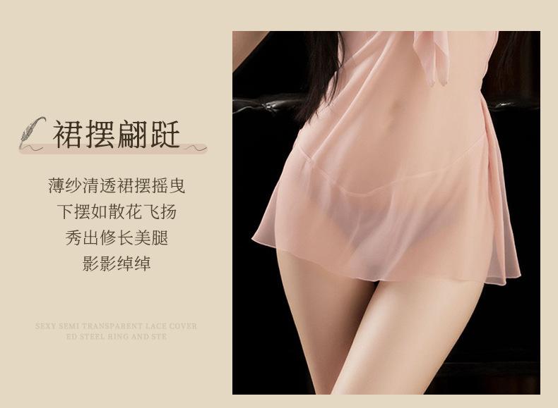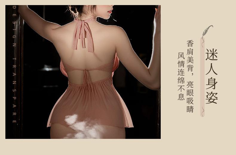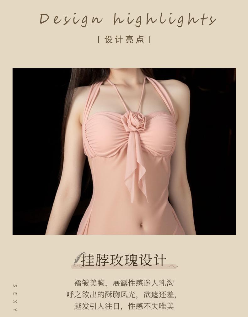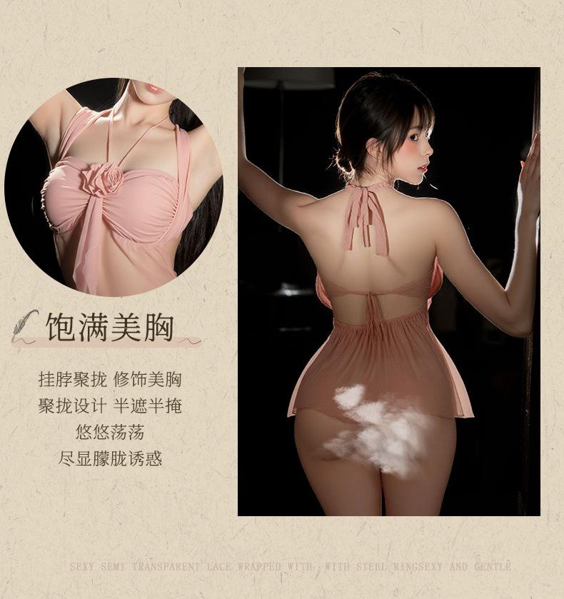 Pijama Sexy Plus Size Sexy para Mulheres, Malha Estilo Puro Desejo Renda Rosa Decote Halter, Não Precisa Tirar Camisola Suspender Suit para Mulheres