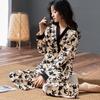 Pijama de Algodão com Lycra para Primavera e Outono para Mulheres Macio Manga Longa Calça Longa Gola Careca Pulôver Casual Algodão Puro Confortável Conjunto Homewear