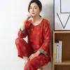 Roupa de Dormir Vermelha Brilhante Estilo Chinês para Mulheres, Pijama de Algodão Puro Estilo Chinês Novo para Primavera e Outono, Conjunto de Roupa de Dormir com Caractere de Bênção do Ano do Zodíaco