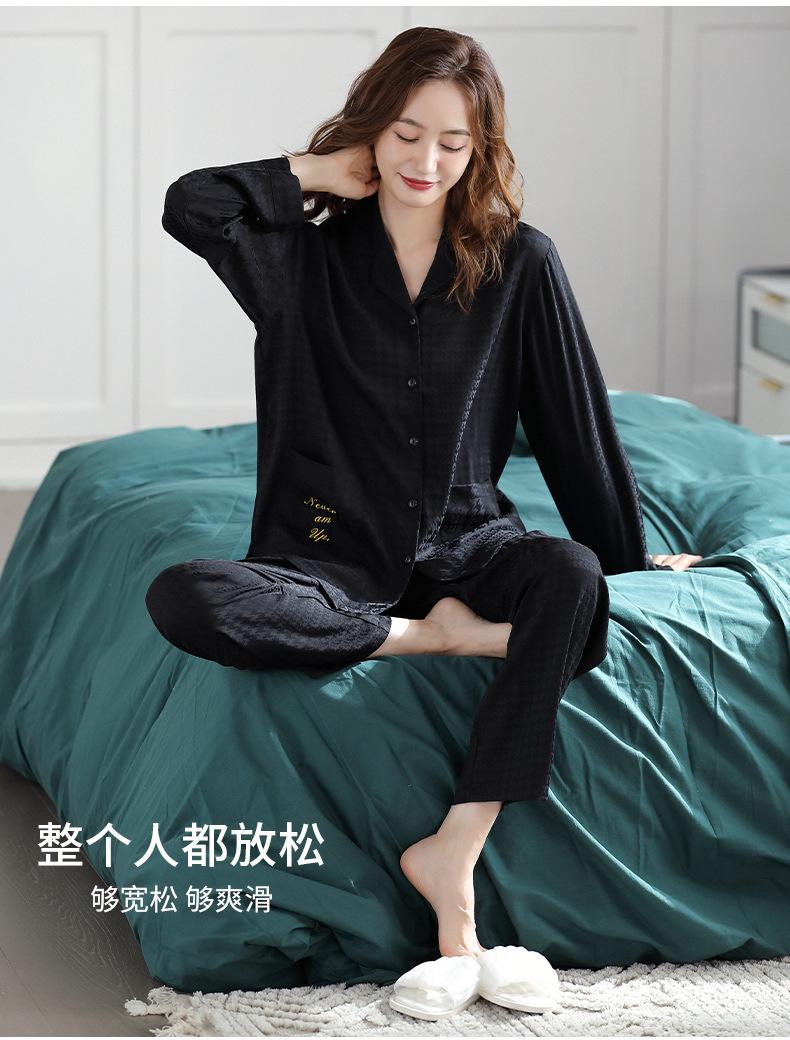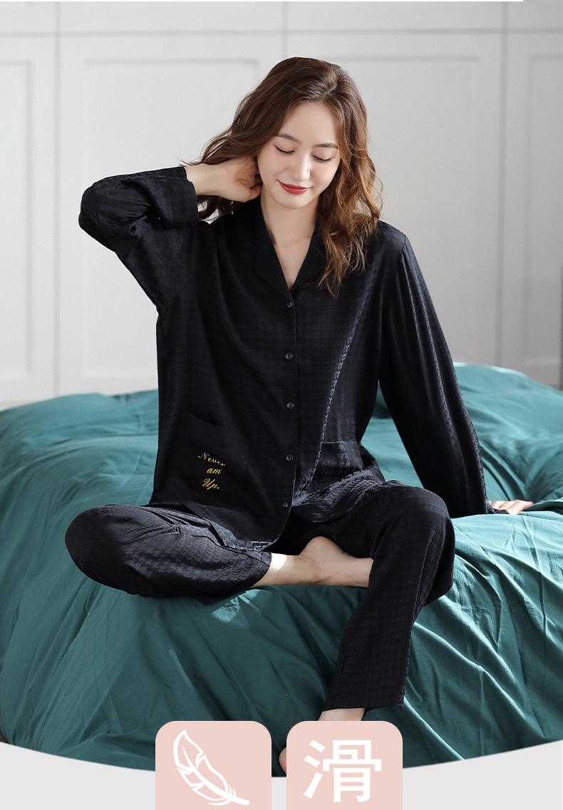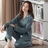 Pijama feminina primavera e outono seda gel manga comprida feminina seda fina outono seda artificial feminina roupa de casa de alta qualidade