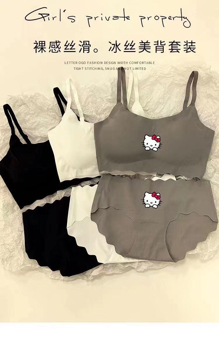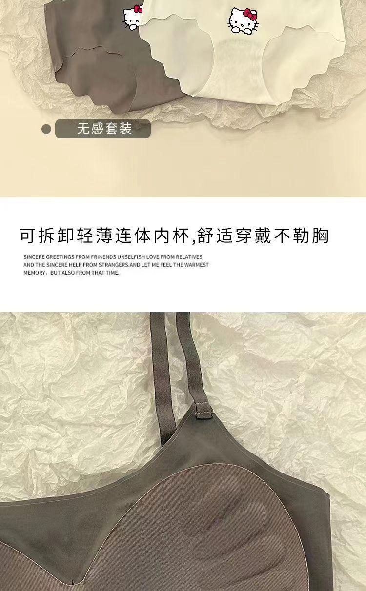2 Conjuntos de Roupa Íntima de Seda Gelo para Meninas, Sem Costura, Conjunto de Sutiã Push-Up sem Aros, Suspensórios Esportivos Estudantis, Regata Fina
