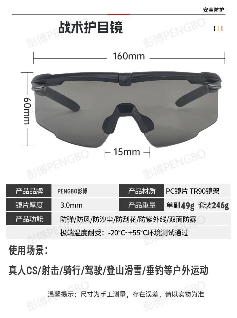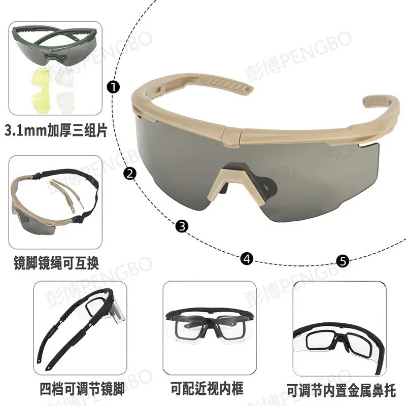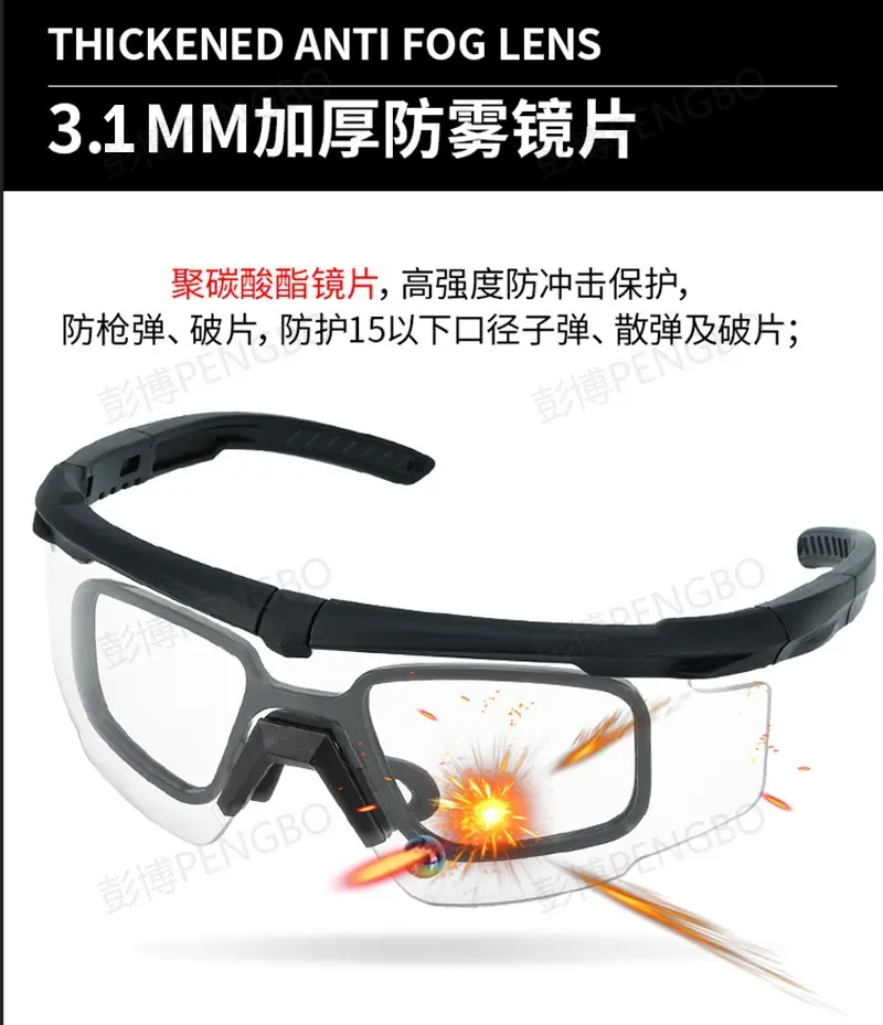 Óculos Táticos Inquebráveis Lentes Espessas 3.0mm CS Tiro em Campo Segurança Outdoor Militar Fã Óculos à Prova de Balas
