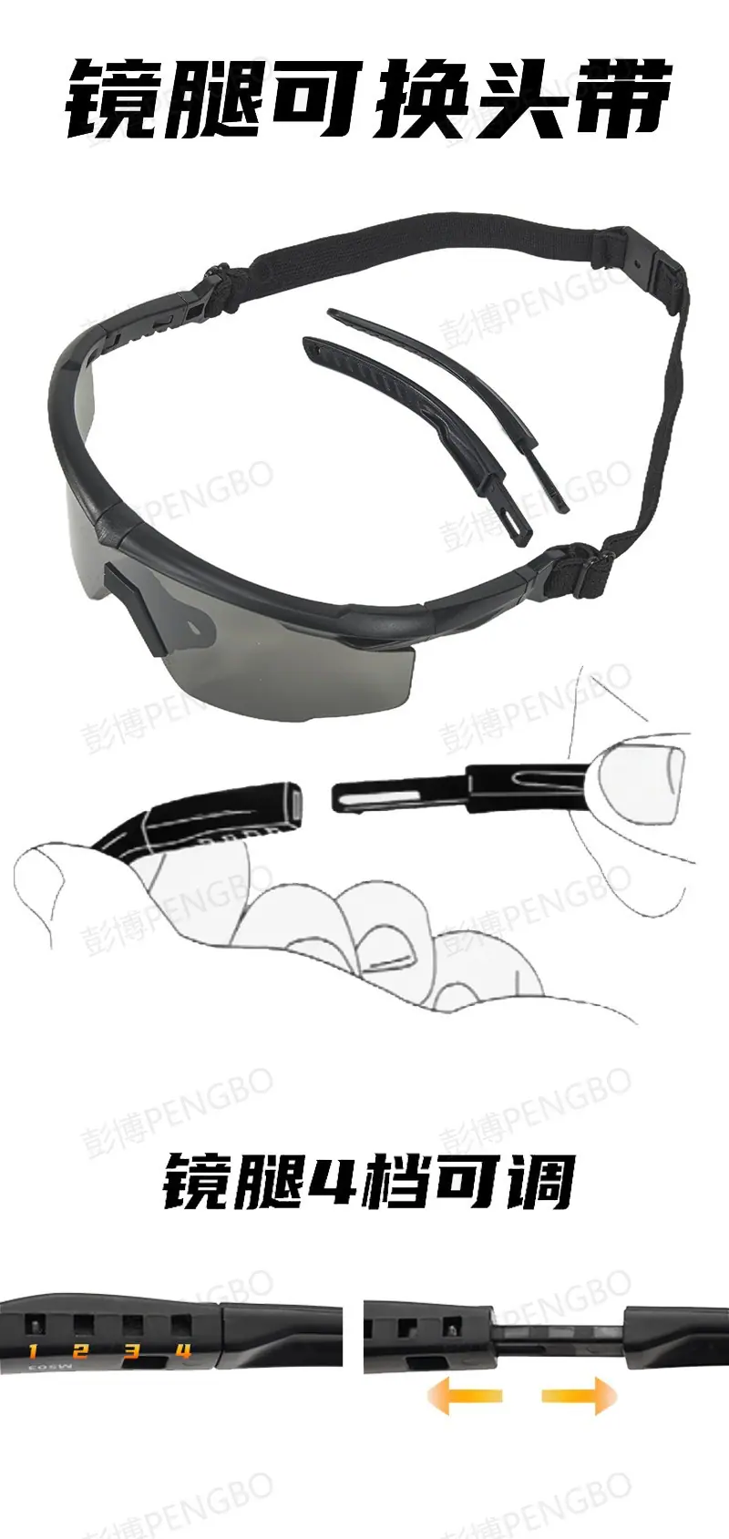 Interchangeable glasses, Optional headband and glasses