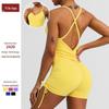 Macacão Europeu e Americano Estampa de Leopardo Transfronteiriço Costas Bonitas Calças Compridas Recortado Macacão Roupa de Yoga Mulheres Fitness Justo Sem Costas Macacão Esportivo