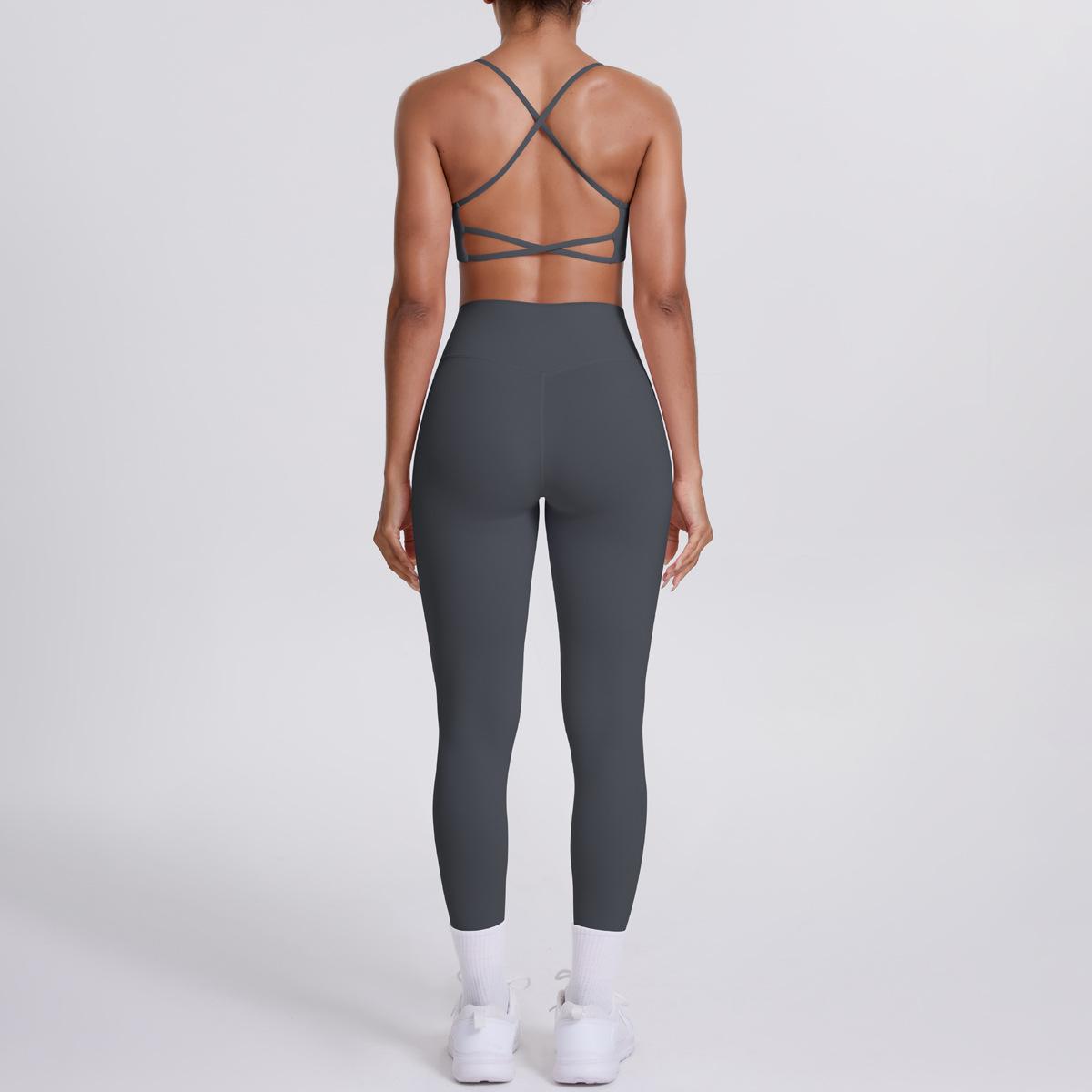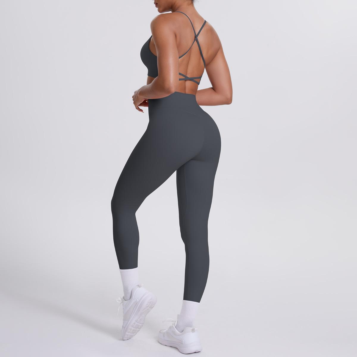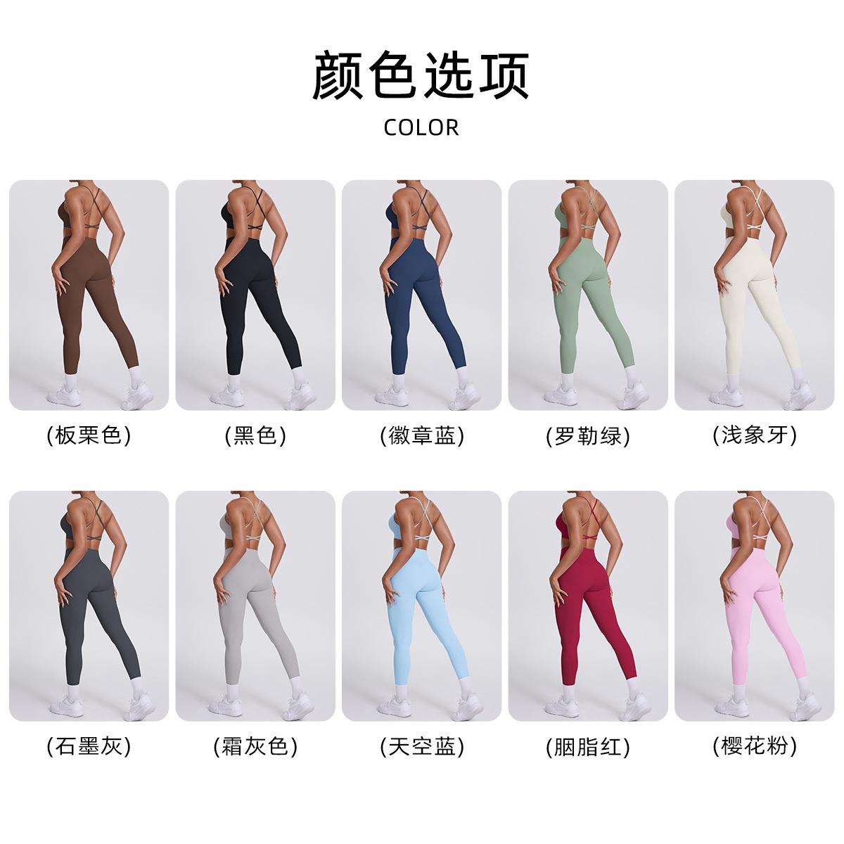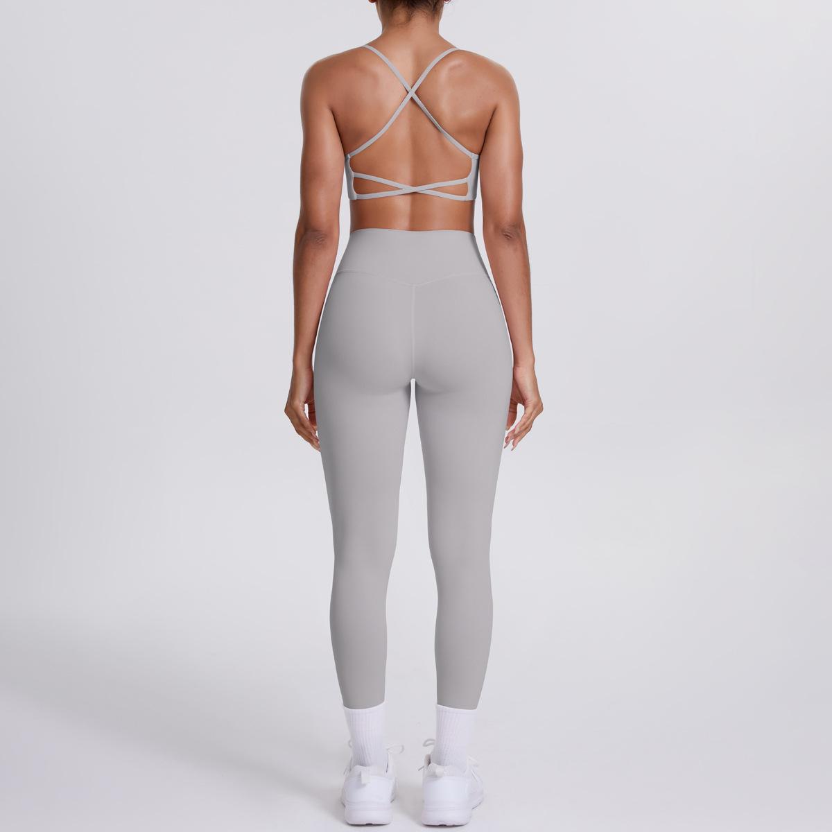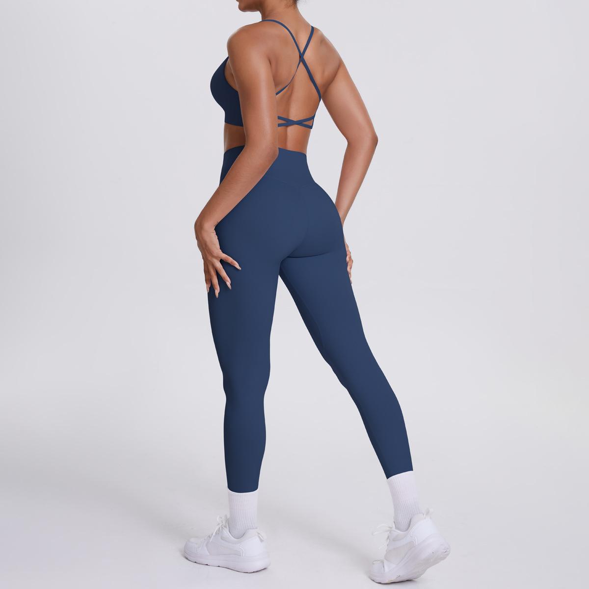 Novo Macacão de Yoga Esportivo Transfronteiriço Europeu e Americano de Nylon de Lado Duplo com Costas Bonitas e Ajustadas Cruzadas para Corrida e Fitness Conjunto de Duas Peças