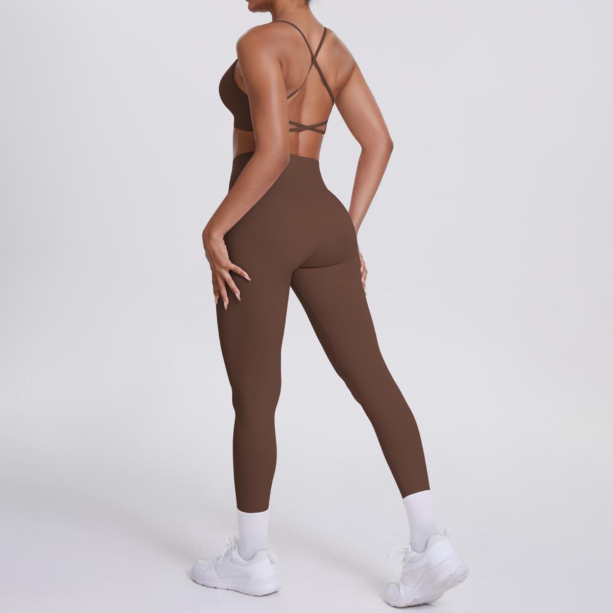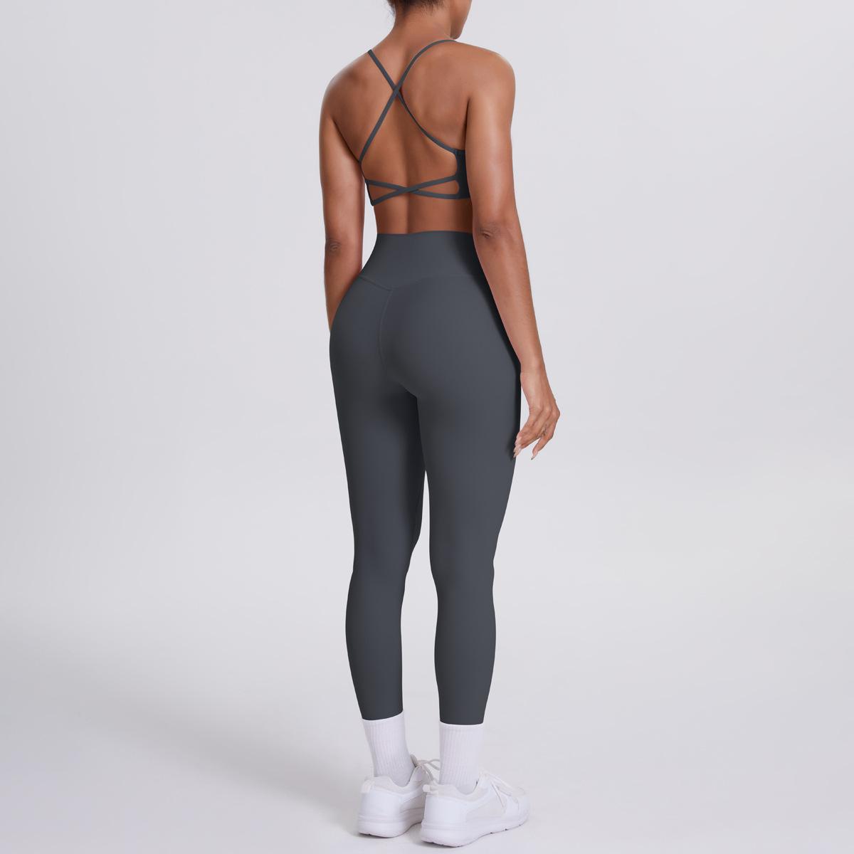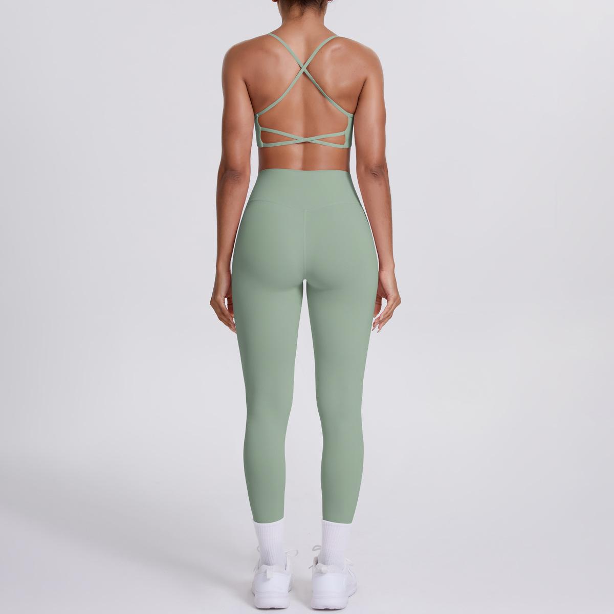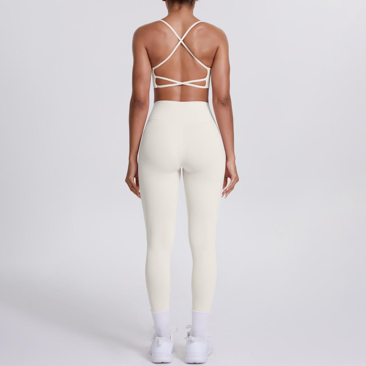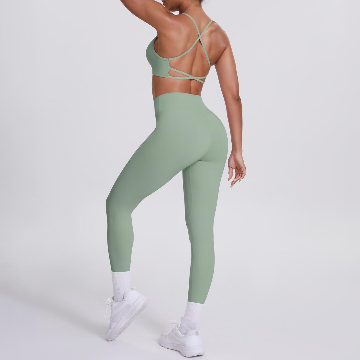 Novo Macacão de Yoga Esportivo Transfronteiriço Europeu e Americano de Nylon de Lado Duplo com Costas Bonitas e Ajustadas Cruzadas para Corrida e Fitness Conjunto de Duas Peças