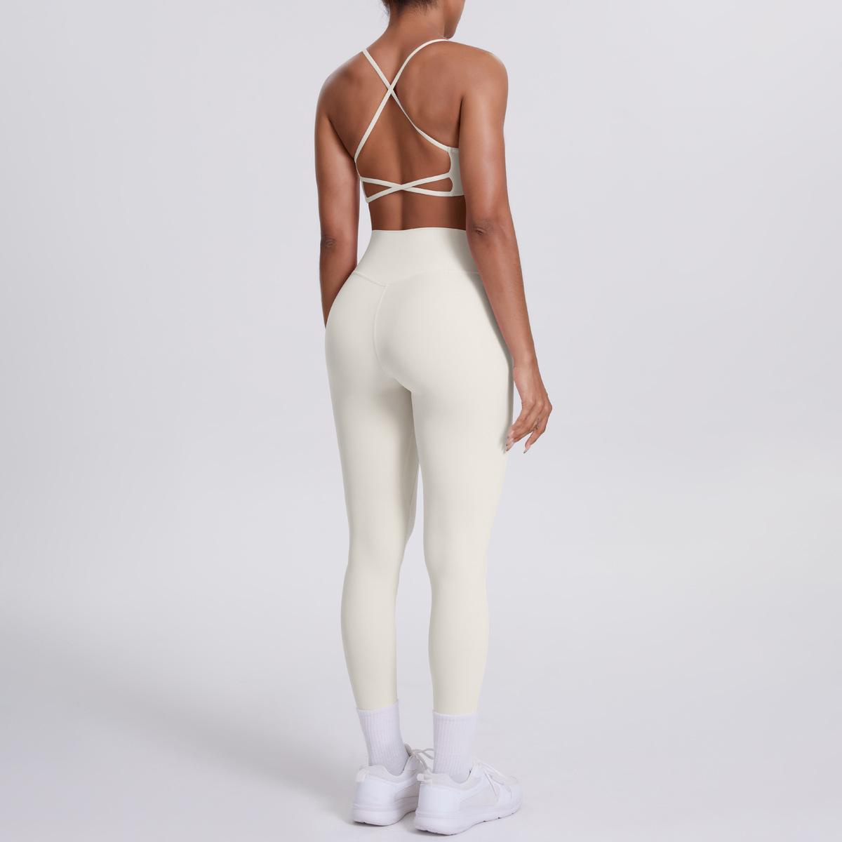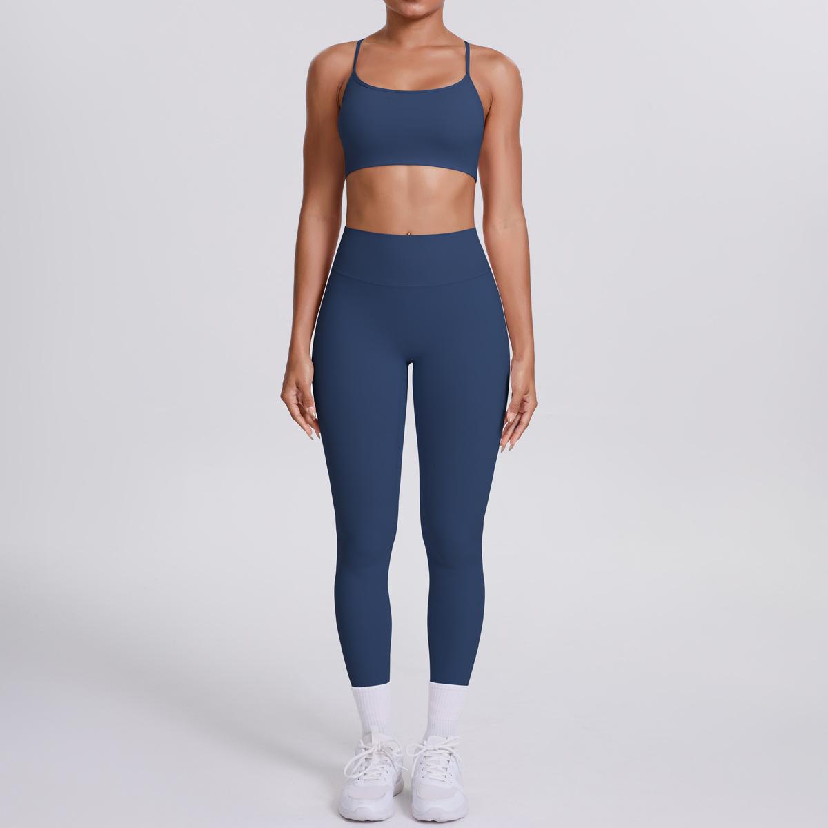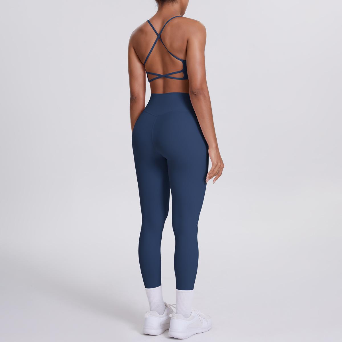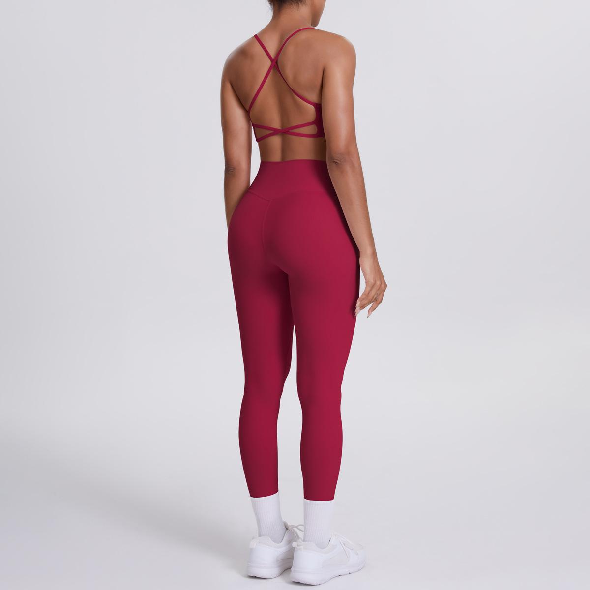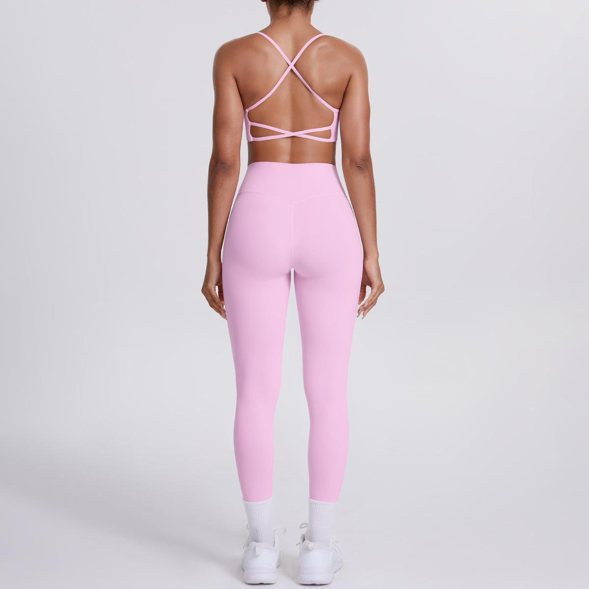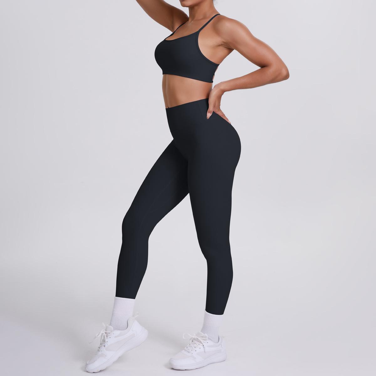 Novo Macacão de Yoga Esportivo Transfronteiriço Europeu e Americano de Nylon de Lado Duplo com Costas Bonitas e Ajustadas Cruzadas para Corrida e Fitness Conjunto de Duas Peças