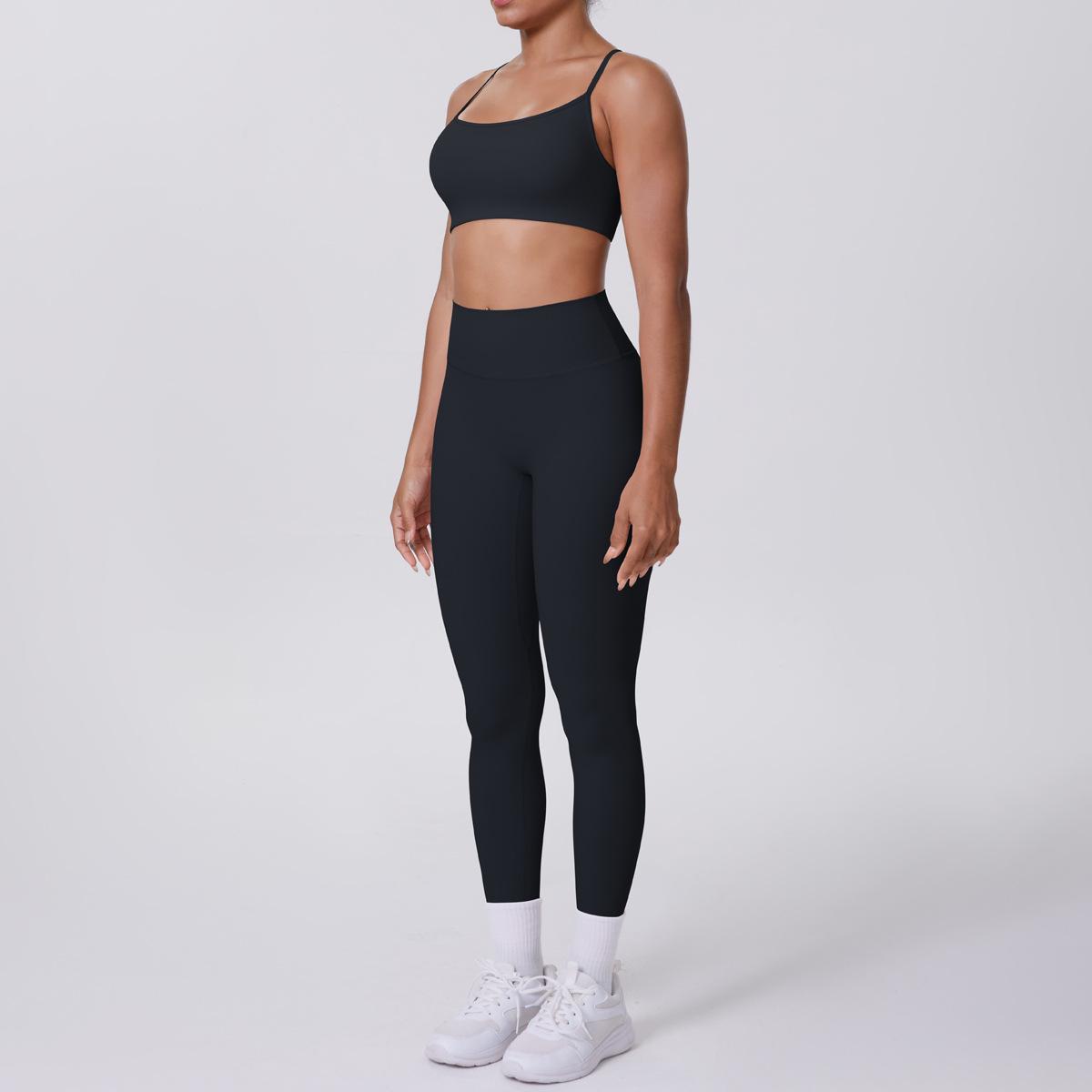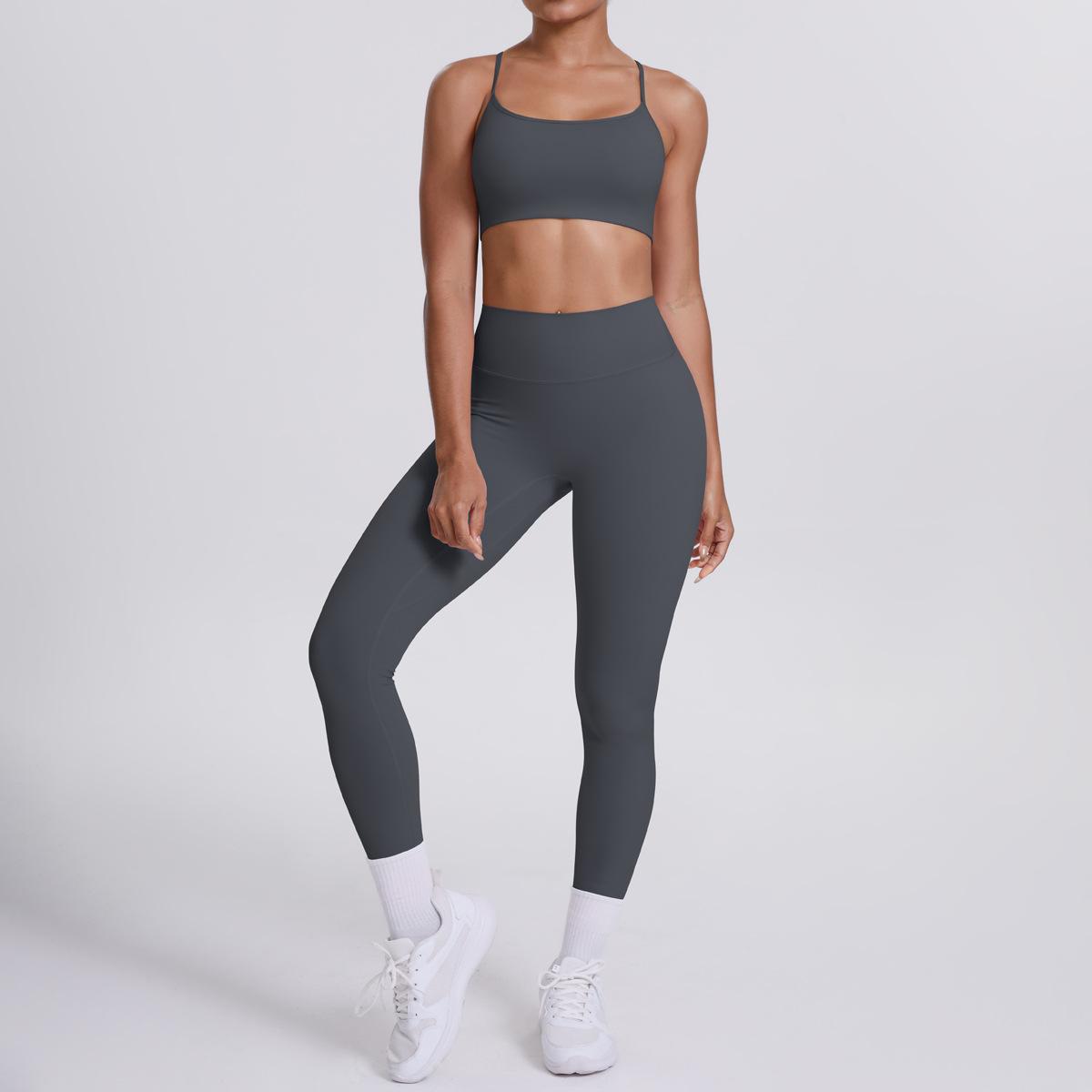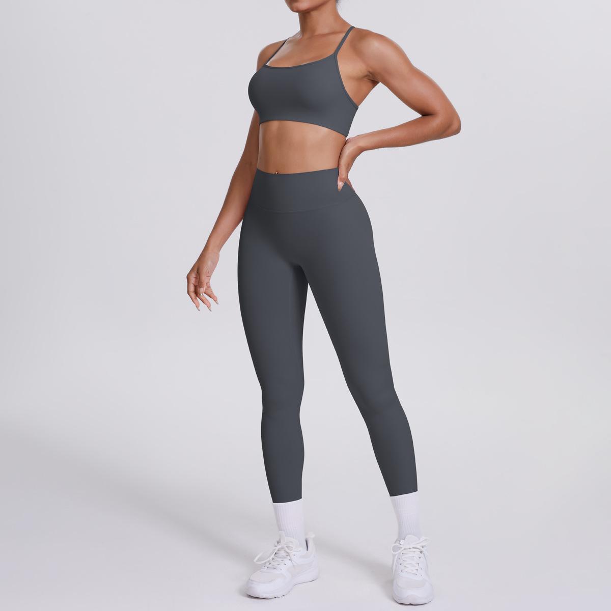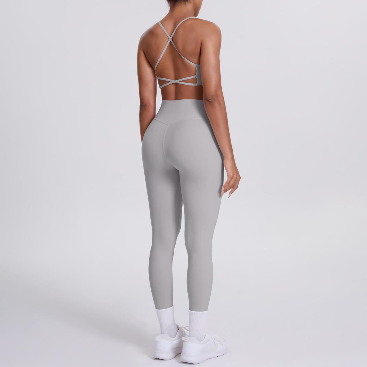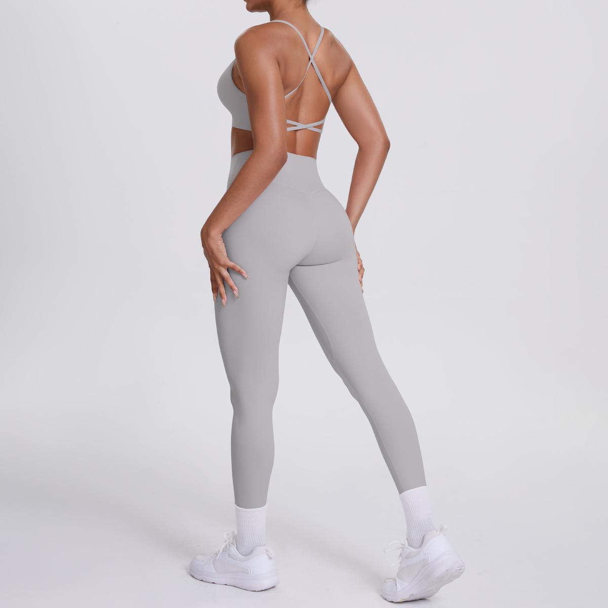 Novo Macacão de Yoga Esportivo Transfronteiriço Europeu e Americano de Nylon de Lado Duplo com Costas Bonitas e Ajustadas Cruzadas para Corrida e Fitness Conjunto de Duas Peças