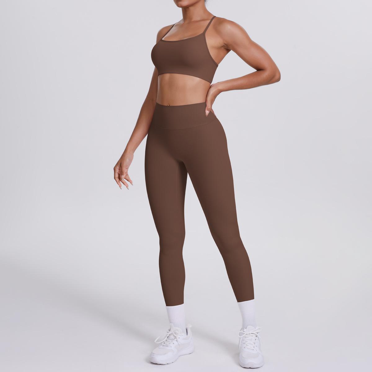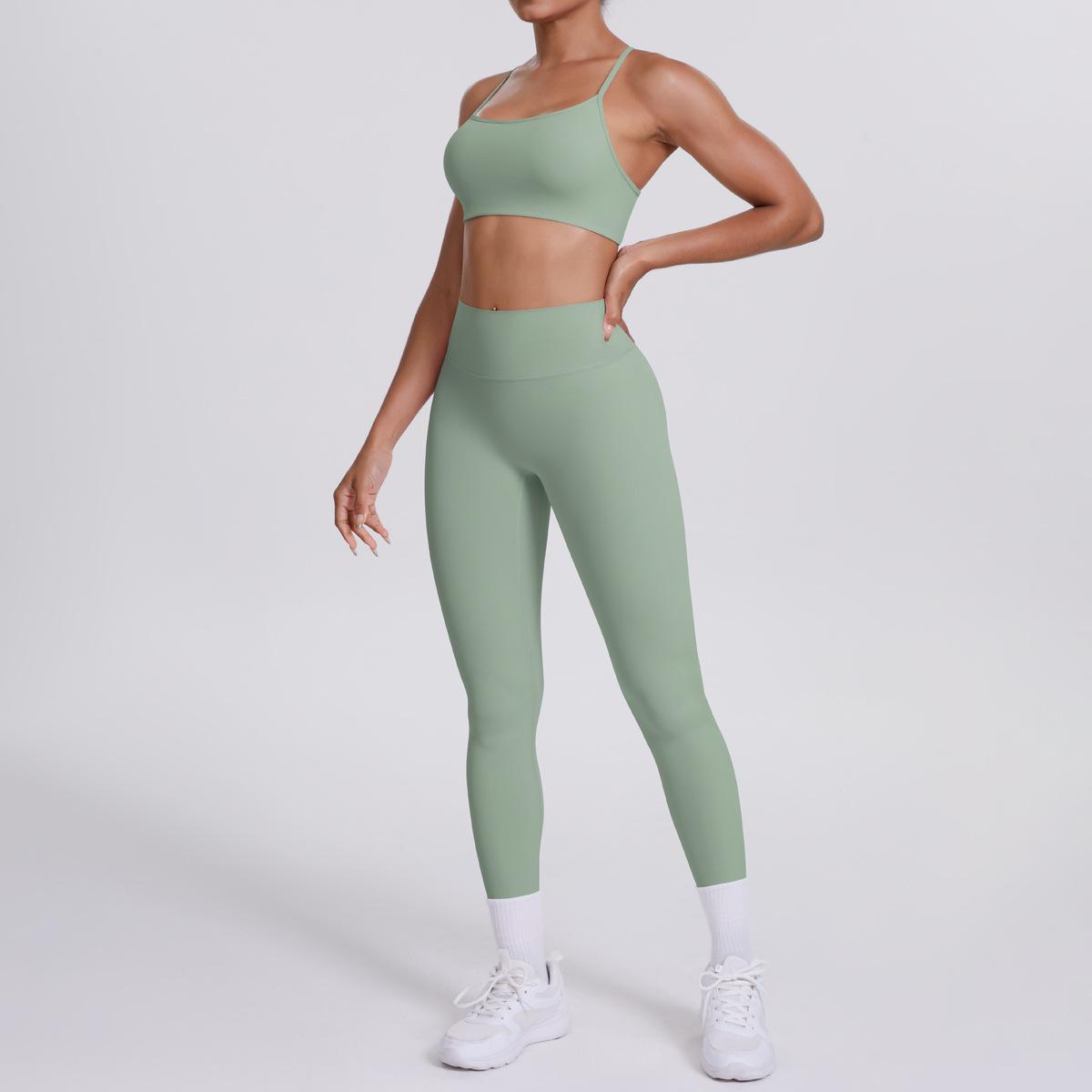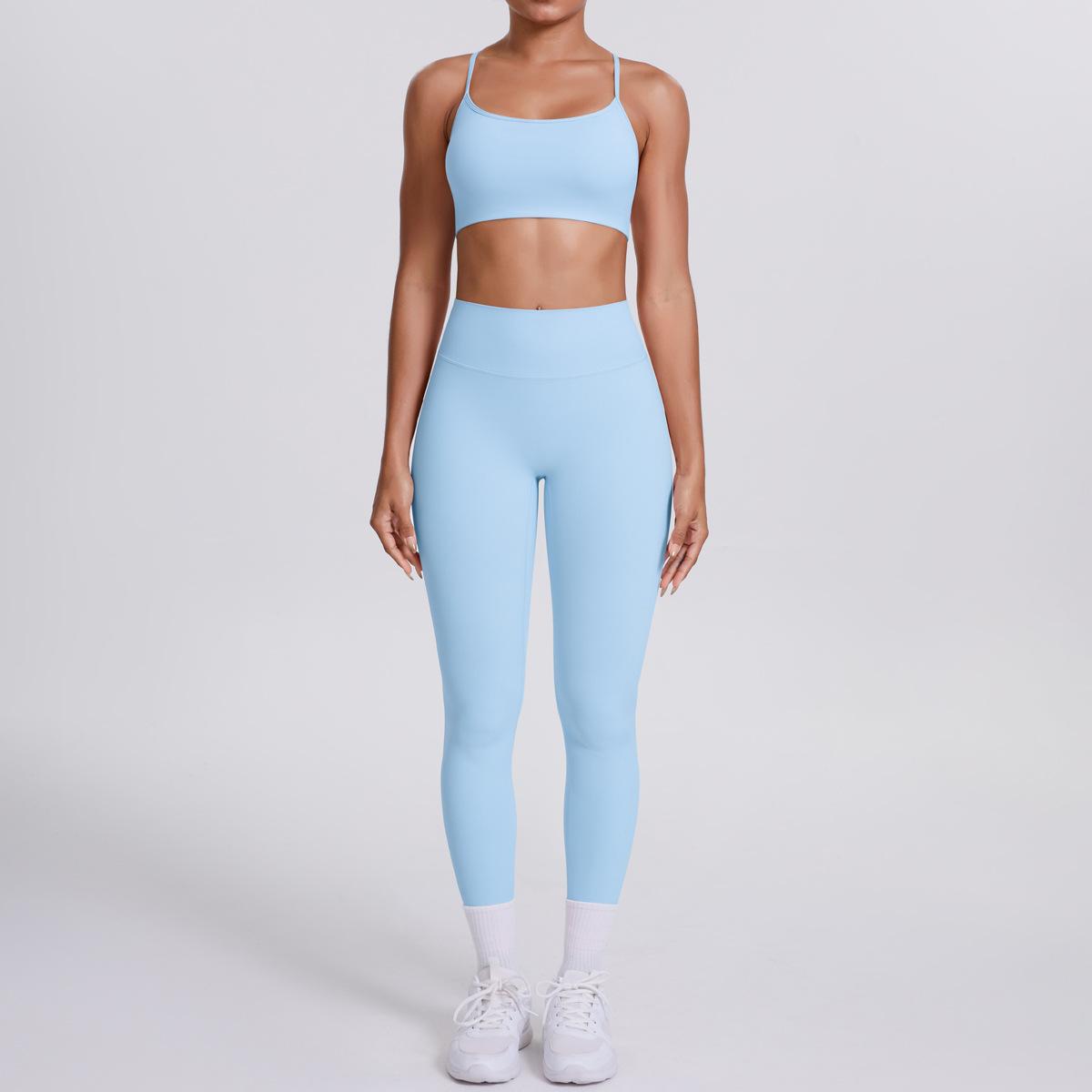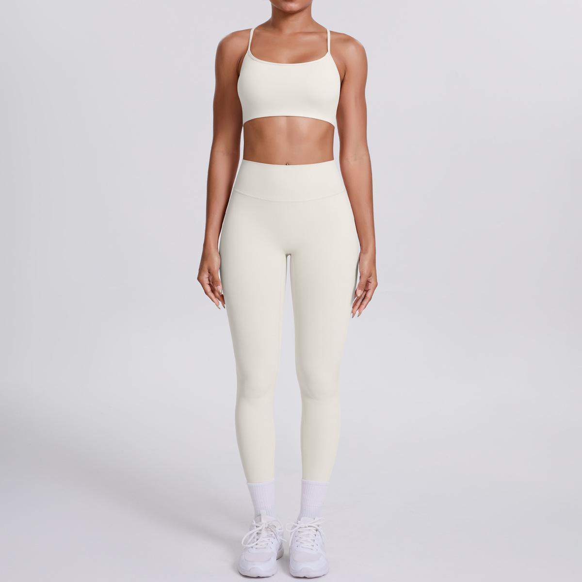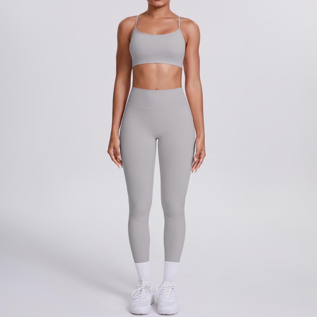 Novo Macacão de Yoga Esportivo Transfronteiriço Europeu e Americano de Nylon de Lado Duplo com Costas Bonitas e Ajustadas Cruzadas para Corrida e Fitness Conjunto de Duas Peças