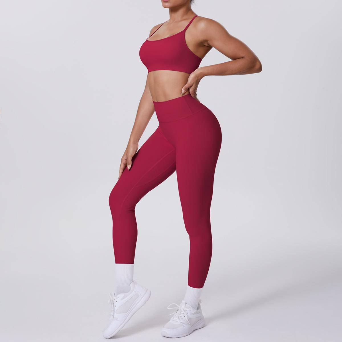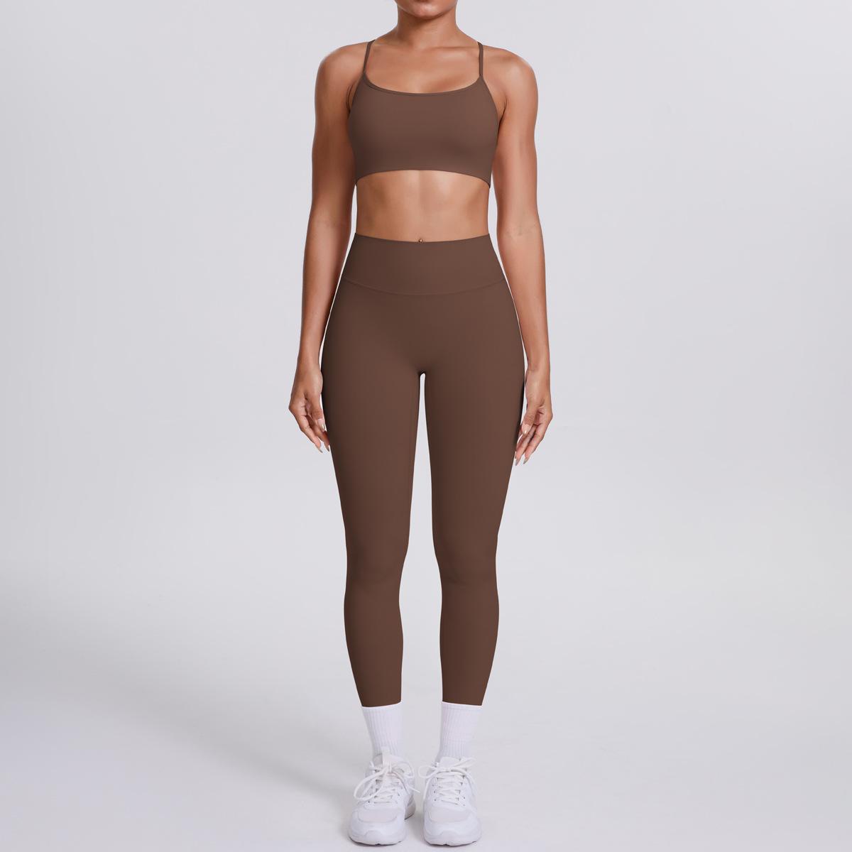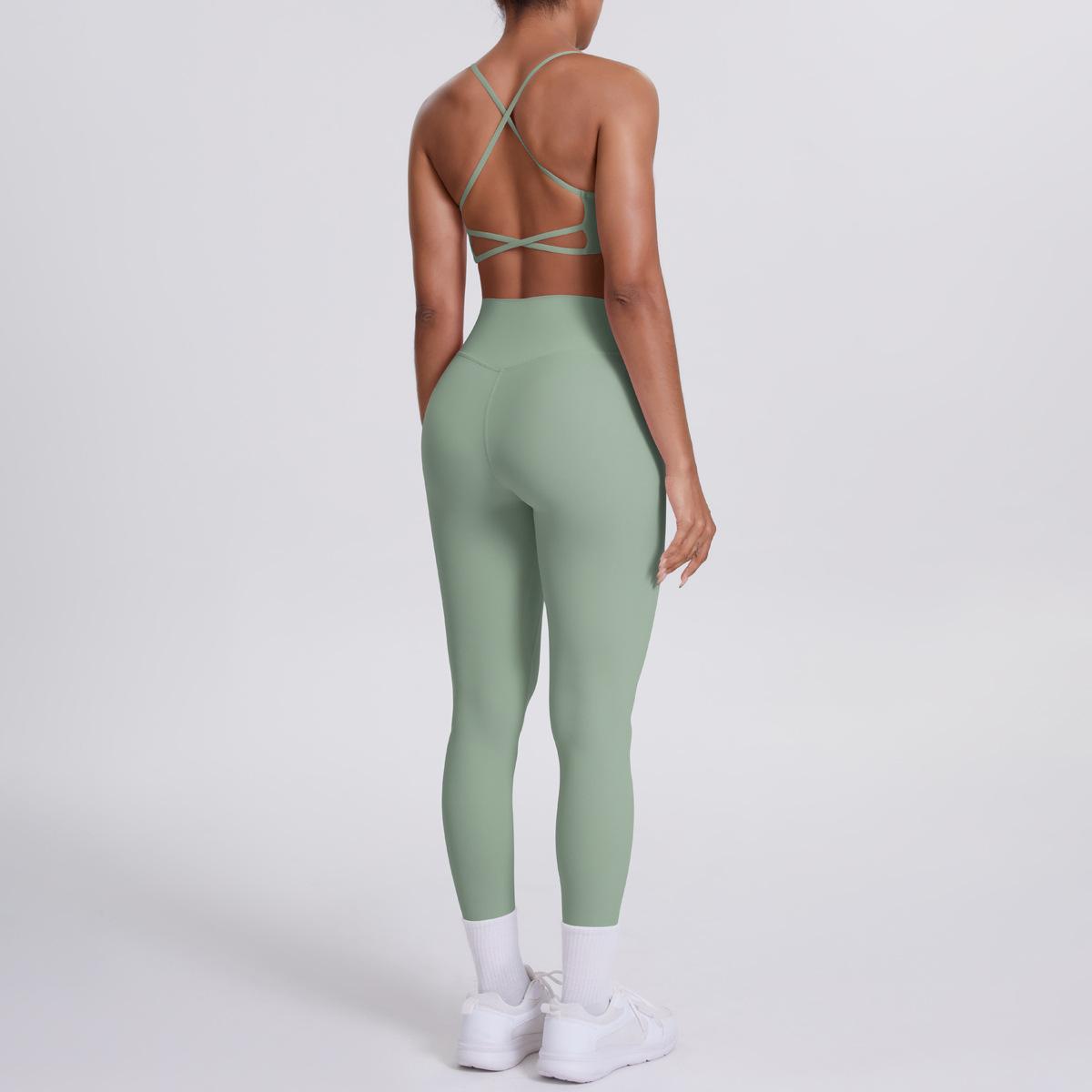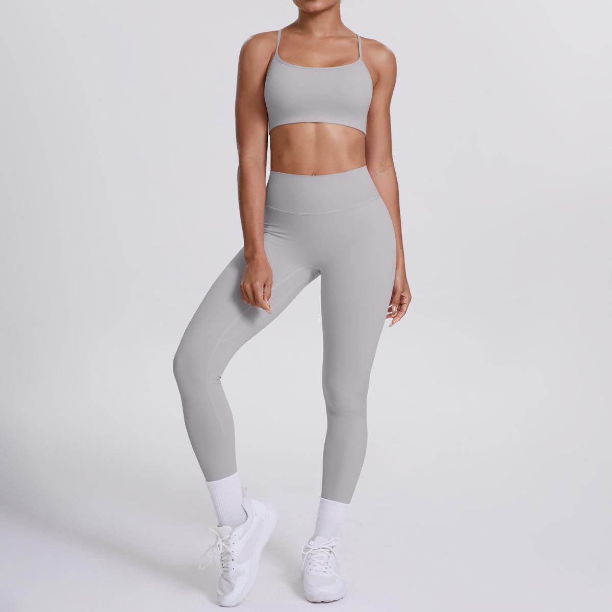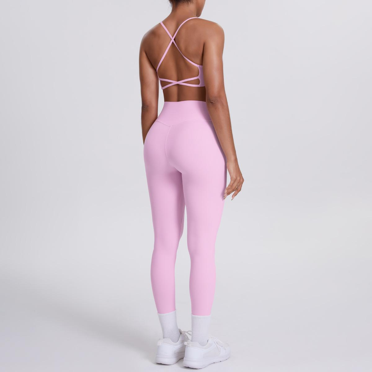 Novo Macacão de Yoga Esportivo Transfronteiriço Europeu e Americano de Nylon de Lado Duplo com Costas Bonitas e Ajustadas Cruzadas para Corrida e Fitness Conjunto de Duas Peças