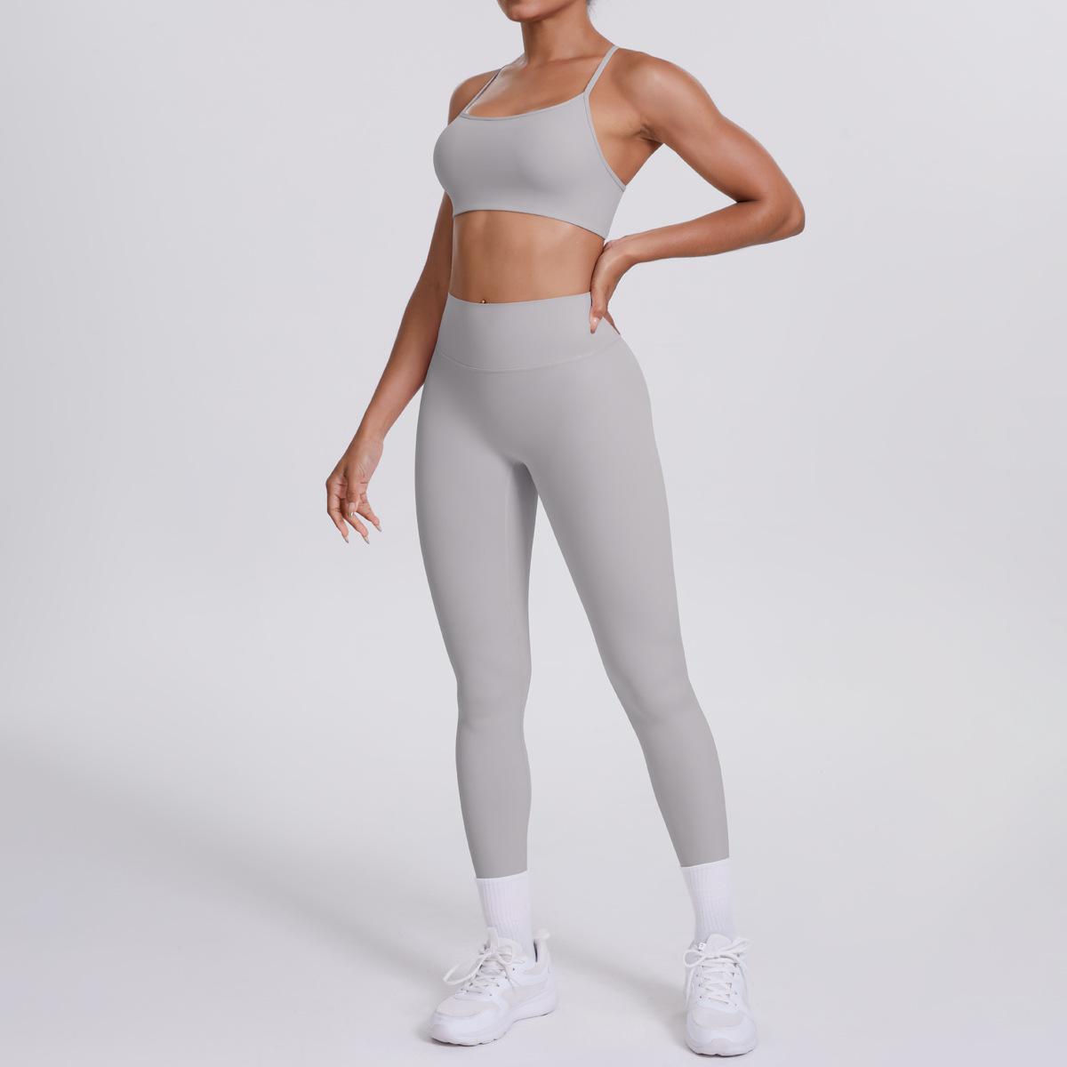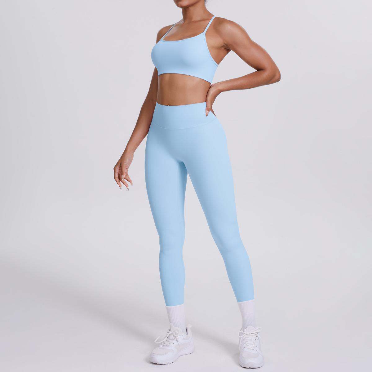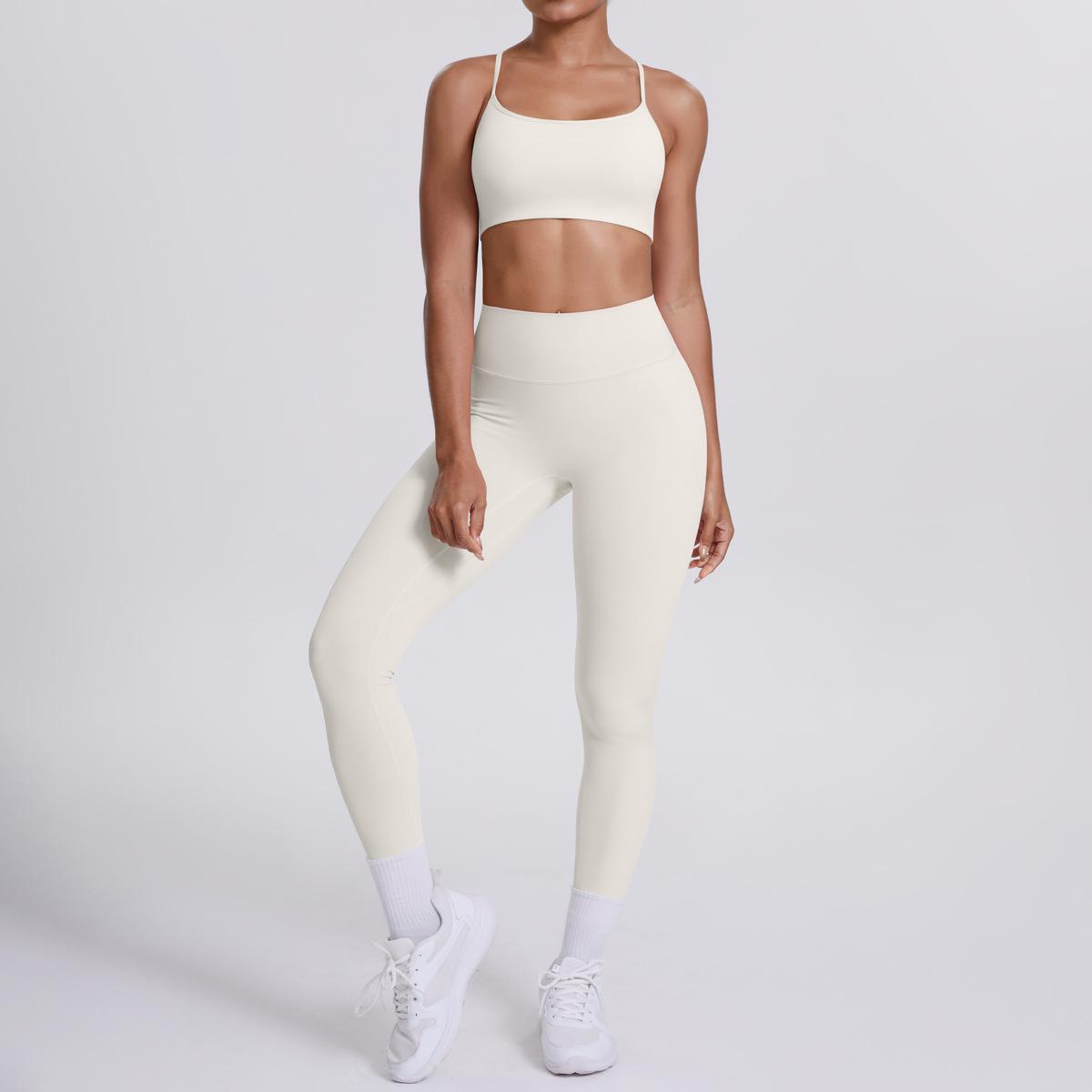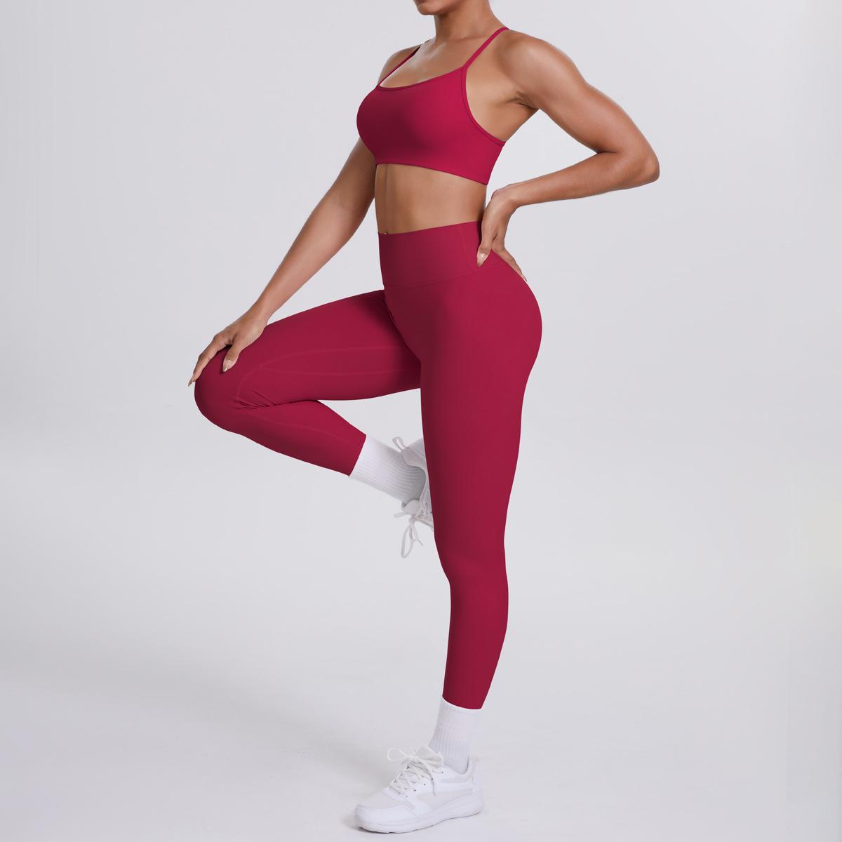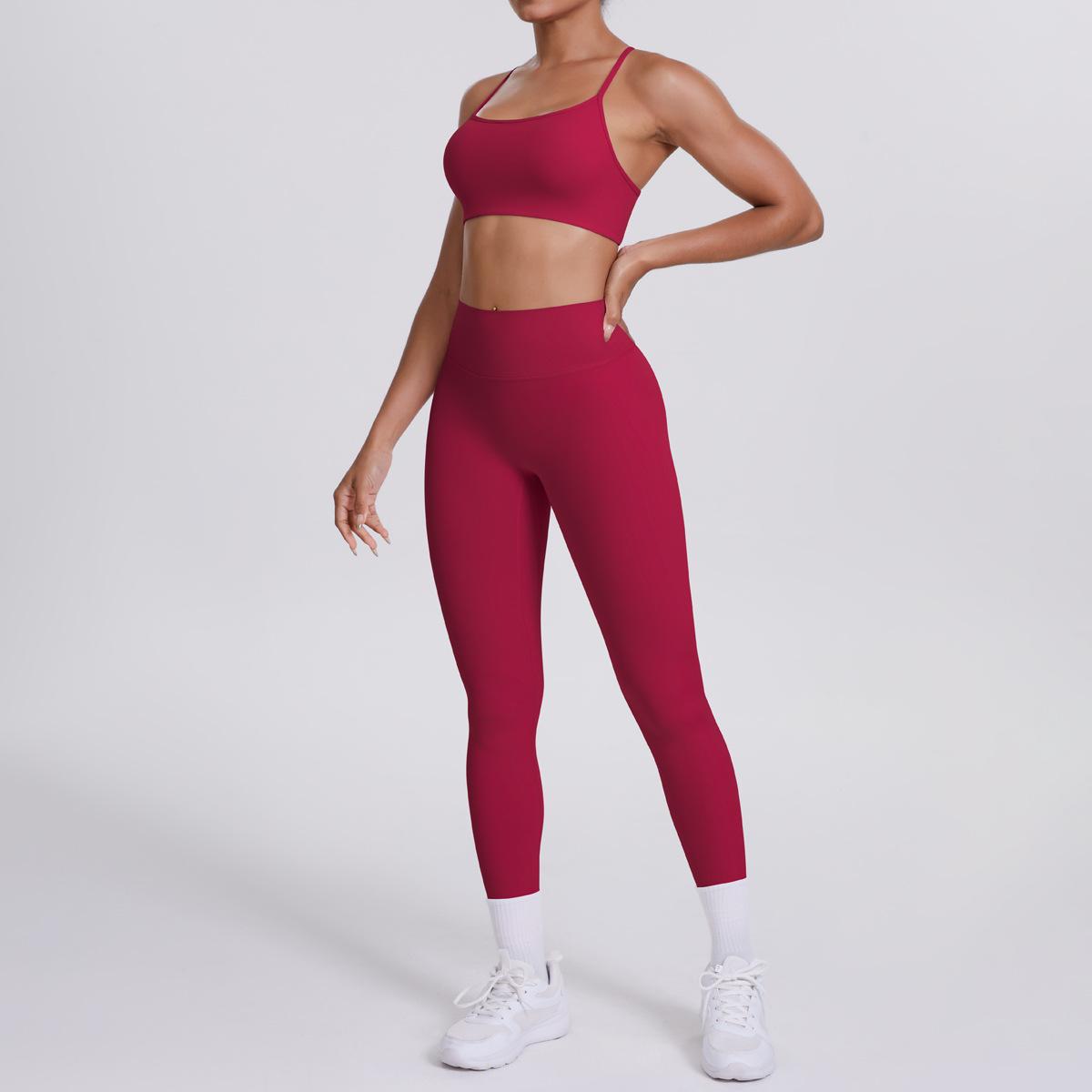 Novo Macacão de Yoga Esportivo Transfronteiriço Europeu e Americano de Nylon de Lado Duplo com Costas Bonitas e Ajustadas Cruzadas para Corrida e Fitness Conjunto de Duas Peças