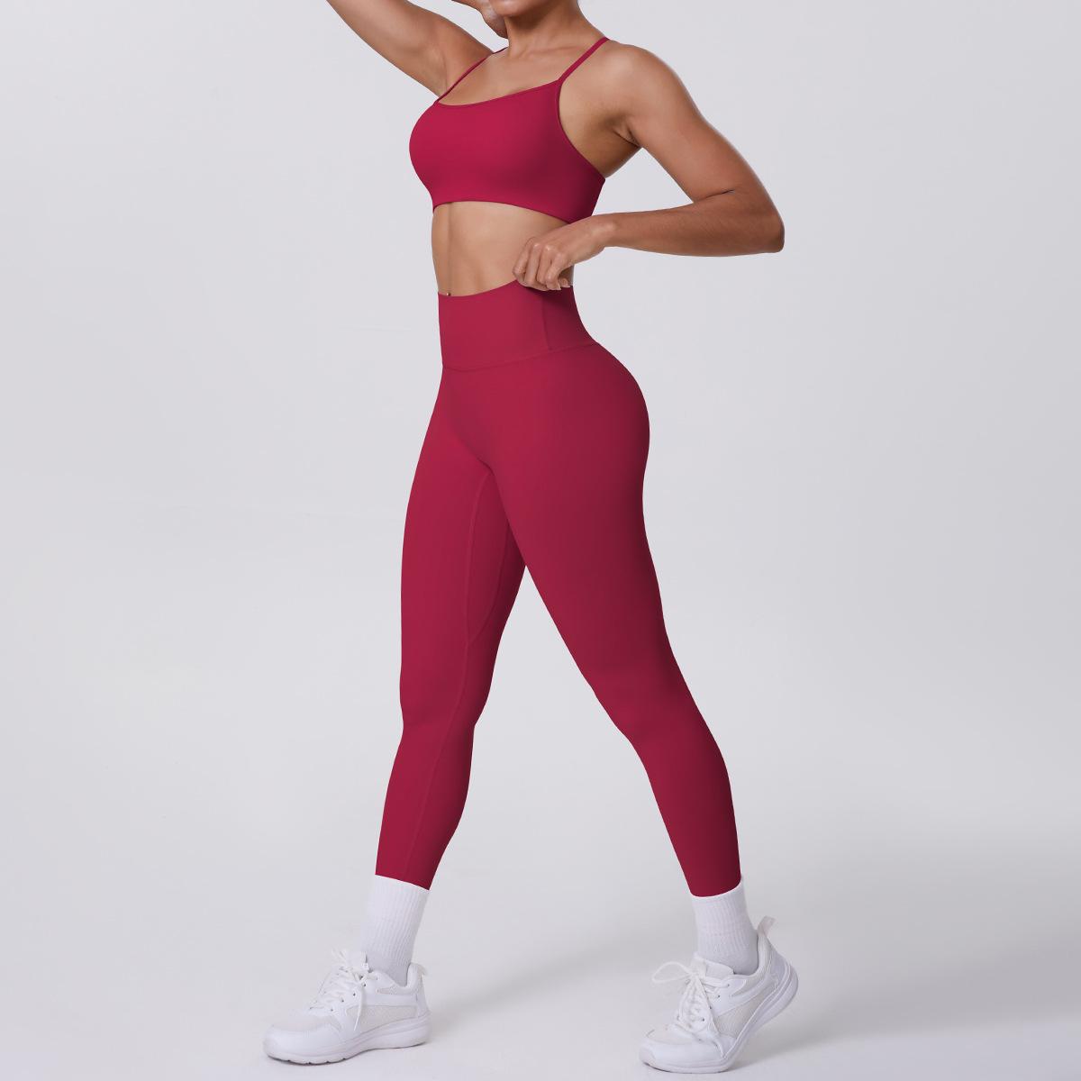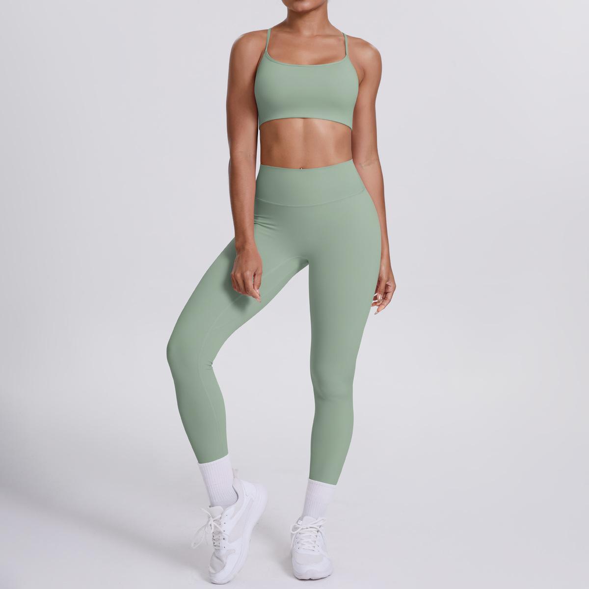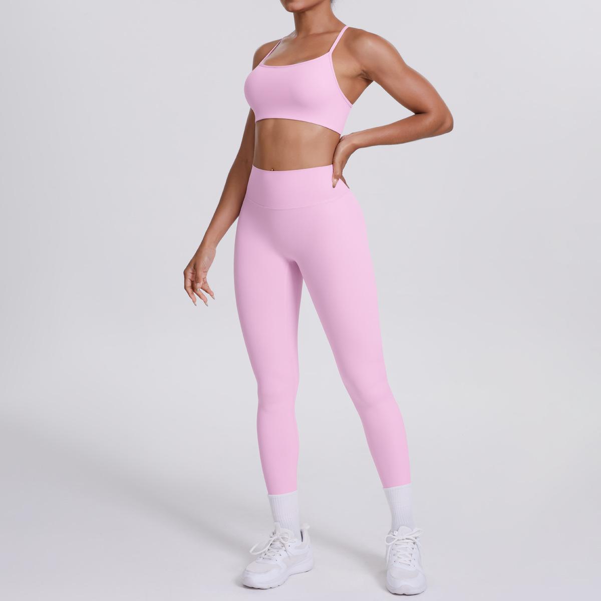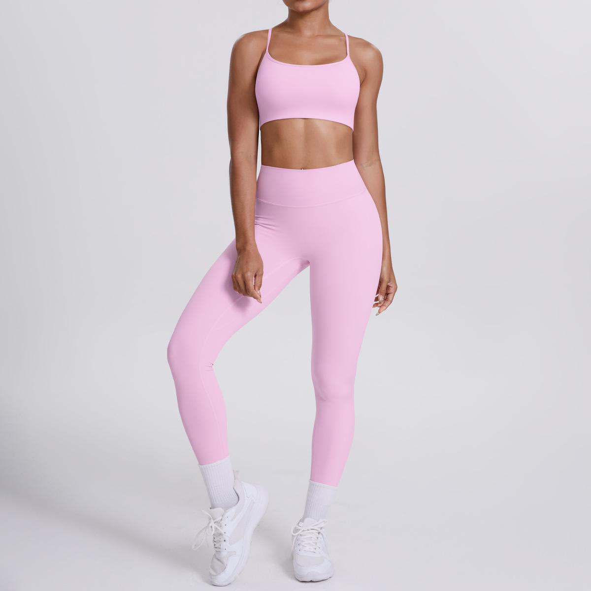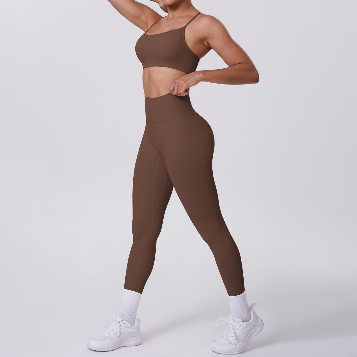 Novo Macacão de Yoga Esportivo Transfronteiriço Europeu e Americano de Nylon de Lado Duplo com Costas Bonitas e Ajustadas Cruzadas para Corrida e Fitness Conjunto de Duas Peças