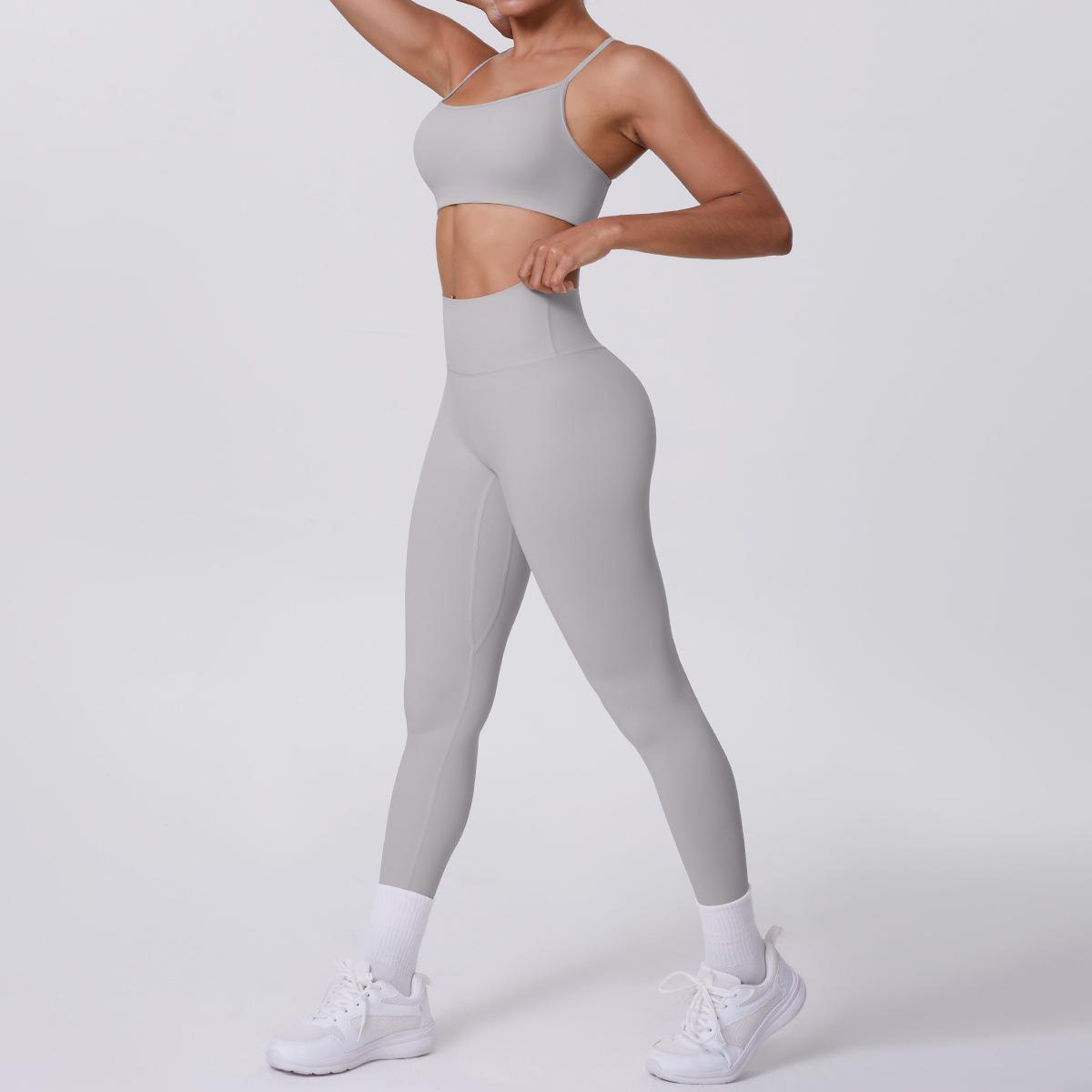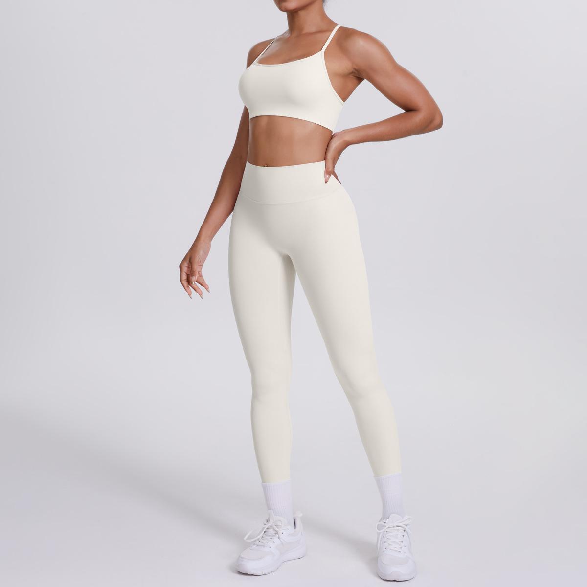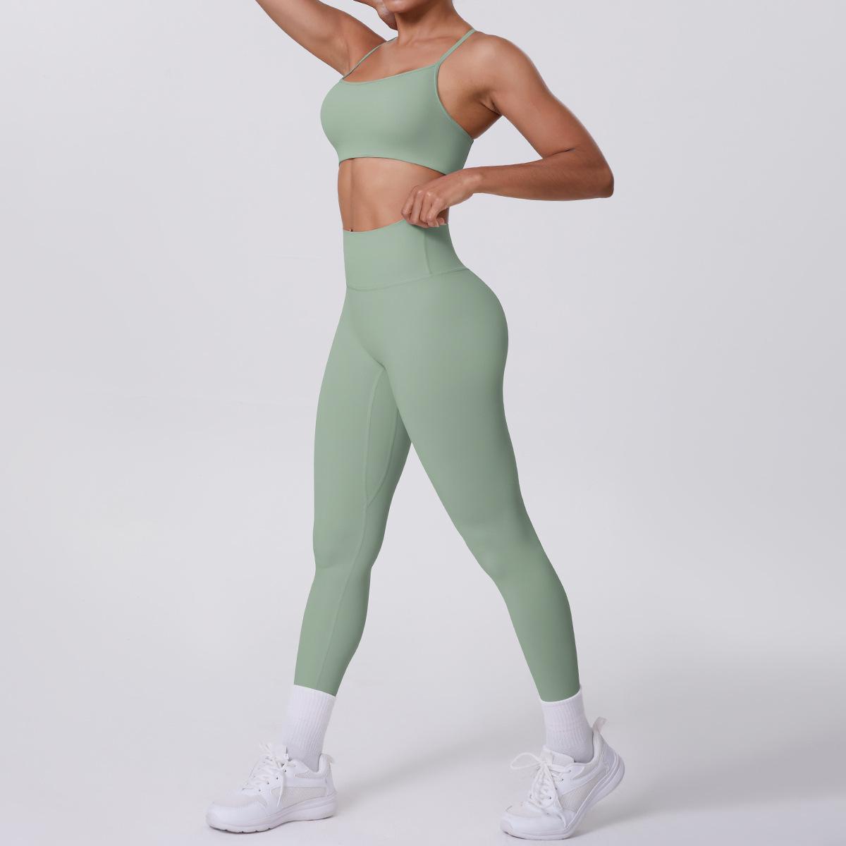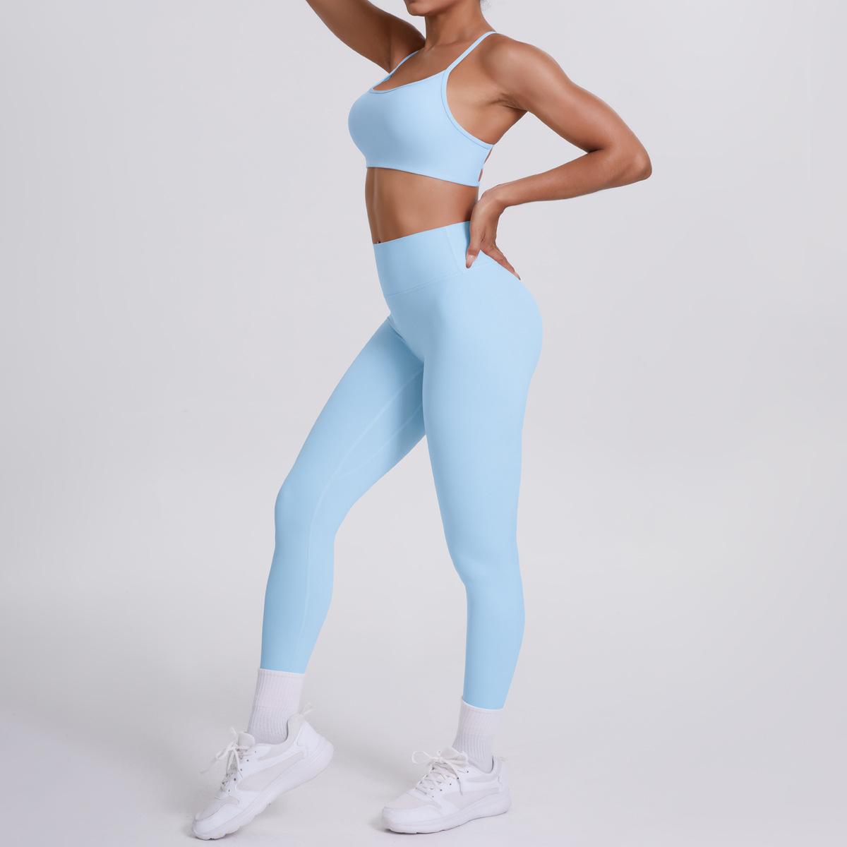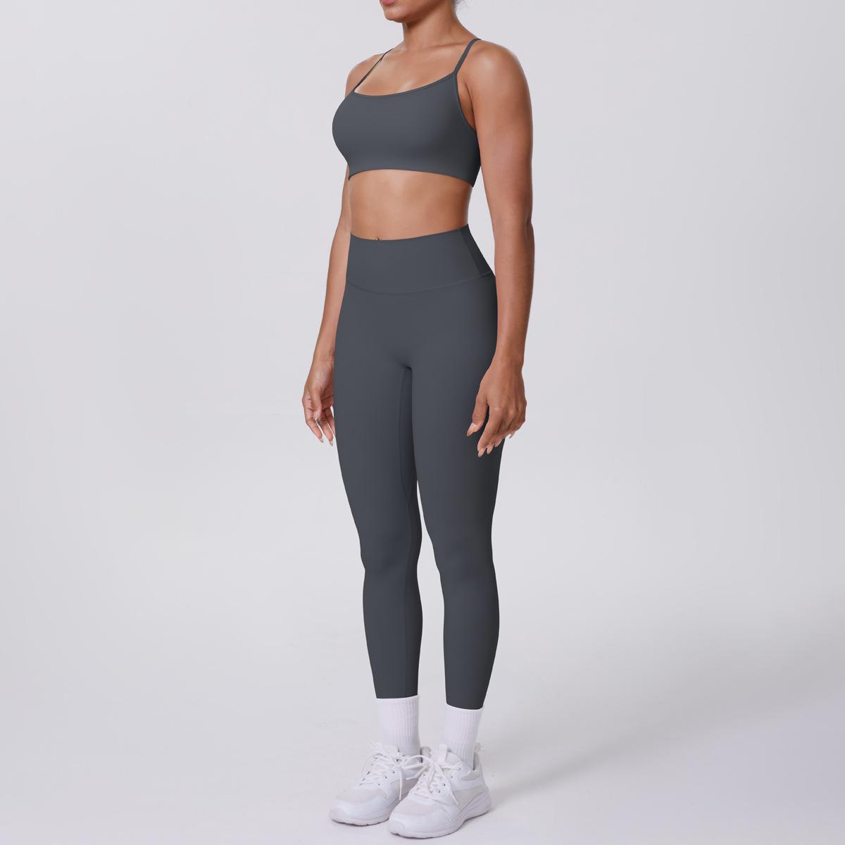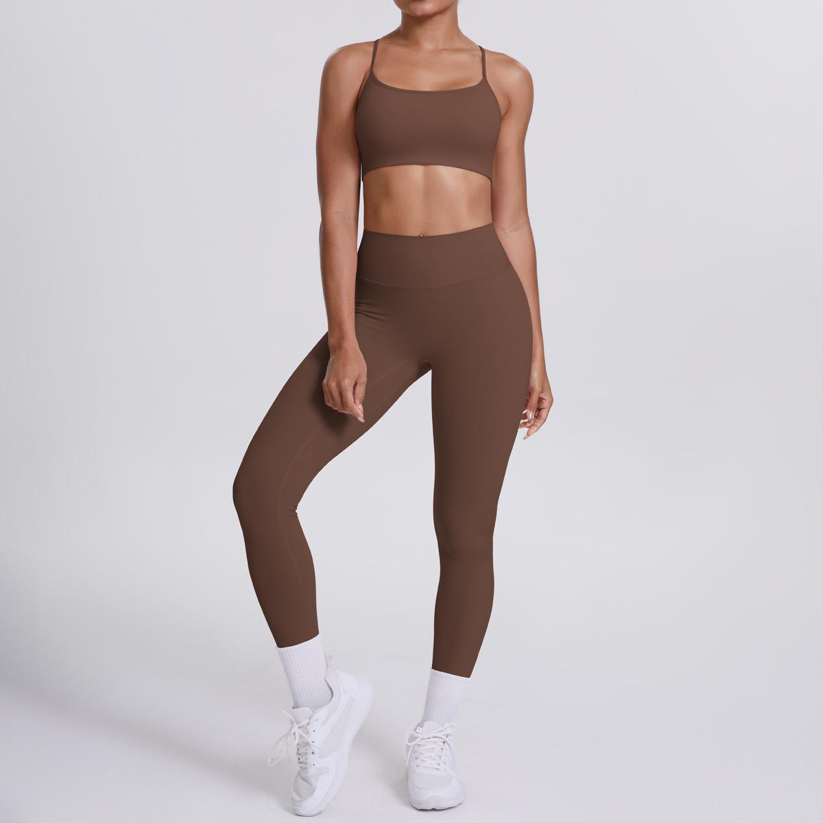Novo Macacão de Yoga Esportivo Transfronteiriço Europeu e Americano de Nylon de Lado Duplo com Costas Bonitas e Ajustadas Cruzadas para Corrida e Fitness Conjunto de Duas Peças