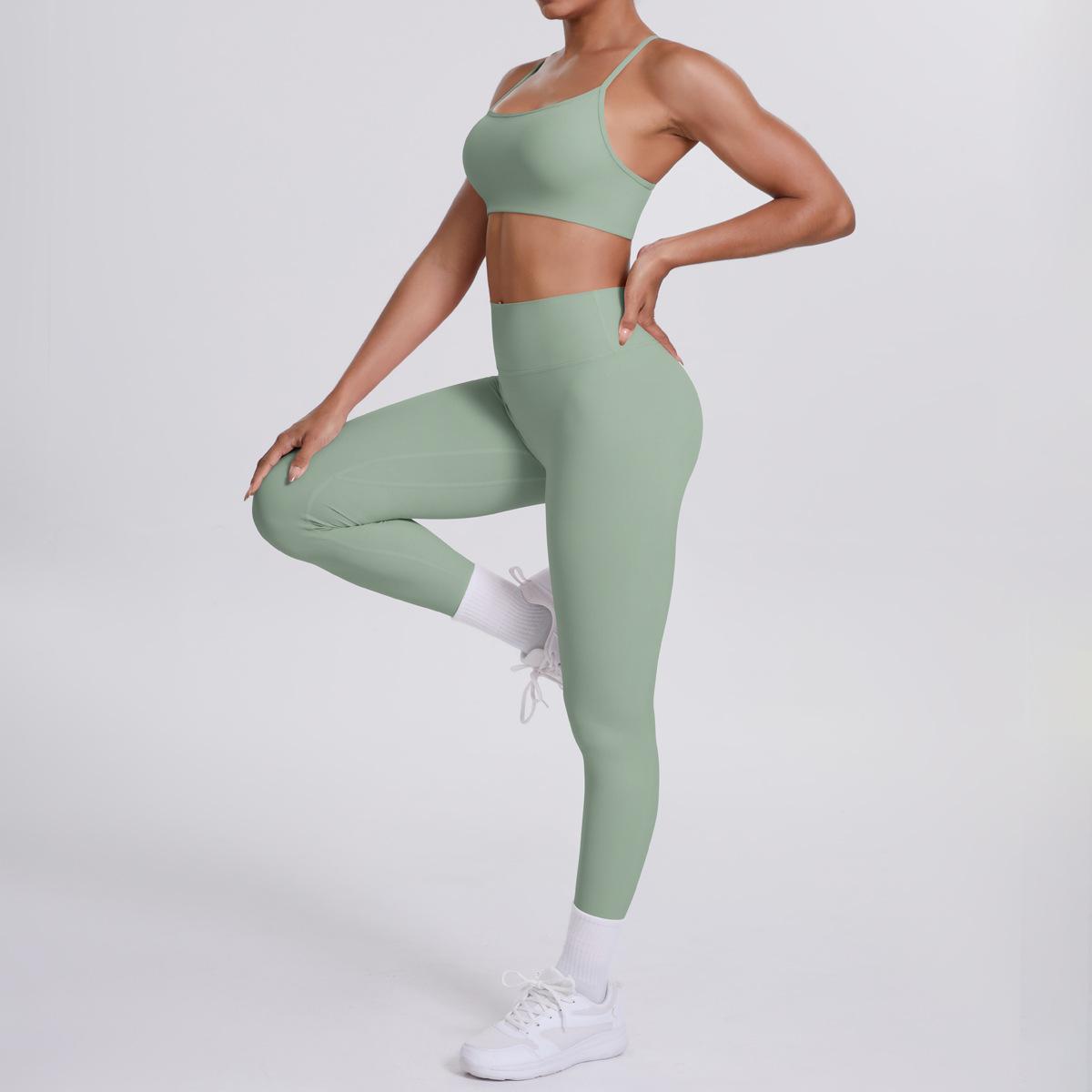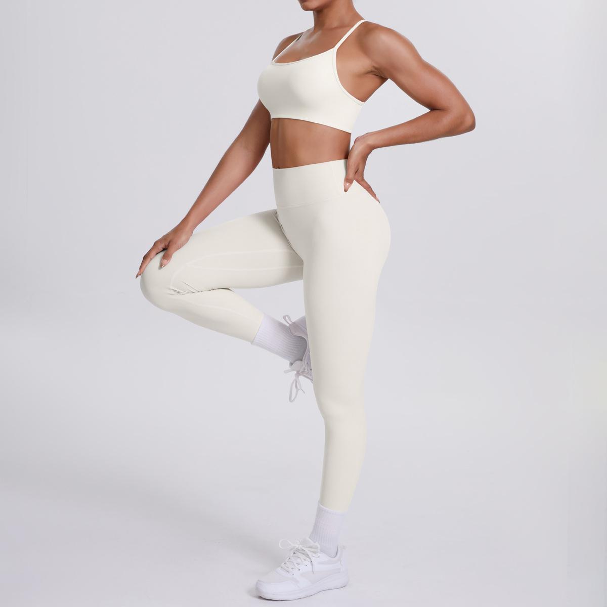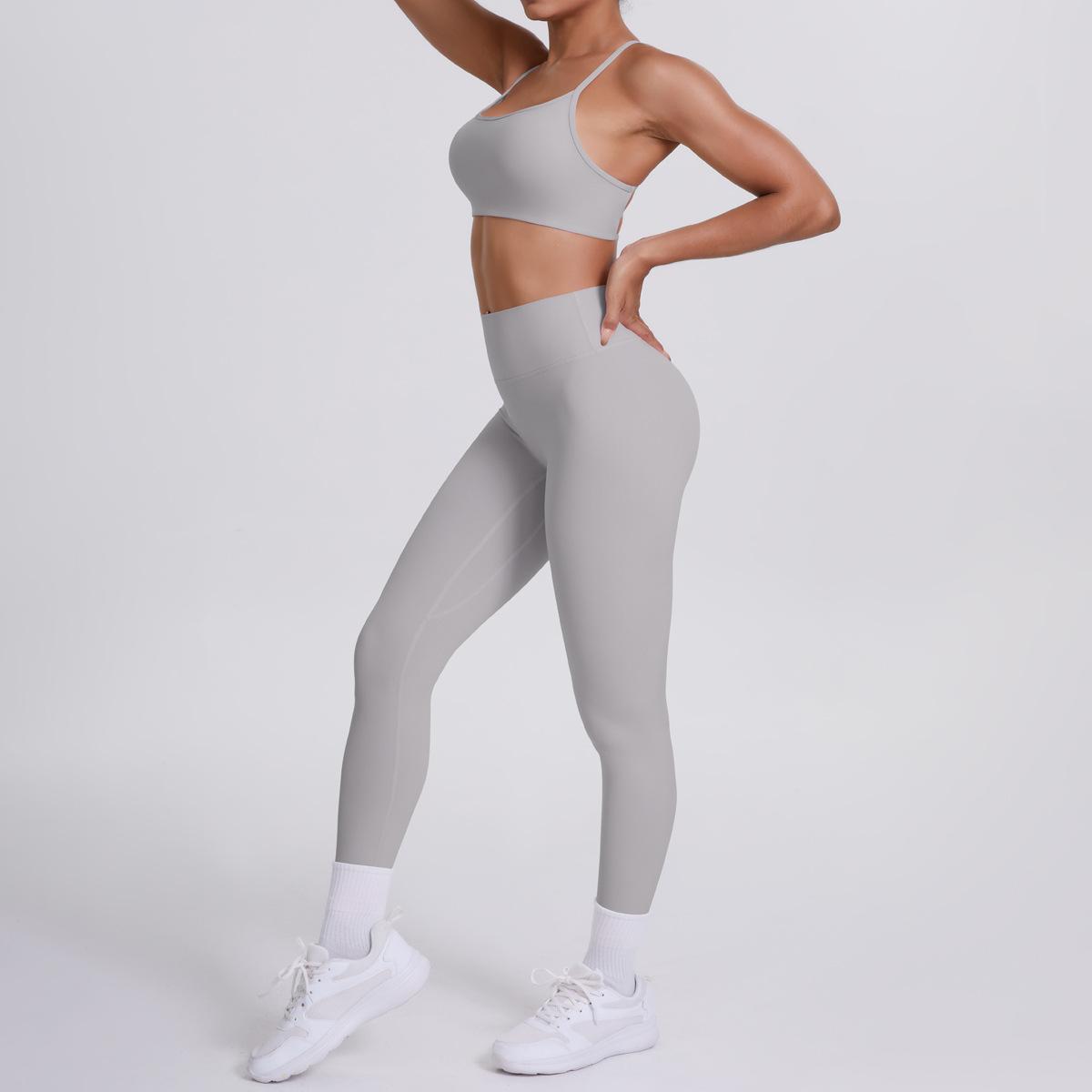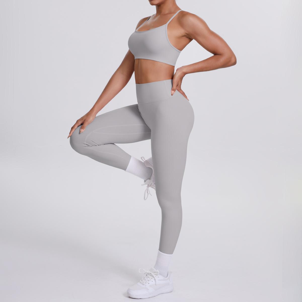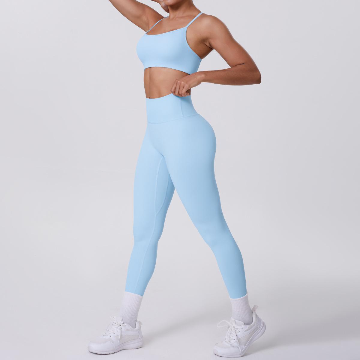 Novo Macacão de Yoga Esportivo Transfronteiriço Europeu e Americano de Nylon de Lado Duplo com Costas Bonitas e Ajustadas Cruzadas para Corrida e Fitness Conjunto de Duas Peças