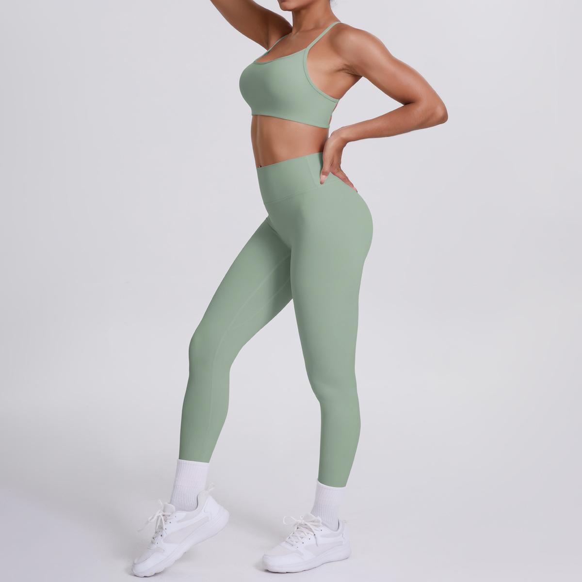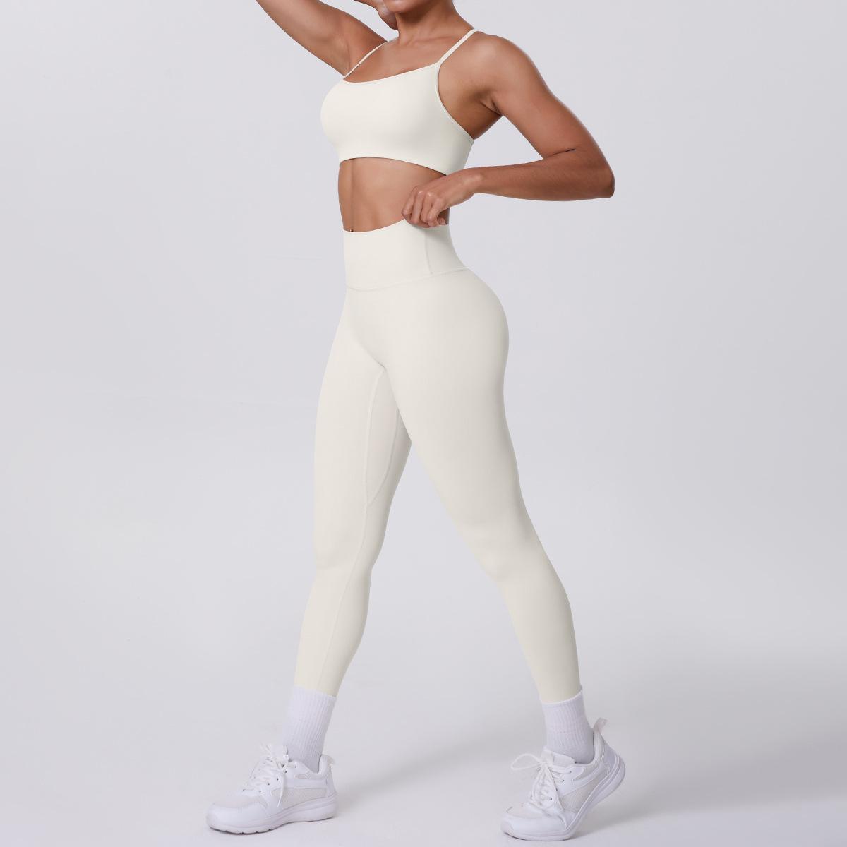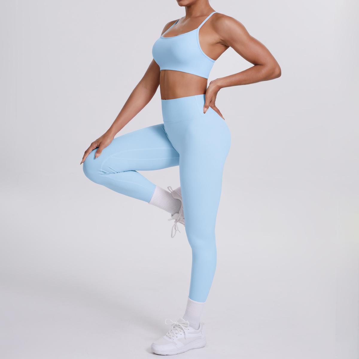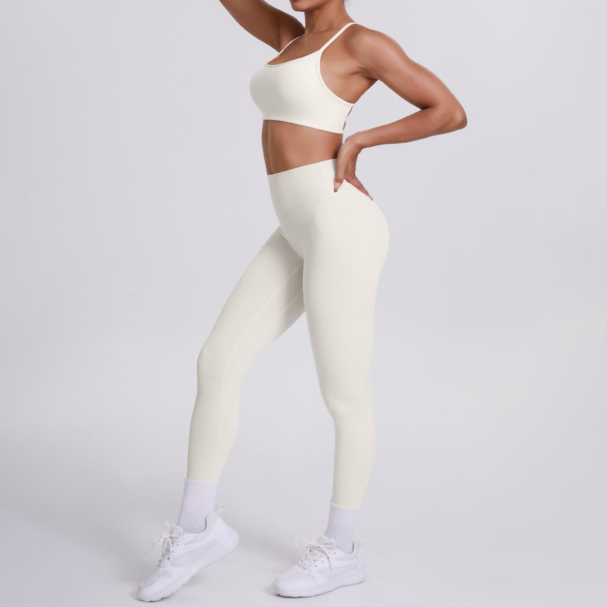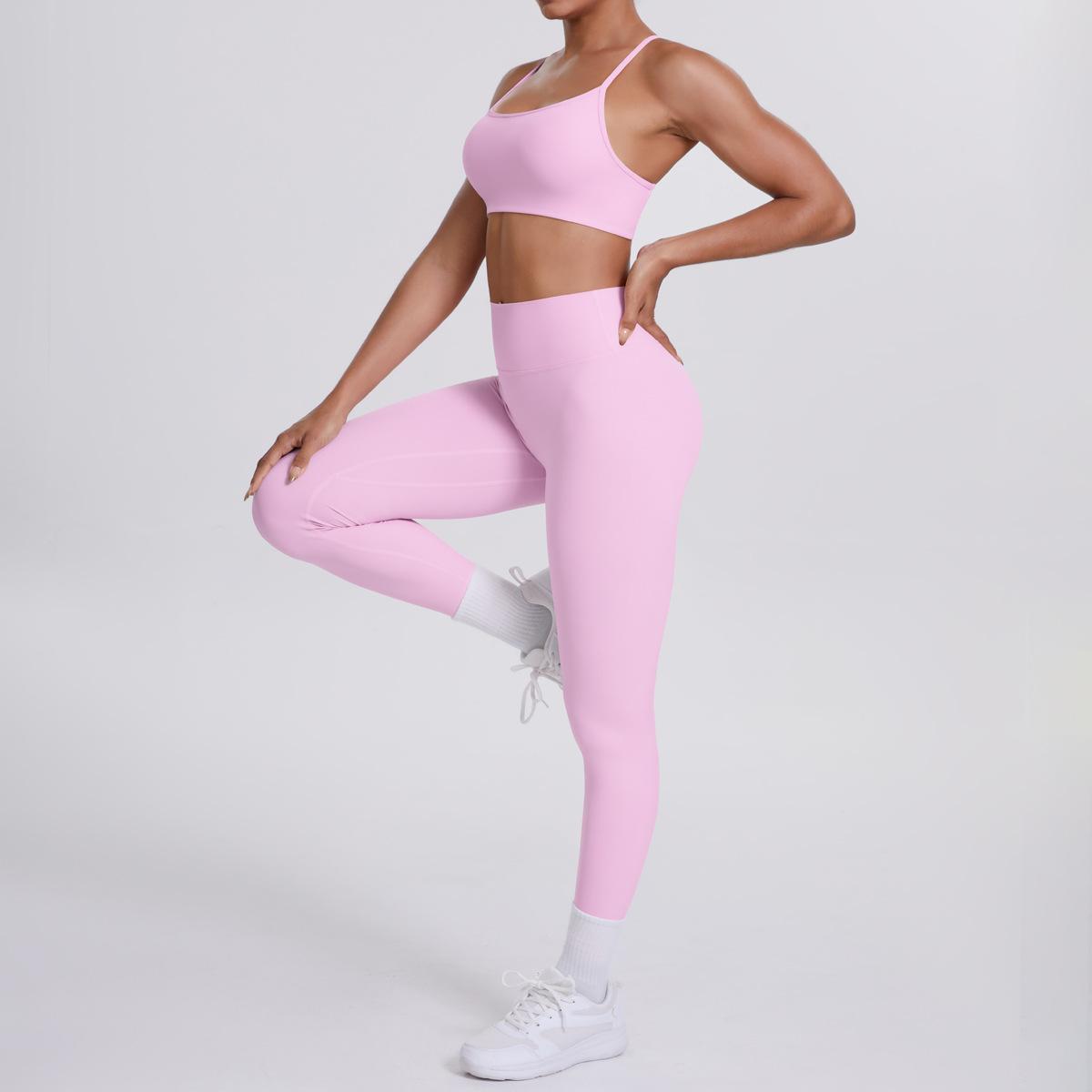 Novo Macacão de Yoga Esportivo Transfronteiriço Europeu e Americano de Nylon de Lado Duplo com Costas Bonitas e Ajustadas Cruzadas para Corrida e Fitness Conjunto de Duas Peças