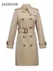 Casaco Trench Coat Autonal Macio e Estruturado Jiazehua para Mulheres, Impermeável Clássico de Botão Duplo Comprimento Médio Bege Estilo Britânico