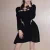 Conjunto de vestido longo de outono sexy para mulher madura sofisticada estilo Hepburn de duas peças, com suspensório, caimento slim, modelador e cardigã.