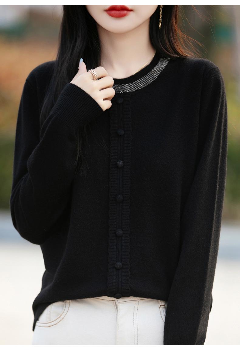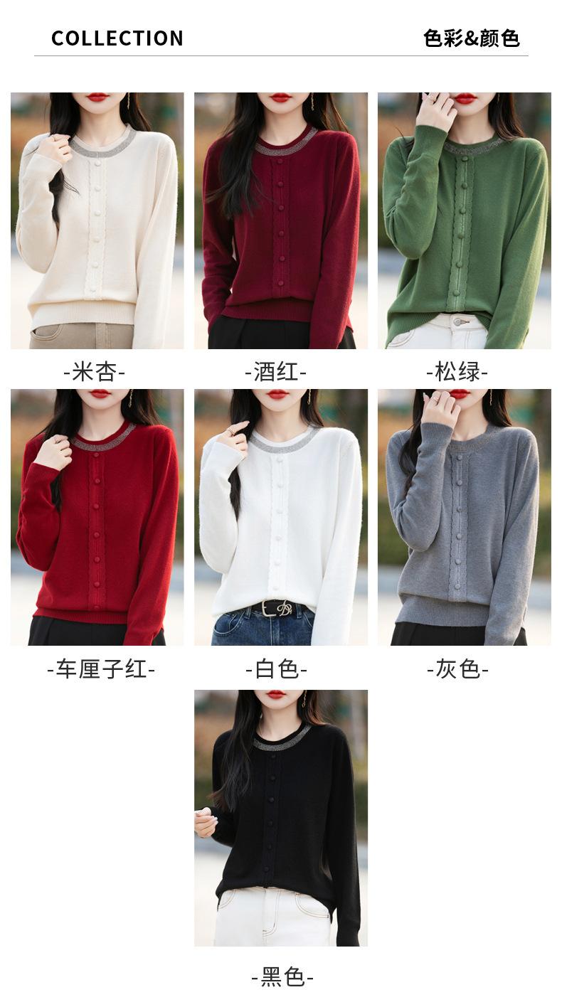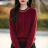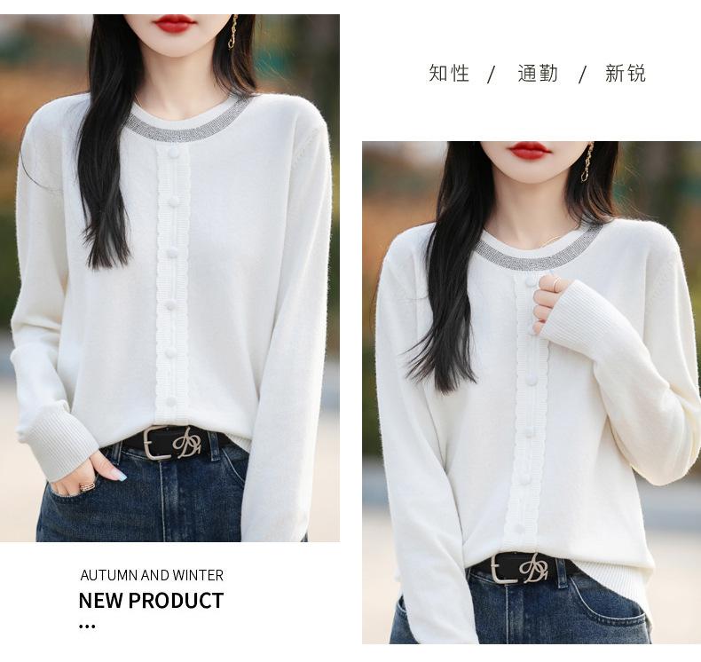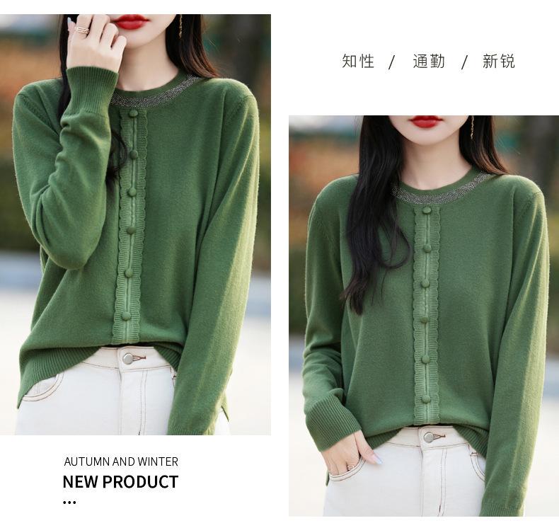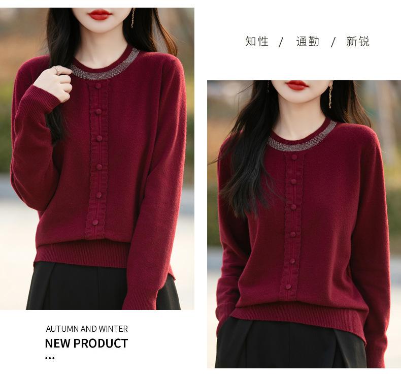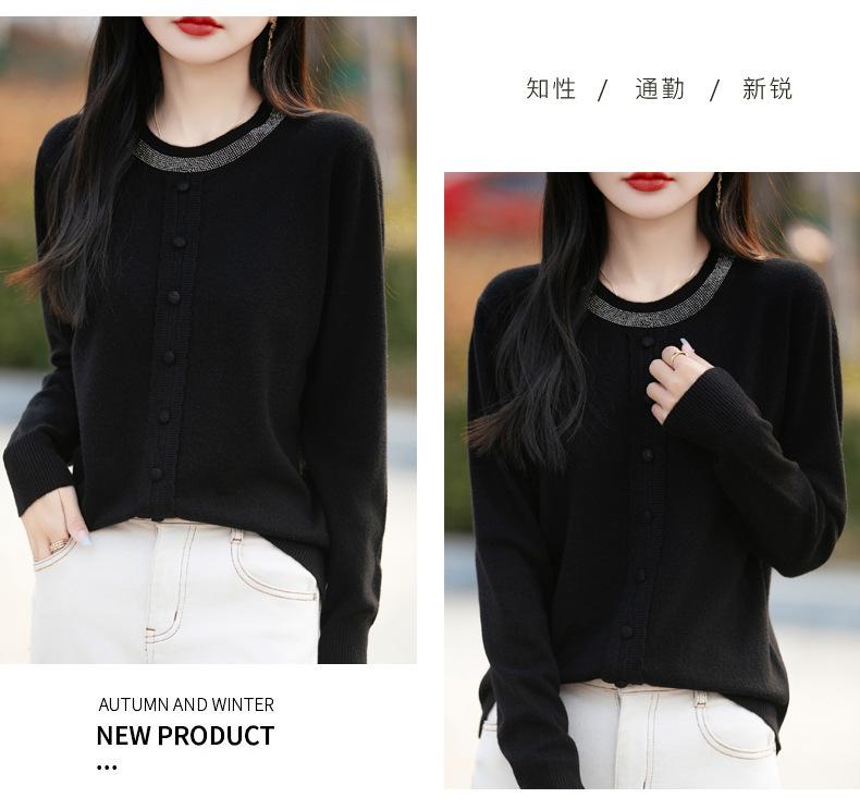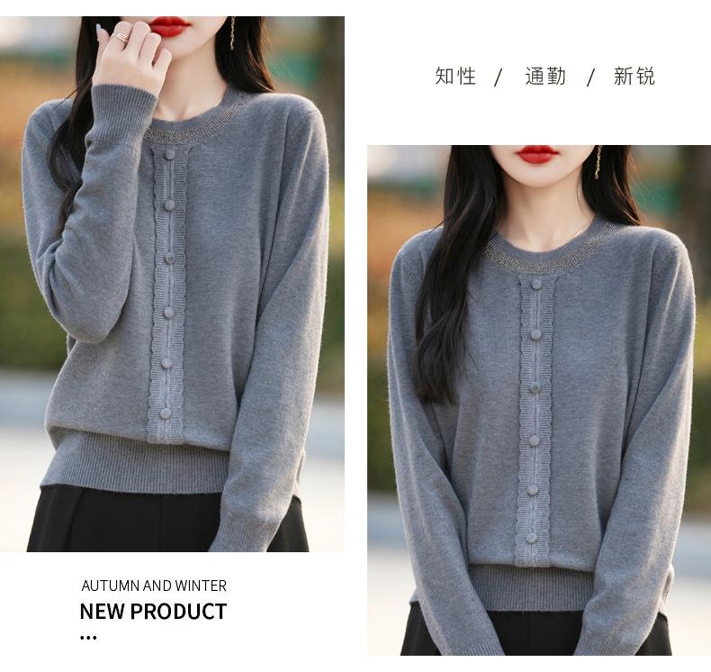 Transfronteiriço 2025 Outono/Inverno Novo Pulôver Tricotado Feminino Gola Careca Cardigã Suéter Camada Base de Inverno Feminina Atacado de Comércio Exterior