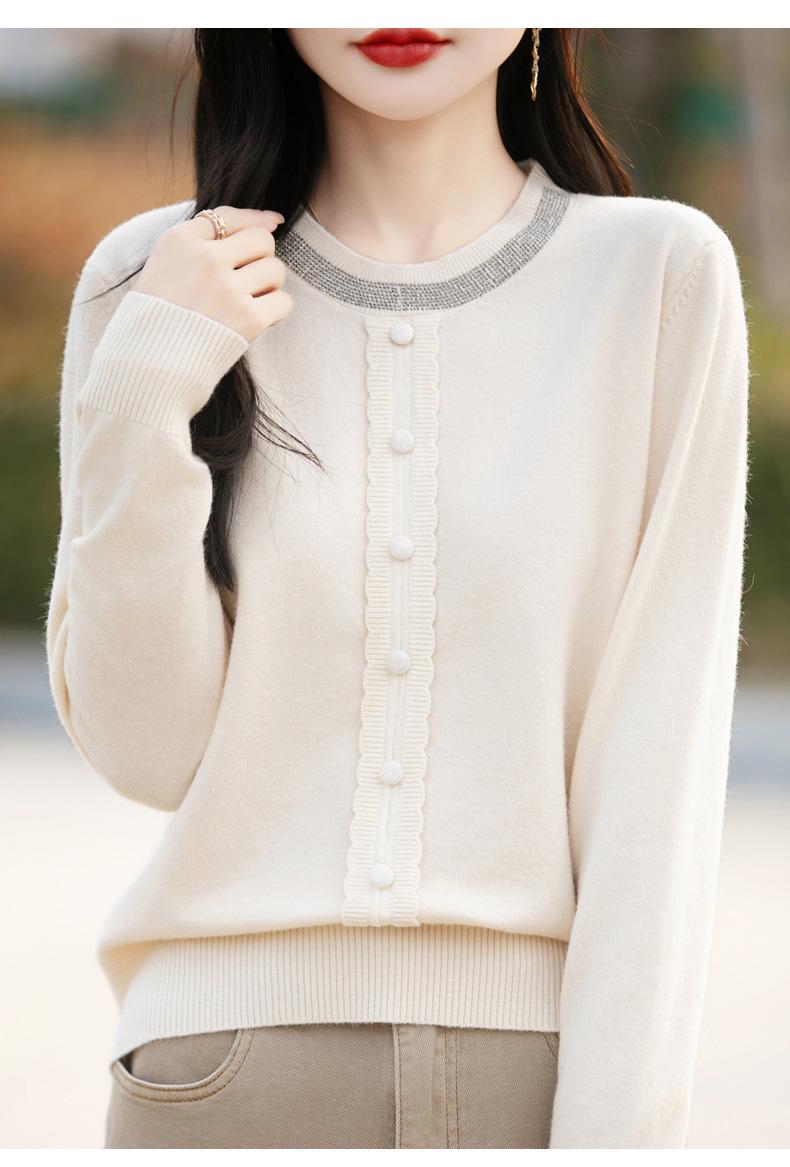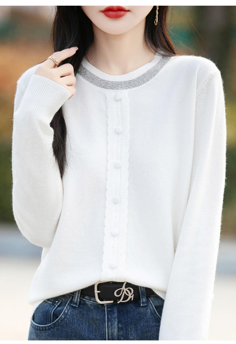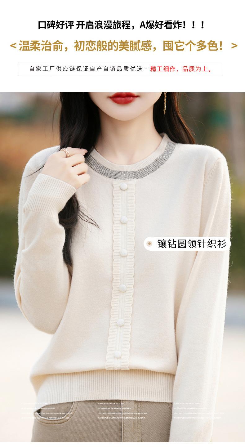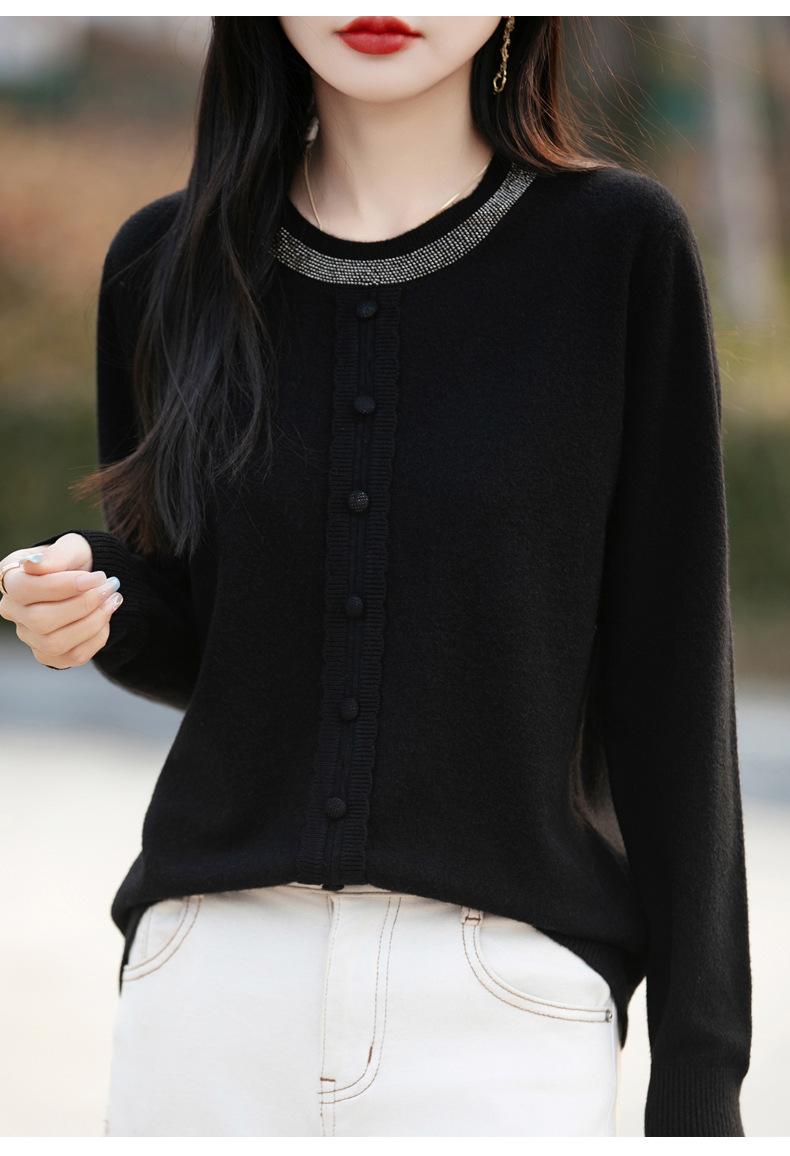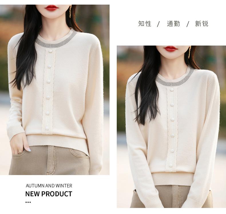 Transfronteiriço 2025 Outono/Inverno Novo Pulôver Tricotado Feminino Gola Careca Cardigã Suéter Camada Base de Inverno Feminina Atacado de Comércio Exterior