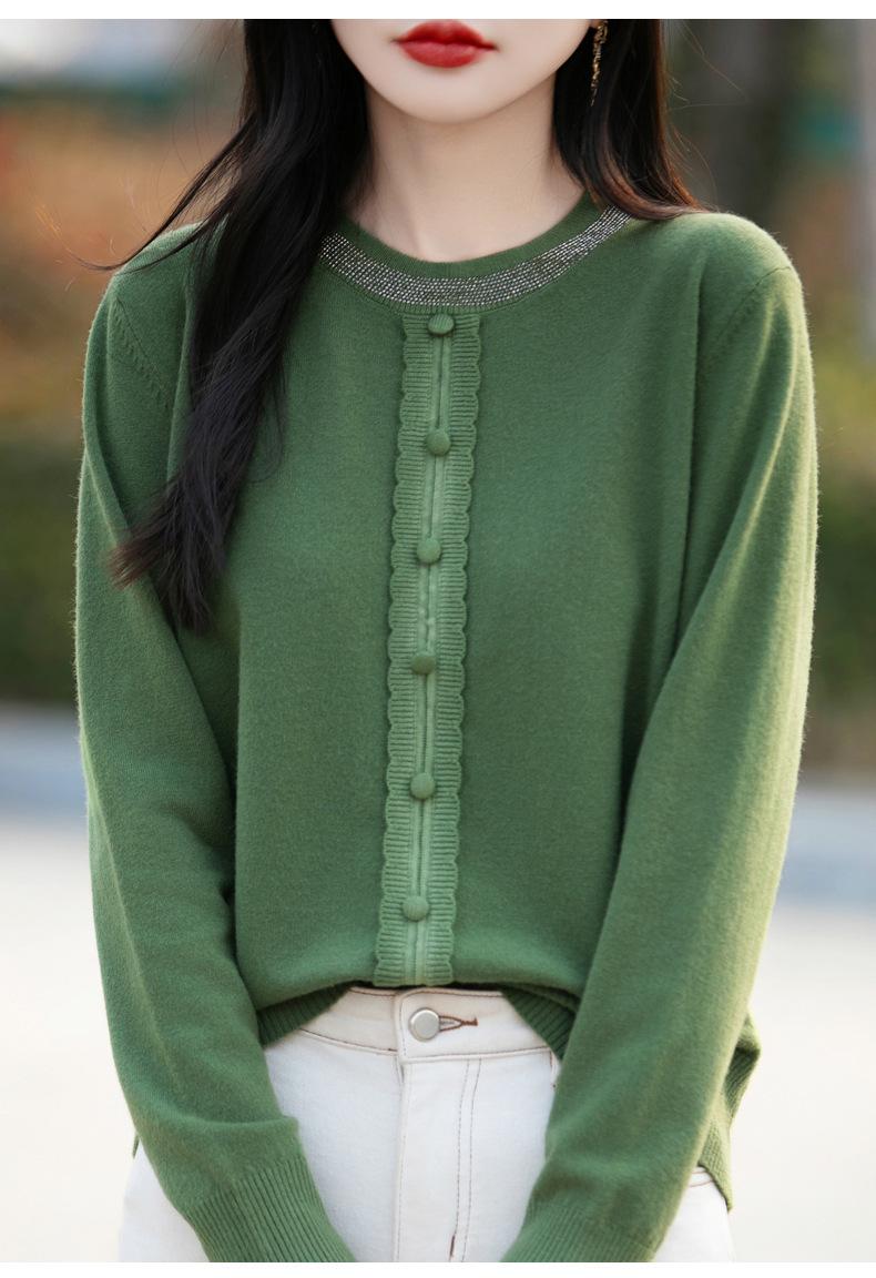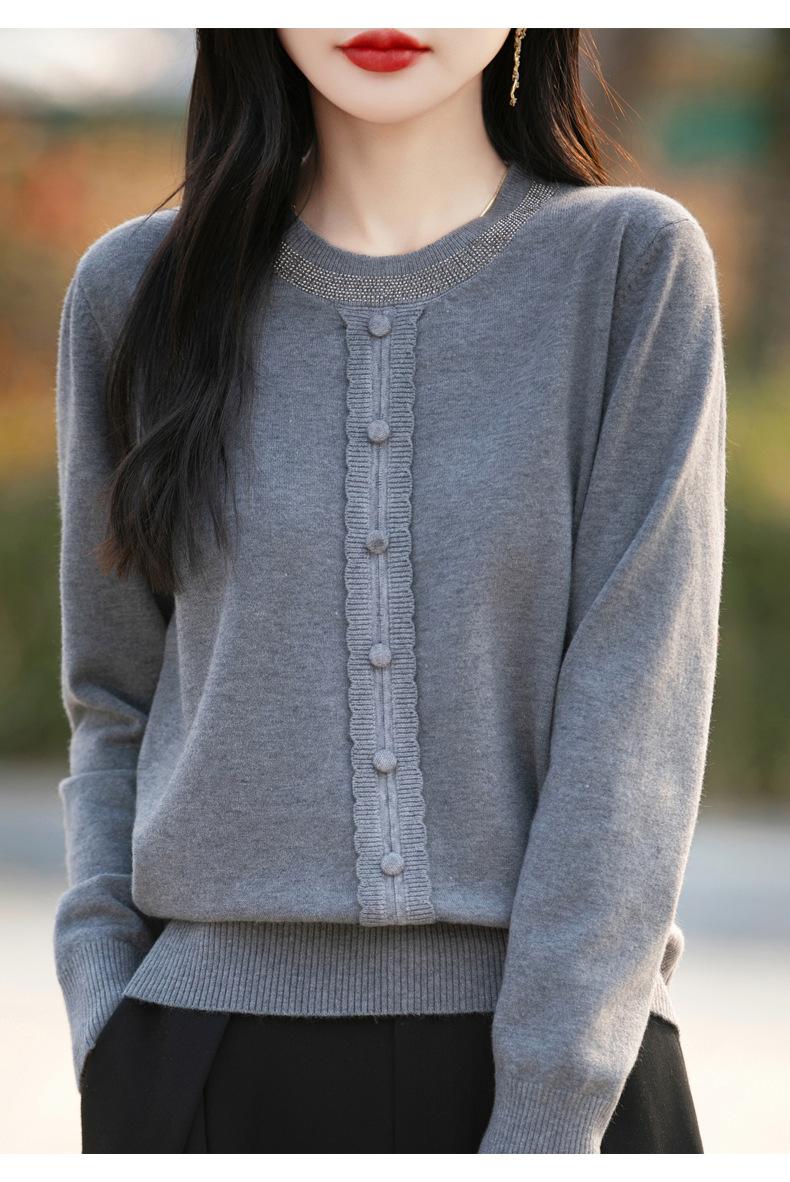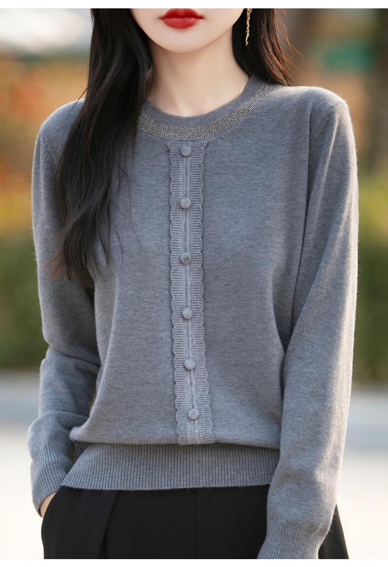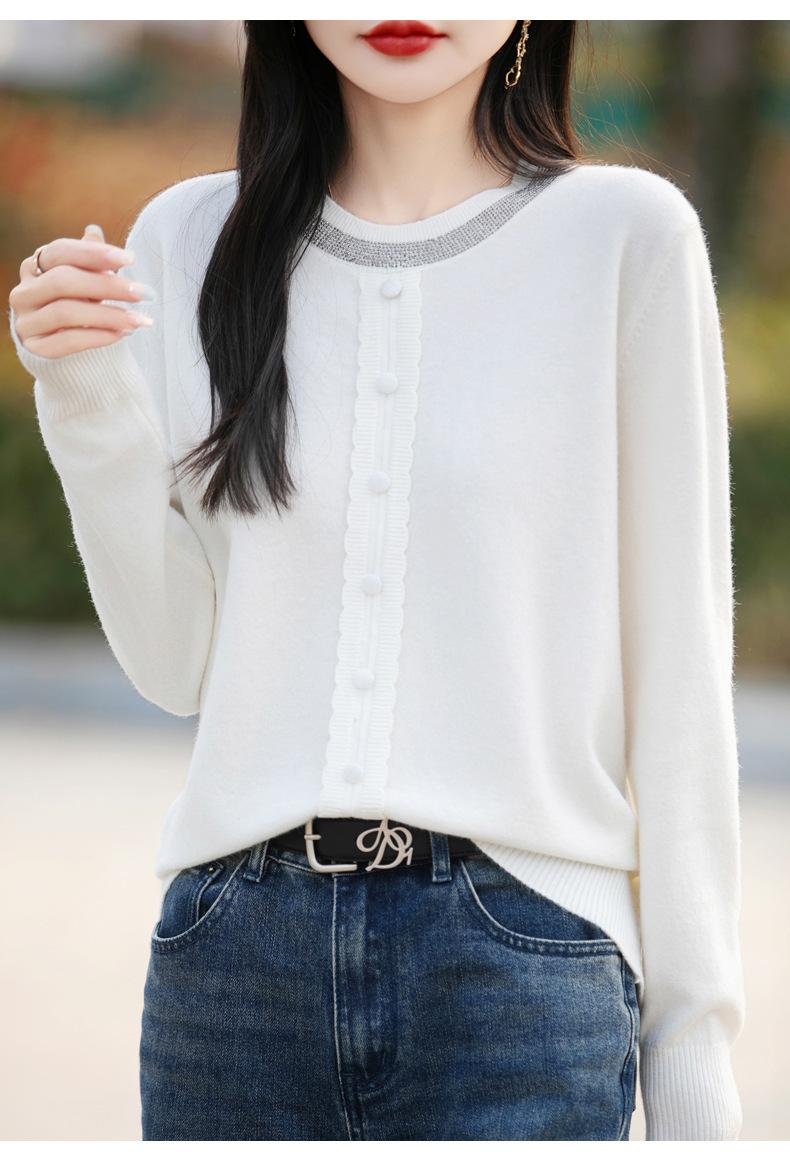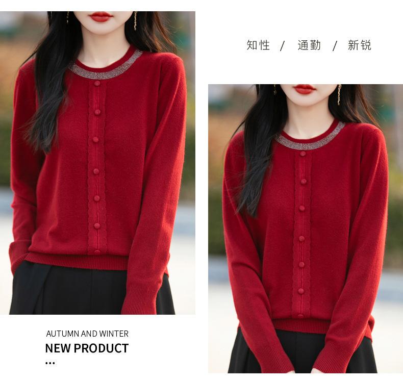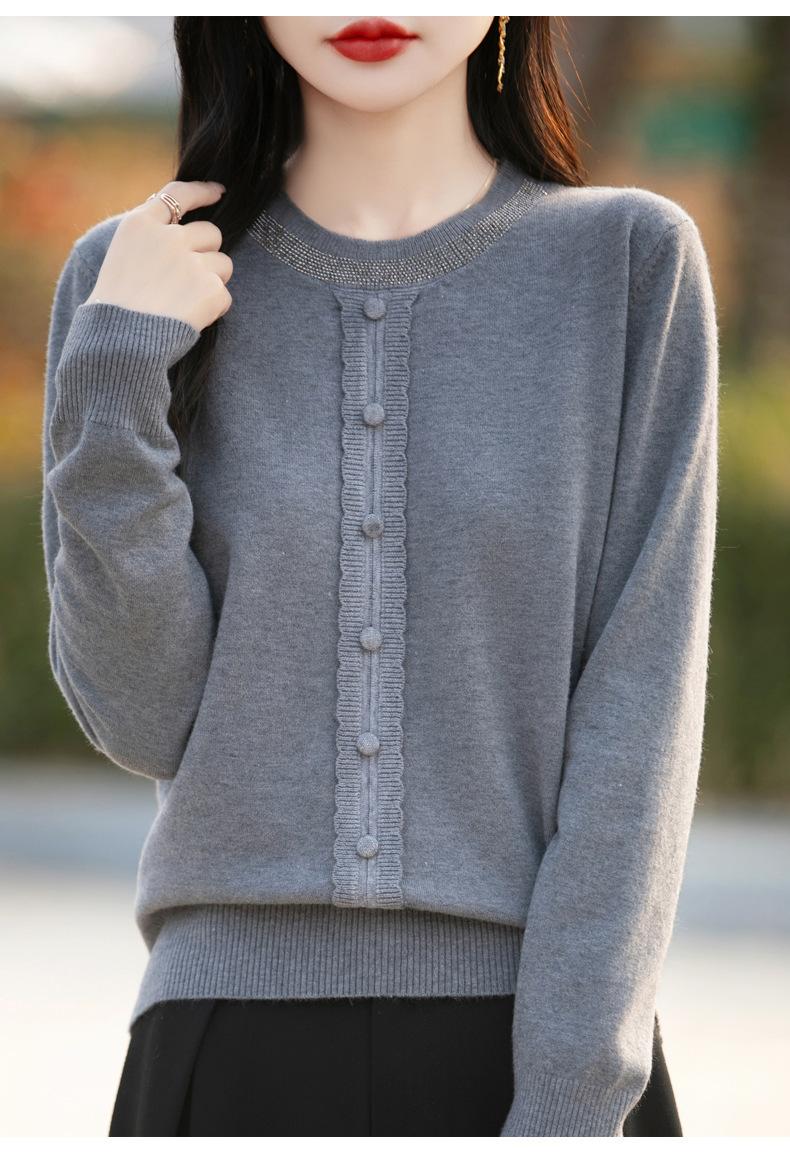 Transfronteiriço 2025 Outono/Inverno Novo Pulôver Tricotado Feminino Gola Careca Cardigã Suéter Camada Base de Inverno Feminina Atacado de Comércio Exterior