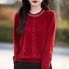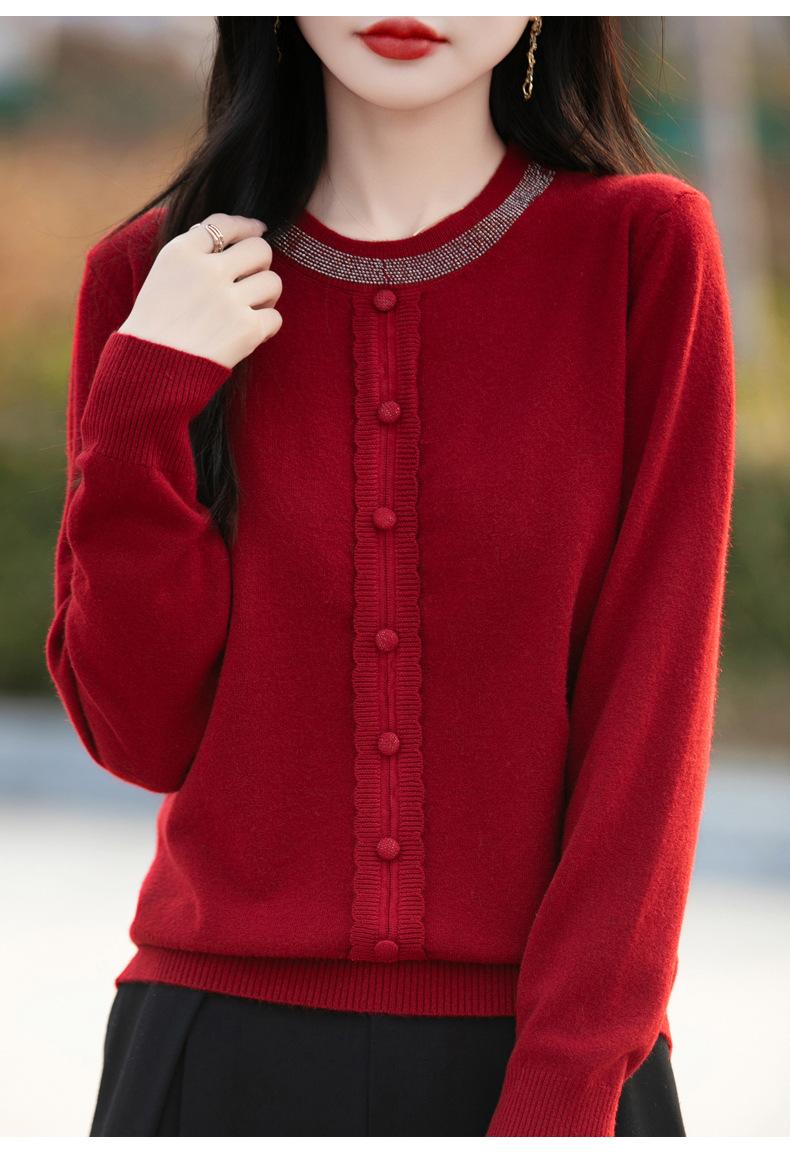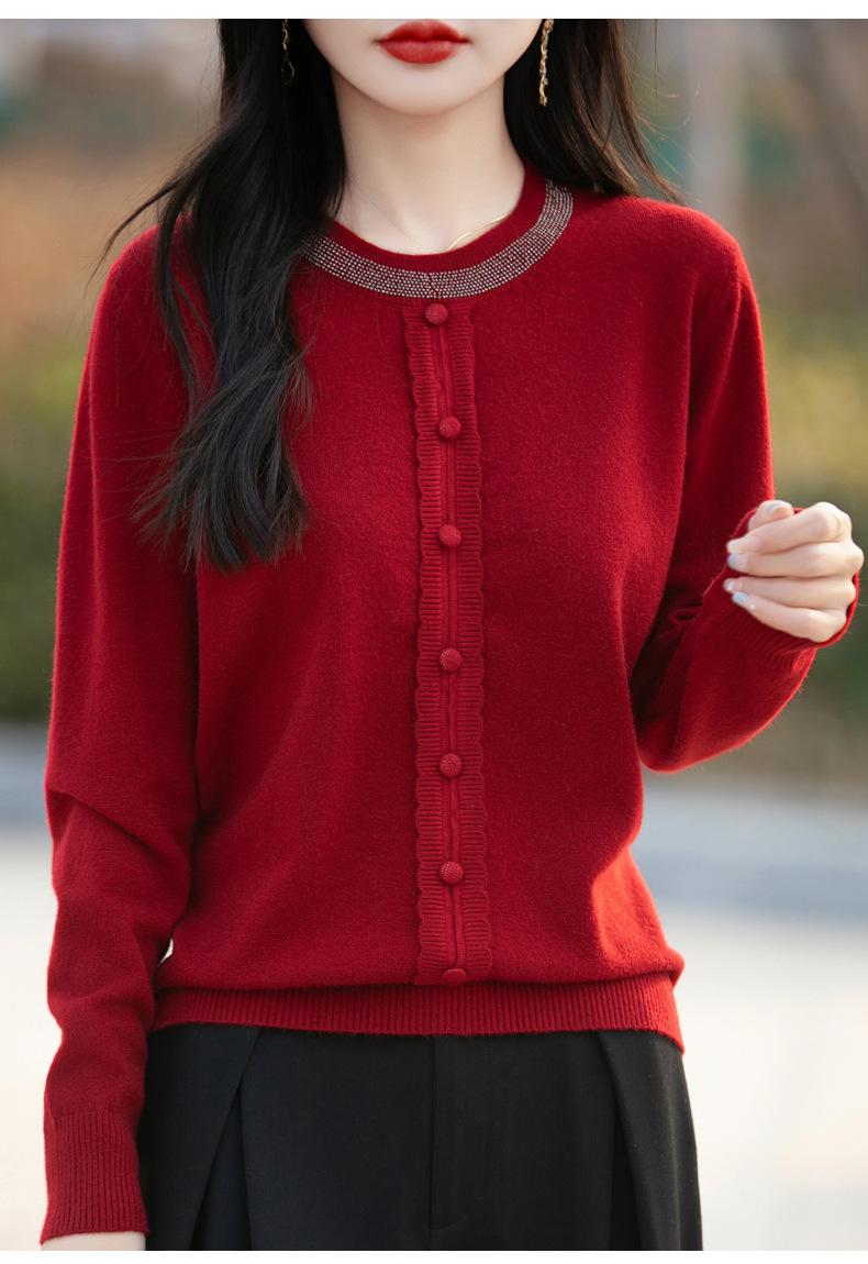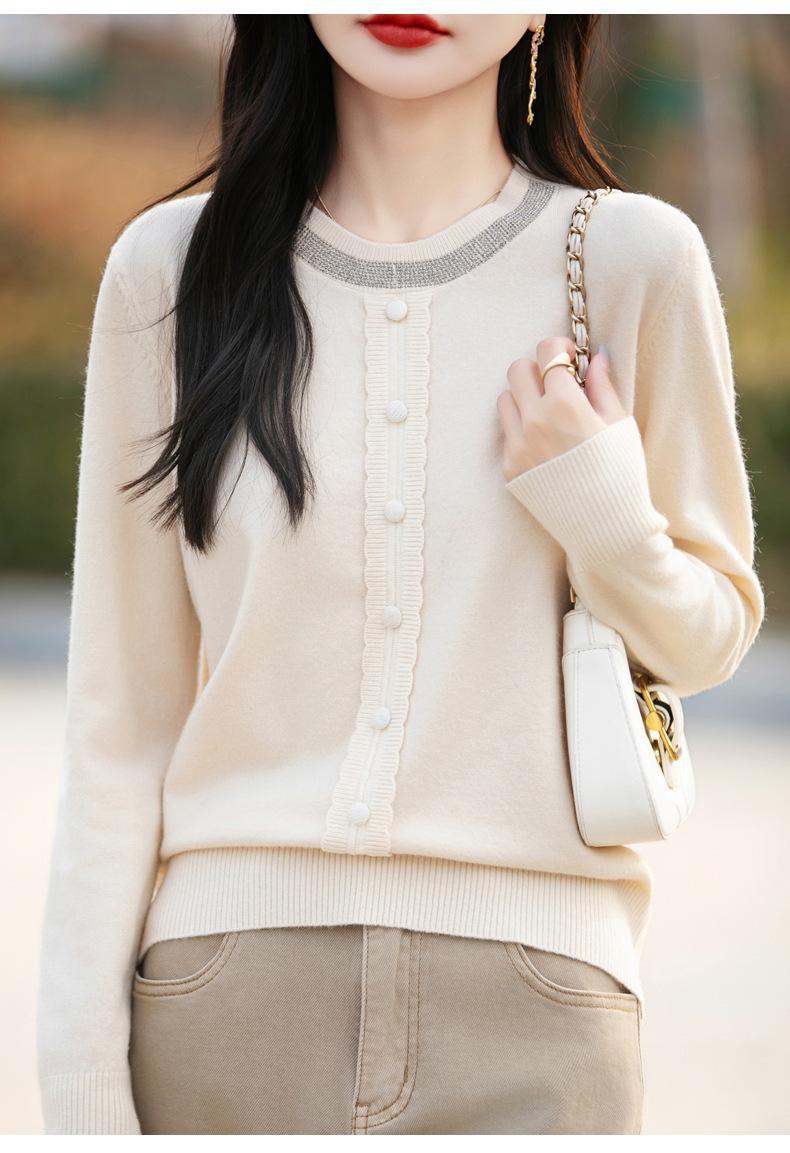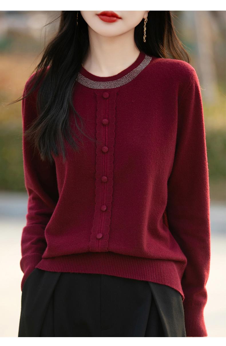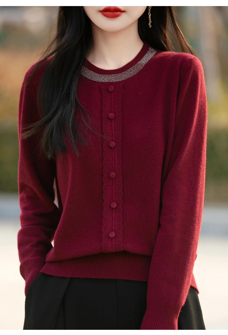 Transfronteiriço 2025 Outono/Inverno Novo Pulôver Tricotado Feminino Gola Careca Cardigã Suéter Camada Base de Inverno Feminina Atacado de Comércio Exterior