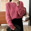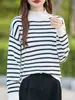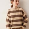 Suéter listrado color block de gola careca 100% lã pura feminino estilo solto preguiçoso suéter engrossado pulôver de manga comprida tricô base