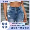 2024 Primavera e Verão Roupas Femininas Europeias e Americanas Amazon Transfronteiriça Novo Shorts Femininos Jeans Estonados Stretch Rasgados