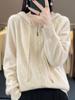 Cardigan de Tricô de Caxemira Feminino Novo Outono/Inverno 2025 Cor Sólida com Capuz e Bolsos Solto Casual Zíper Duplo Outerwear