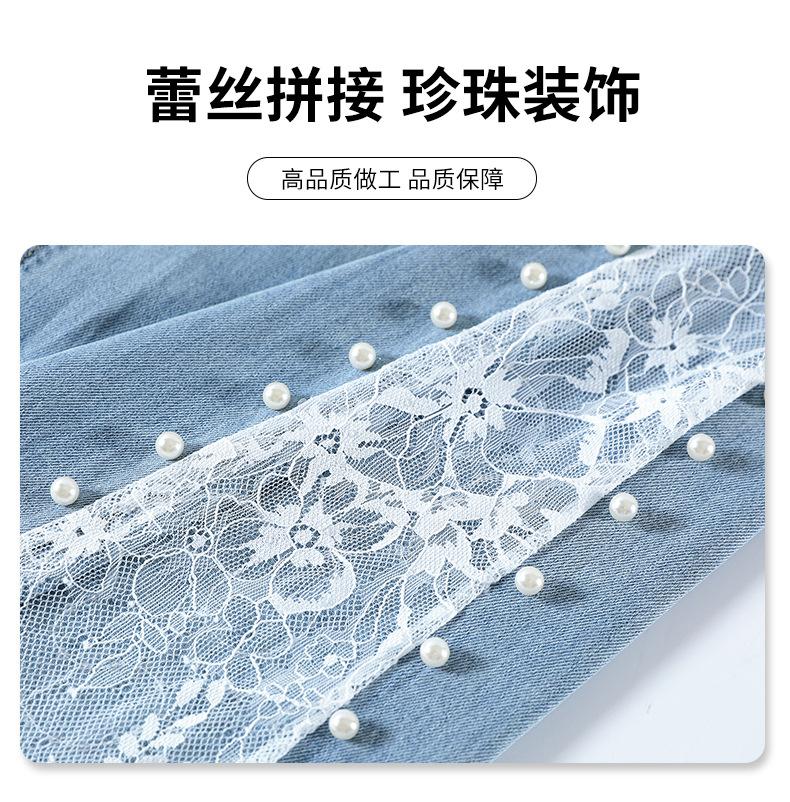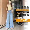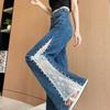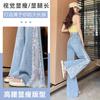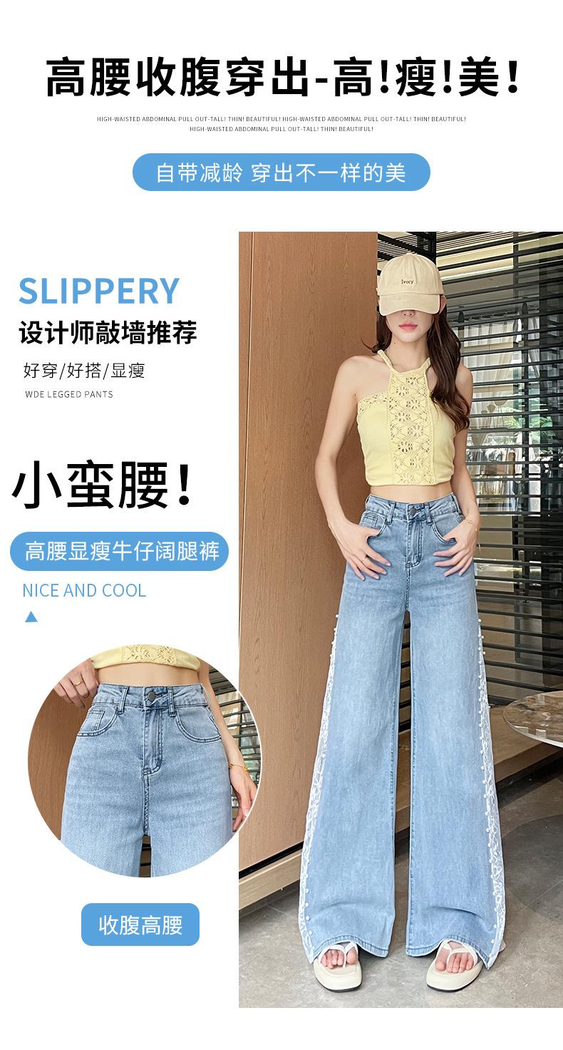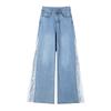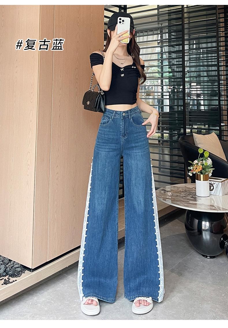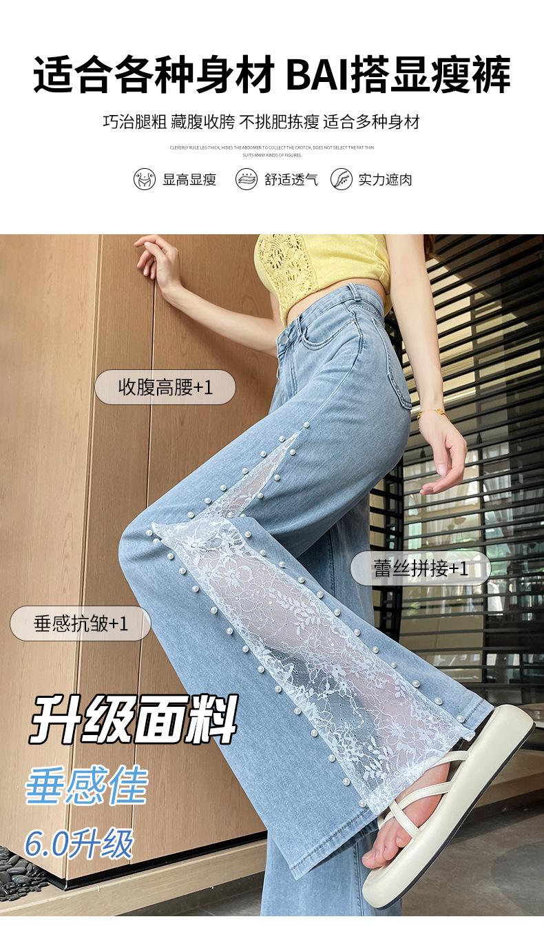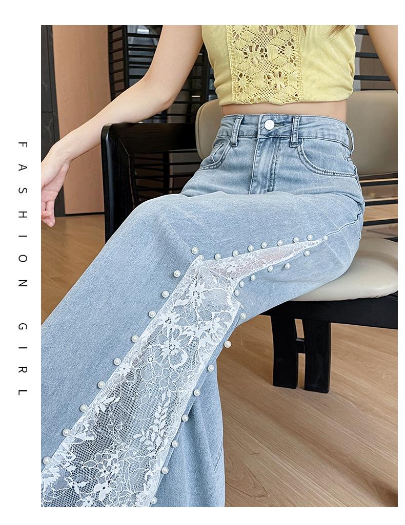 Jeans Tencel Vazados com Renda Pernas Largas Feminino 2025 Novo Verão Fino Super Quente Solto Emagrecimento Calças Retas