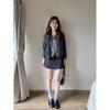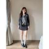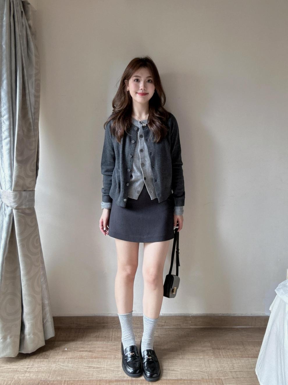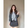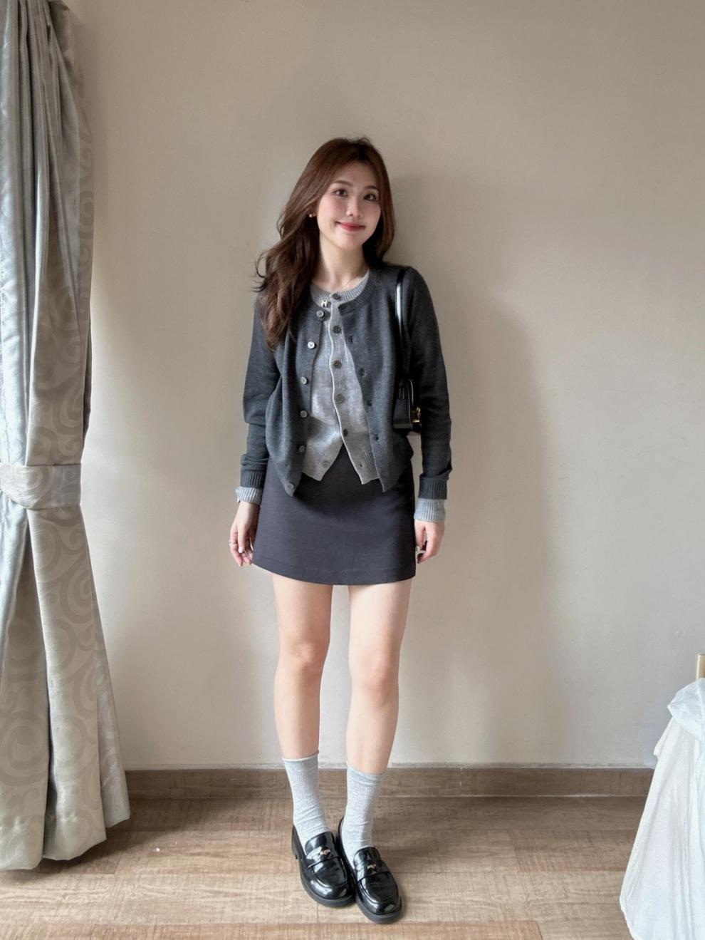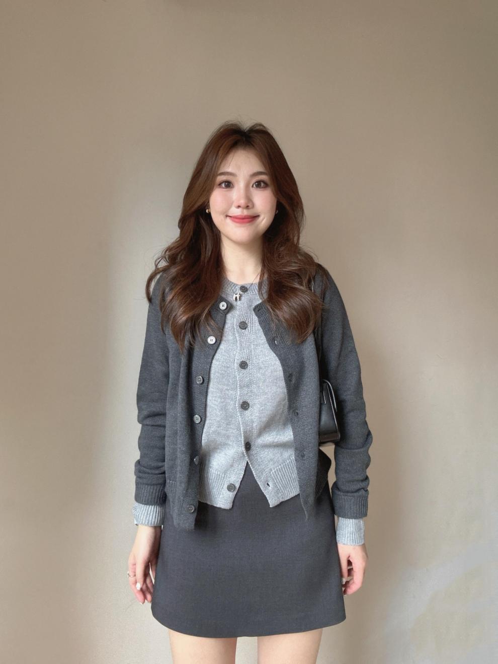 Conjunto simples e versátil cardigã de malha cinza falso duas peças outono novo saia curta de comprimento médio conjunto de moda A5963
