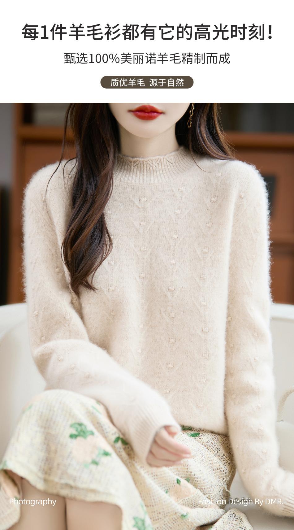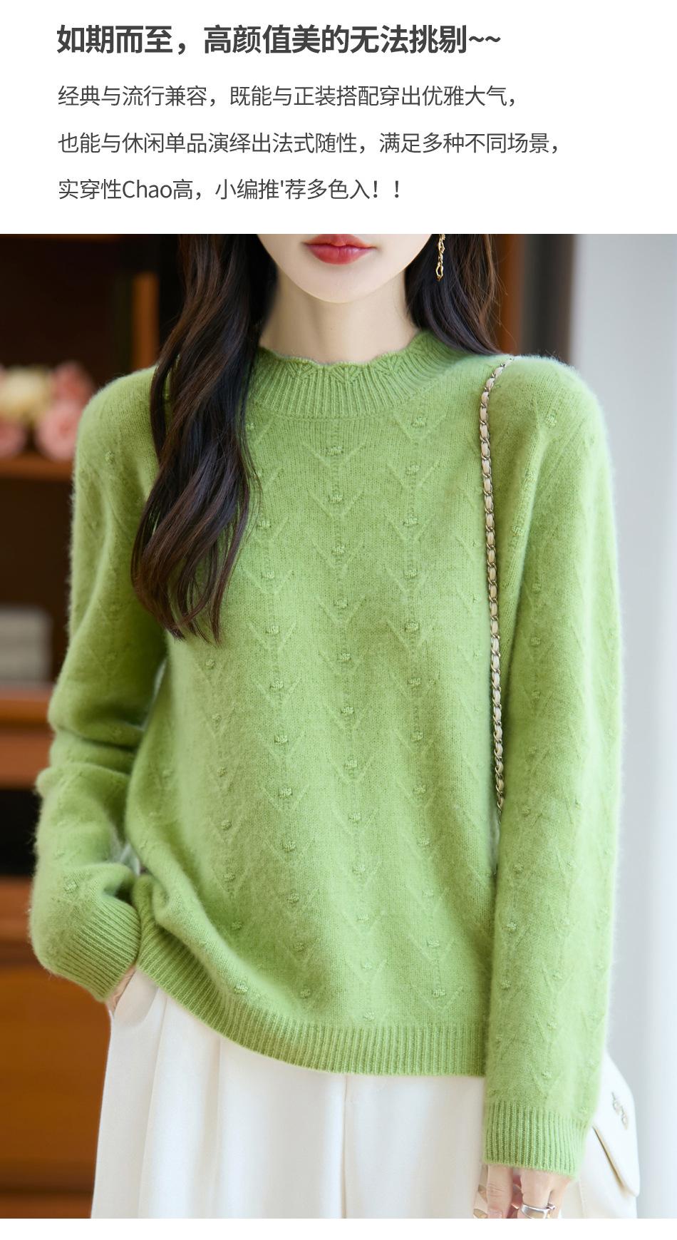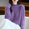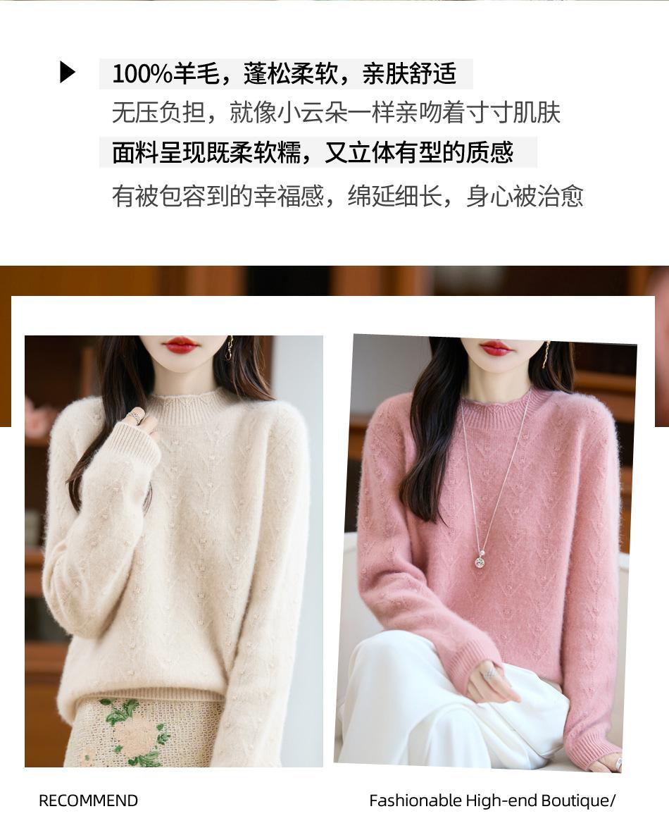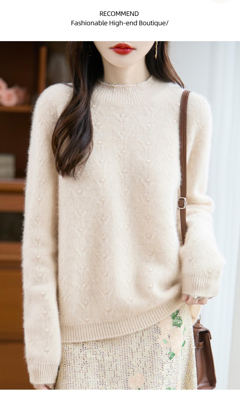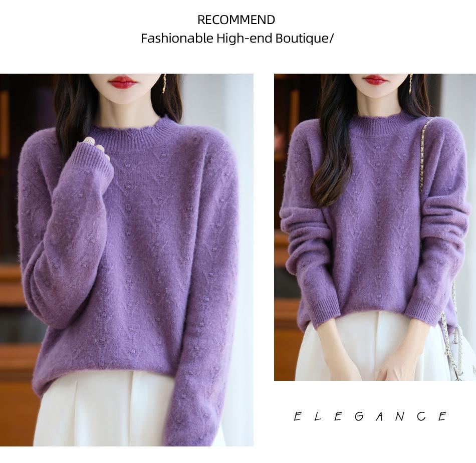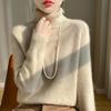 Suéter feminino novo de outono e inverno, de lã pura espessa de sete agulhas, gola alta, malha de manga comprida, pulôver jacquard solto