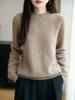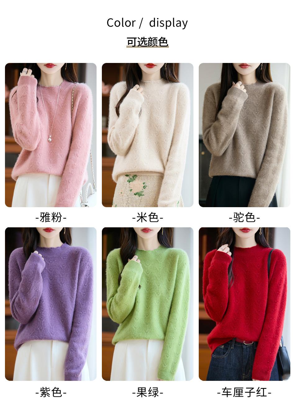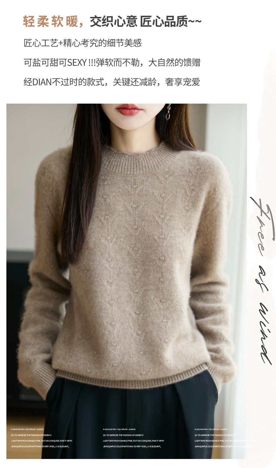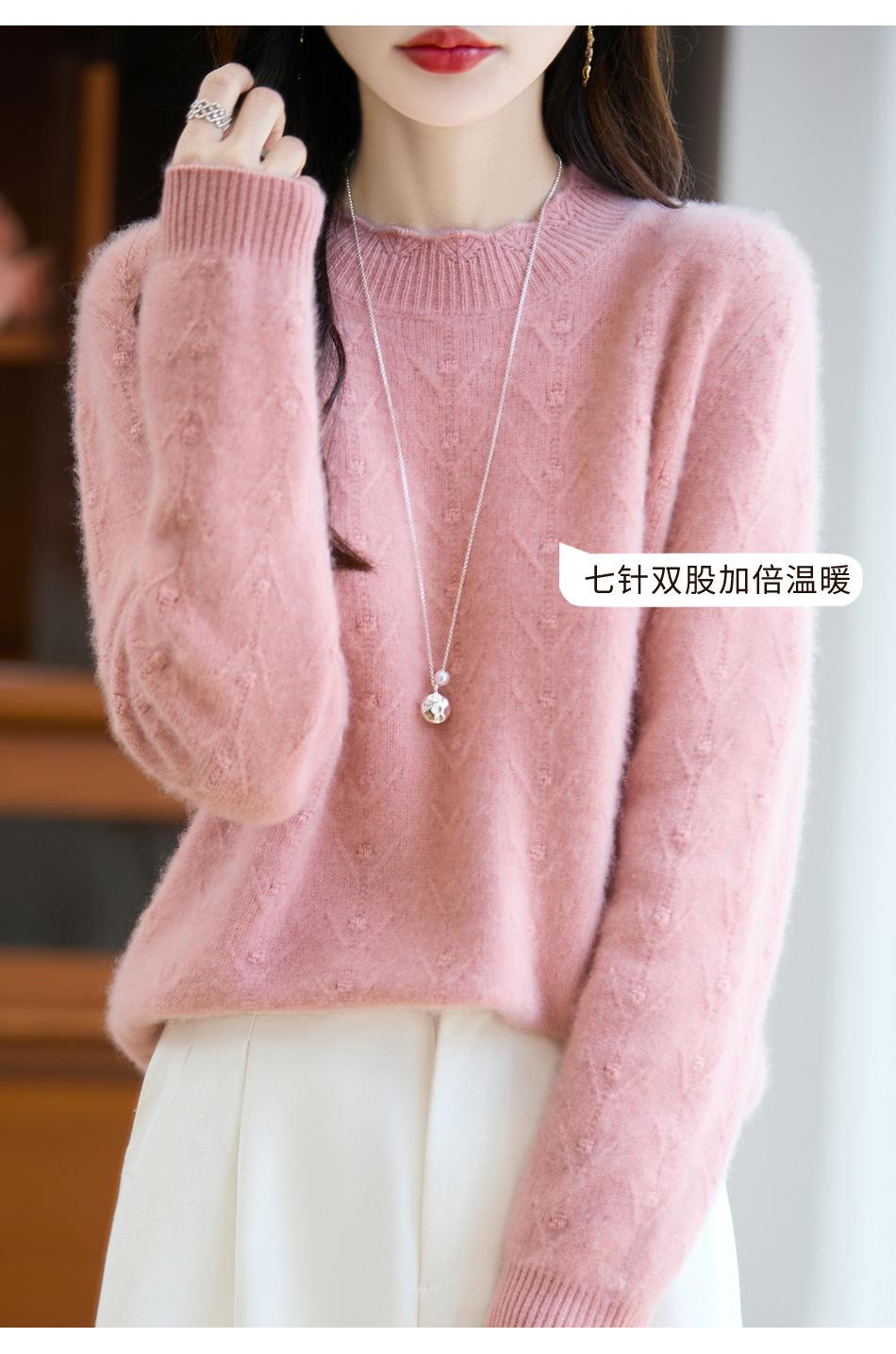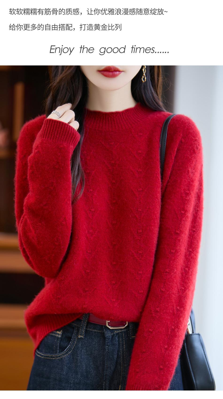 Suéter feminino novo de outono e inverno, de lã pura espessa de sete agulhas, gola alta, malha de manga comprida, pulôver jacquard solto
