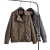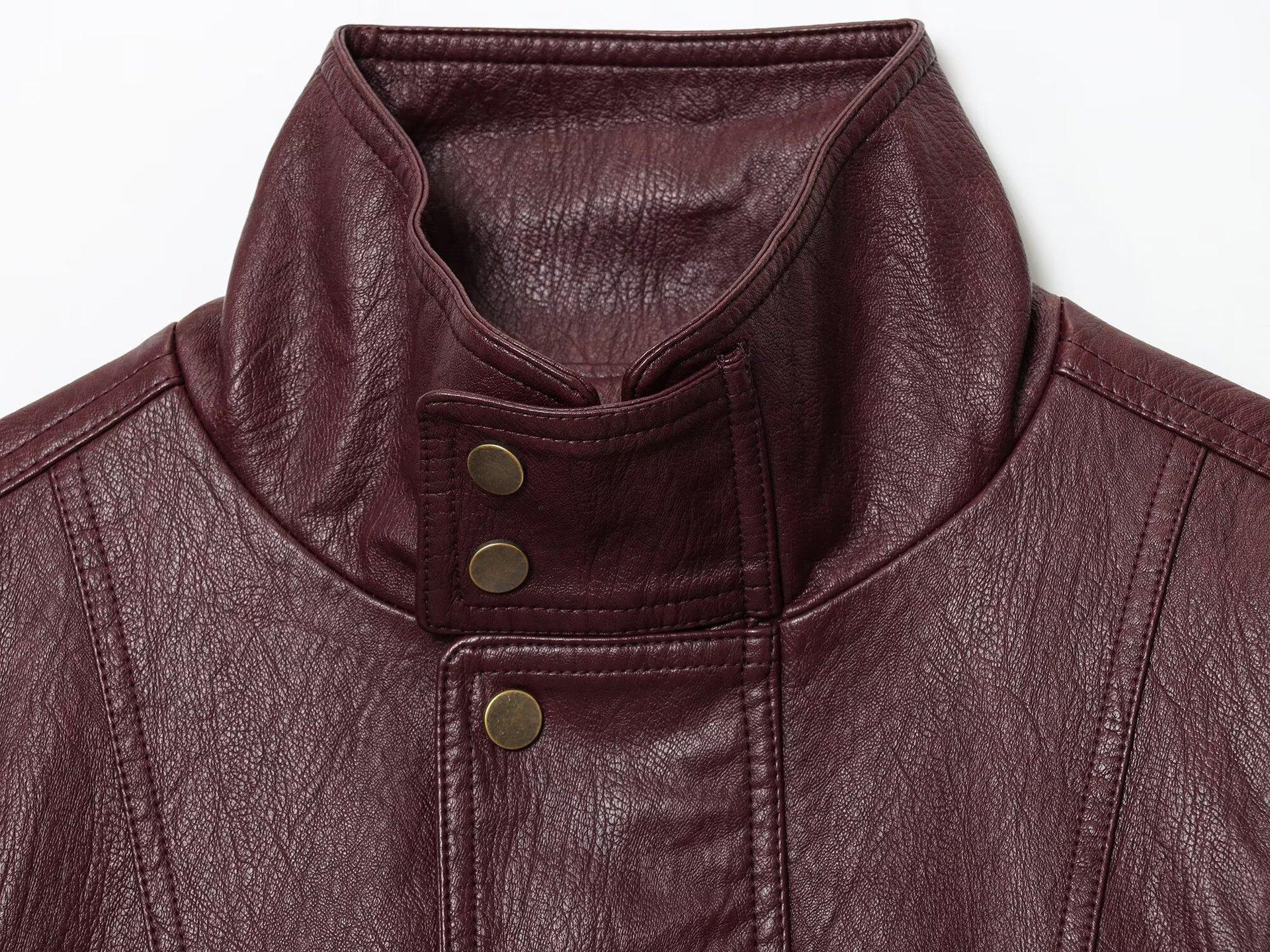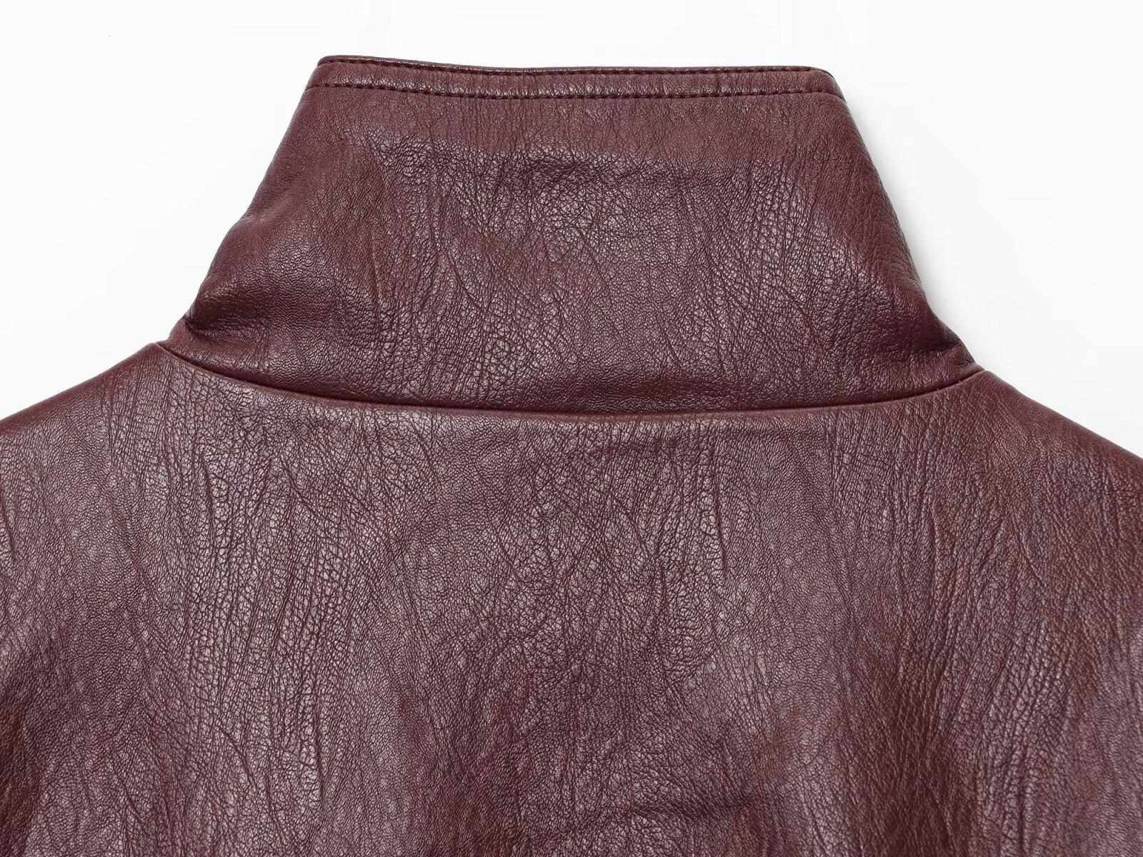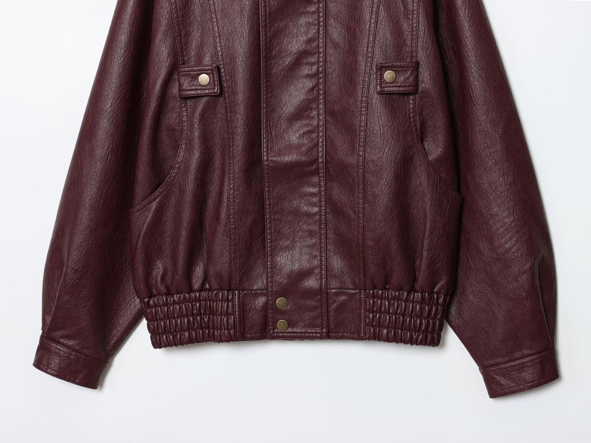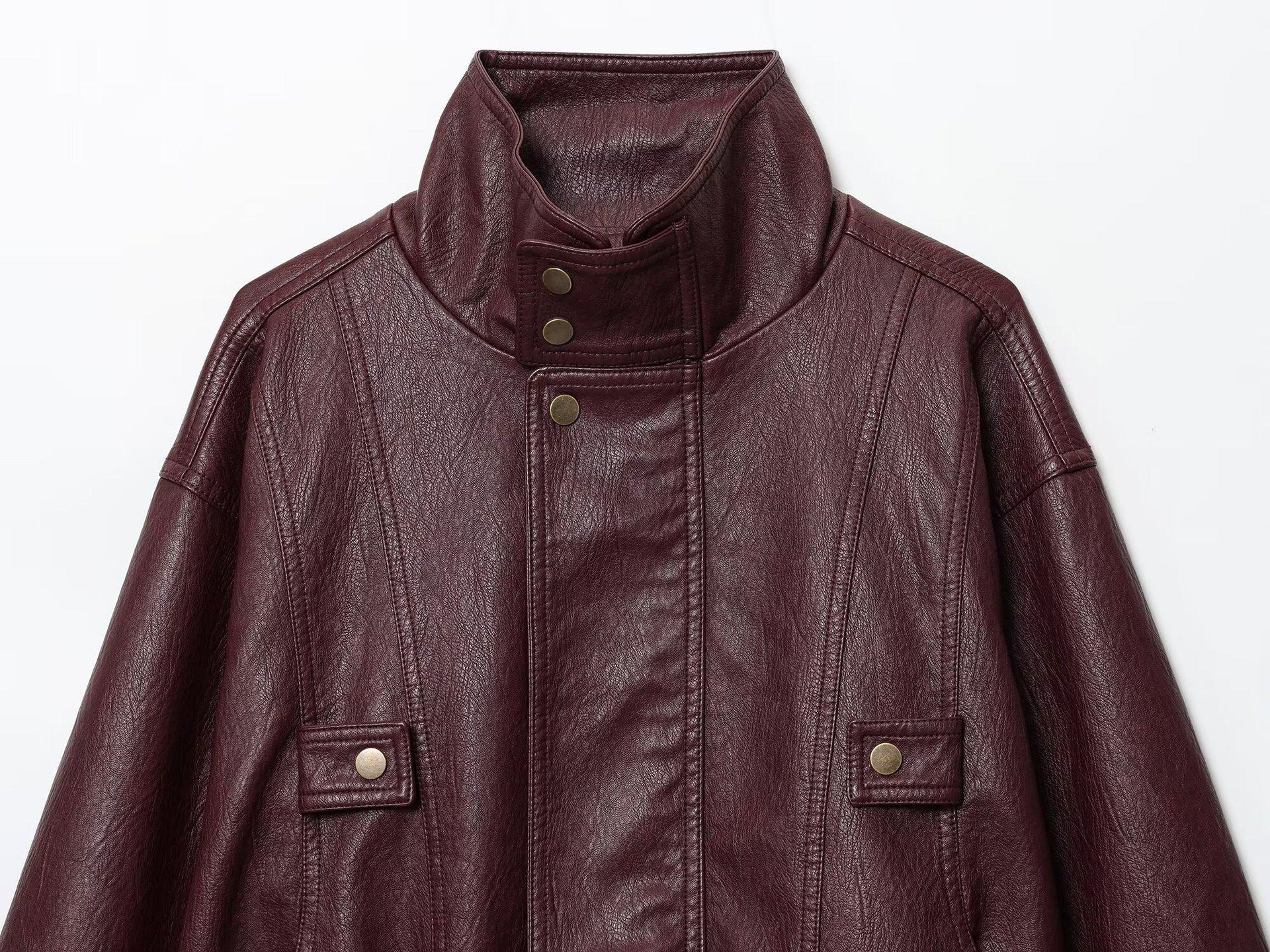 Roupas Femininas de Comércio Exterior Transfronteiriço Outono 2025 Europeu e Americano Gola Alta Decoração de Botões PU Jaqueta Solta Casaco Mulheres L420664