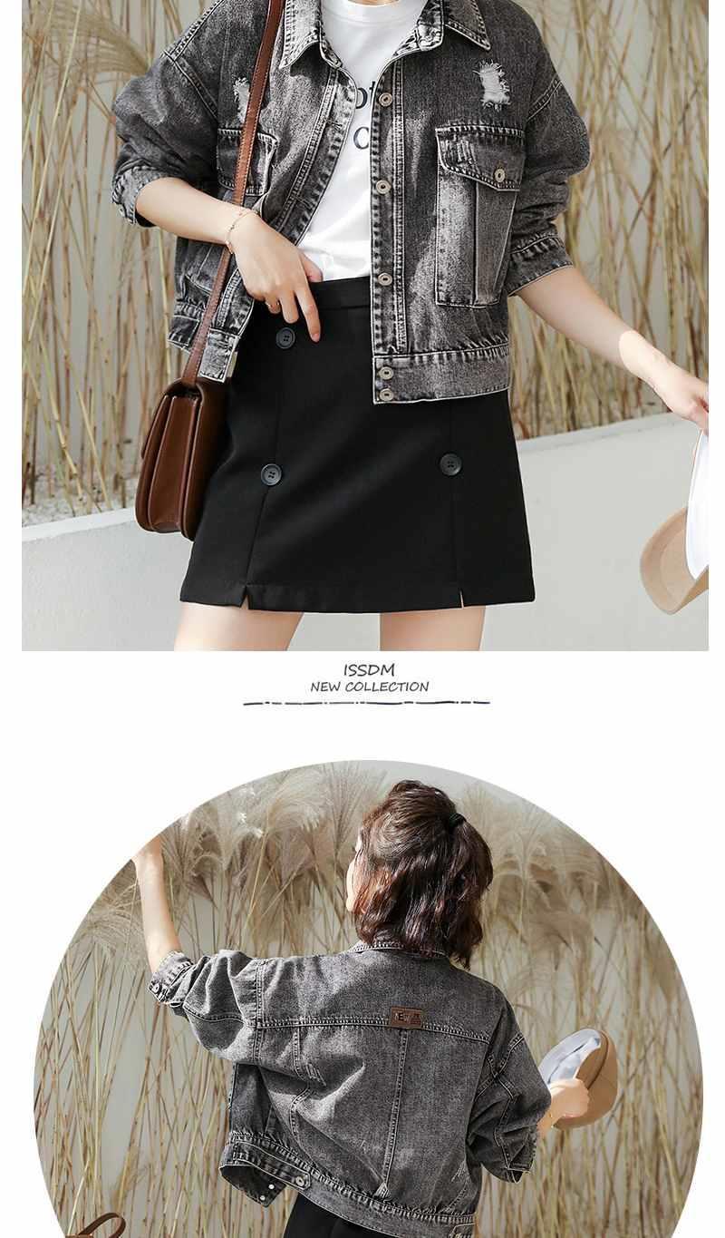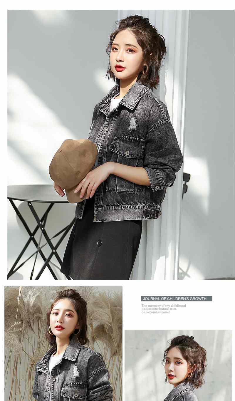 Jaqueta Jeans Shanlidaidi Feminina Estilo Coreano Solta 2025 Primavera e Outono Novo Top Estudante Curto BF Preto Rasgado