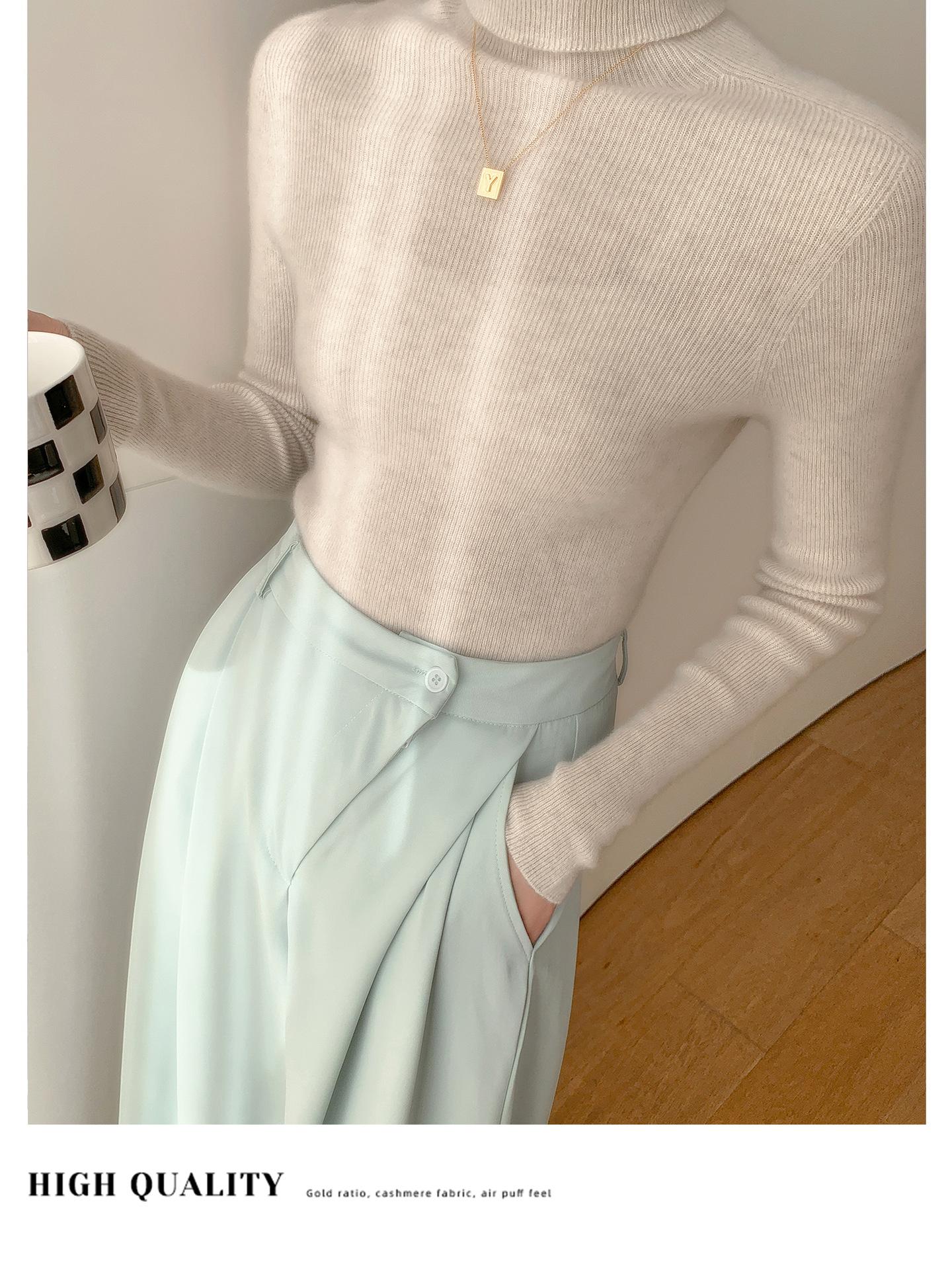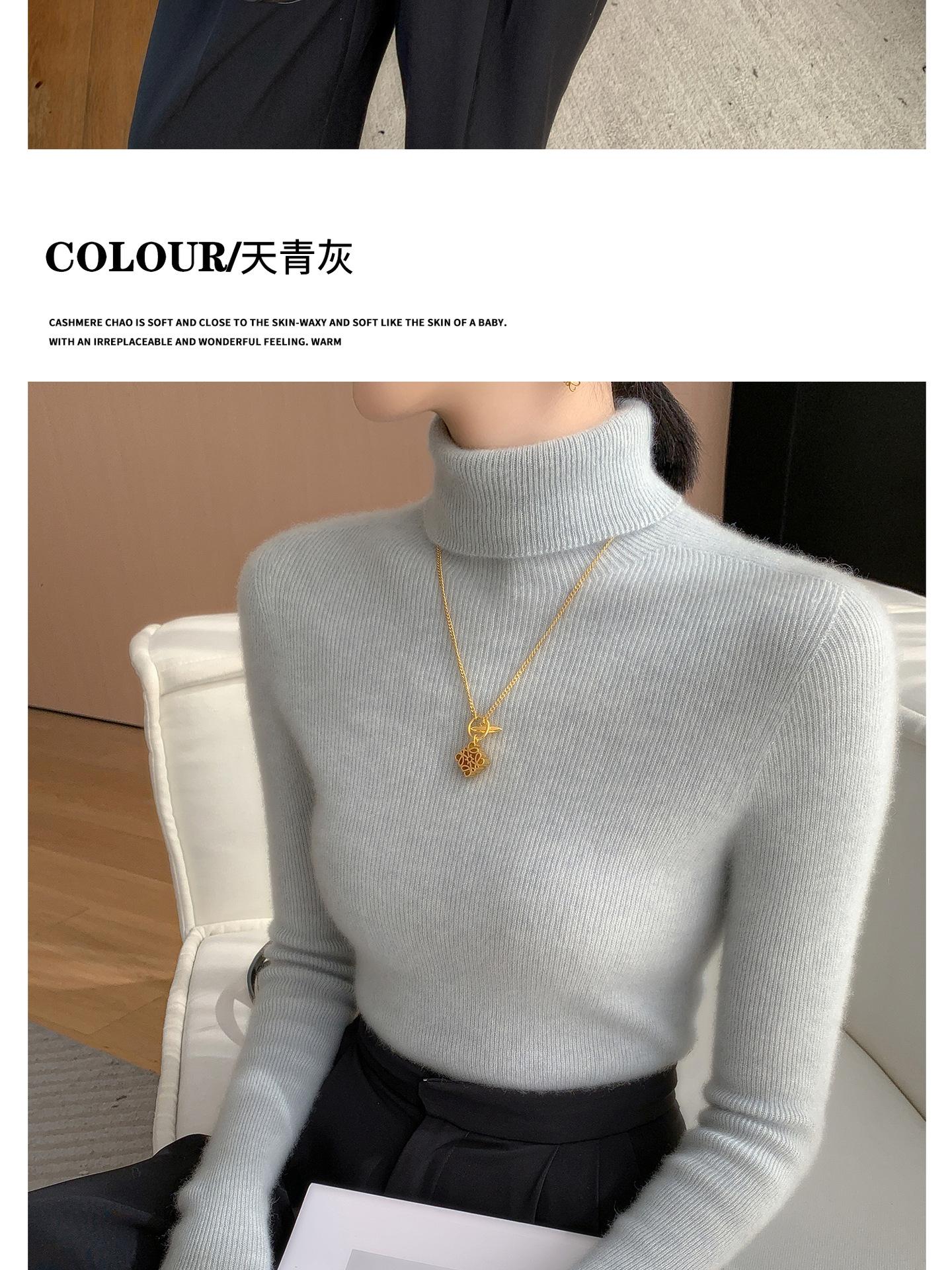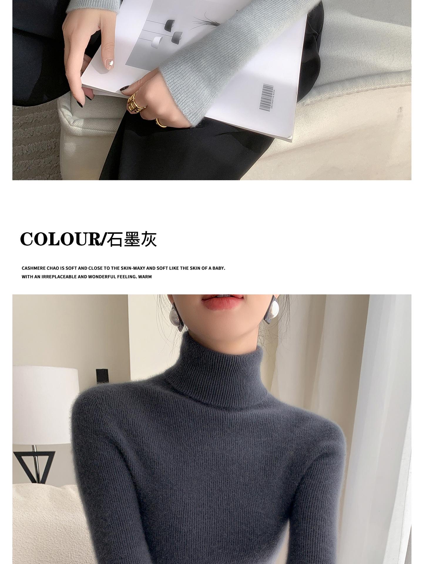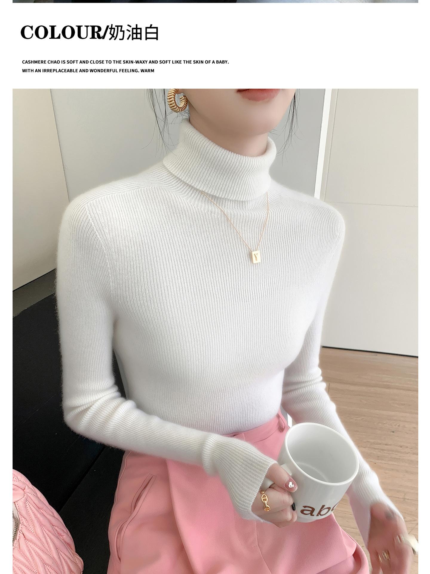 Nova Camada Base de Tricô de Caxemira Outono/Inverno Moda Trabalho Versátil Macia Confortável Solta Emagrecimento Gola Empilhada