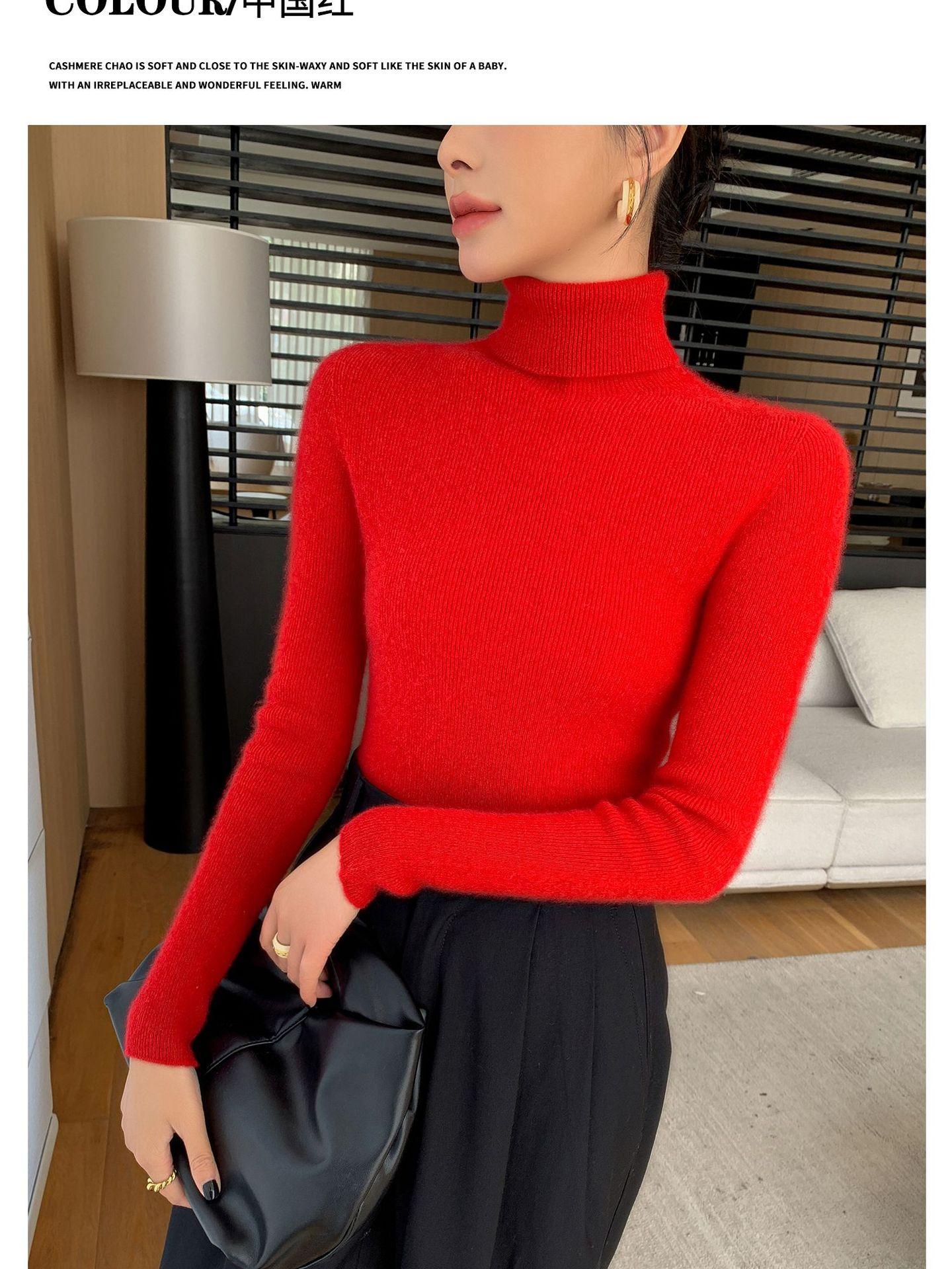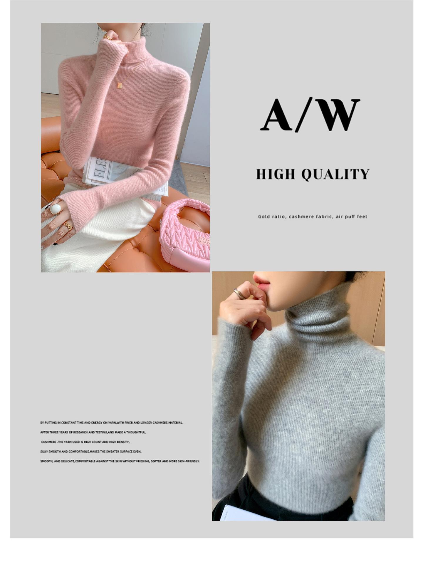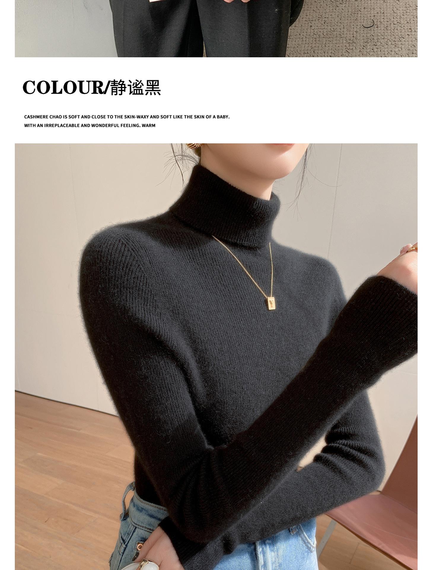Nova Camada Base de Tricô de Caxemira Outono/Inverno Moda Trabalho Versátil Macia Confortável Solta Emagrecimento Gola Empilhada