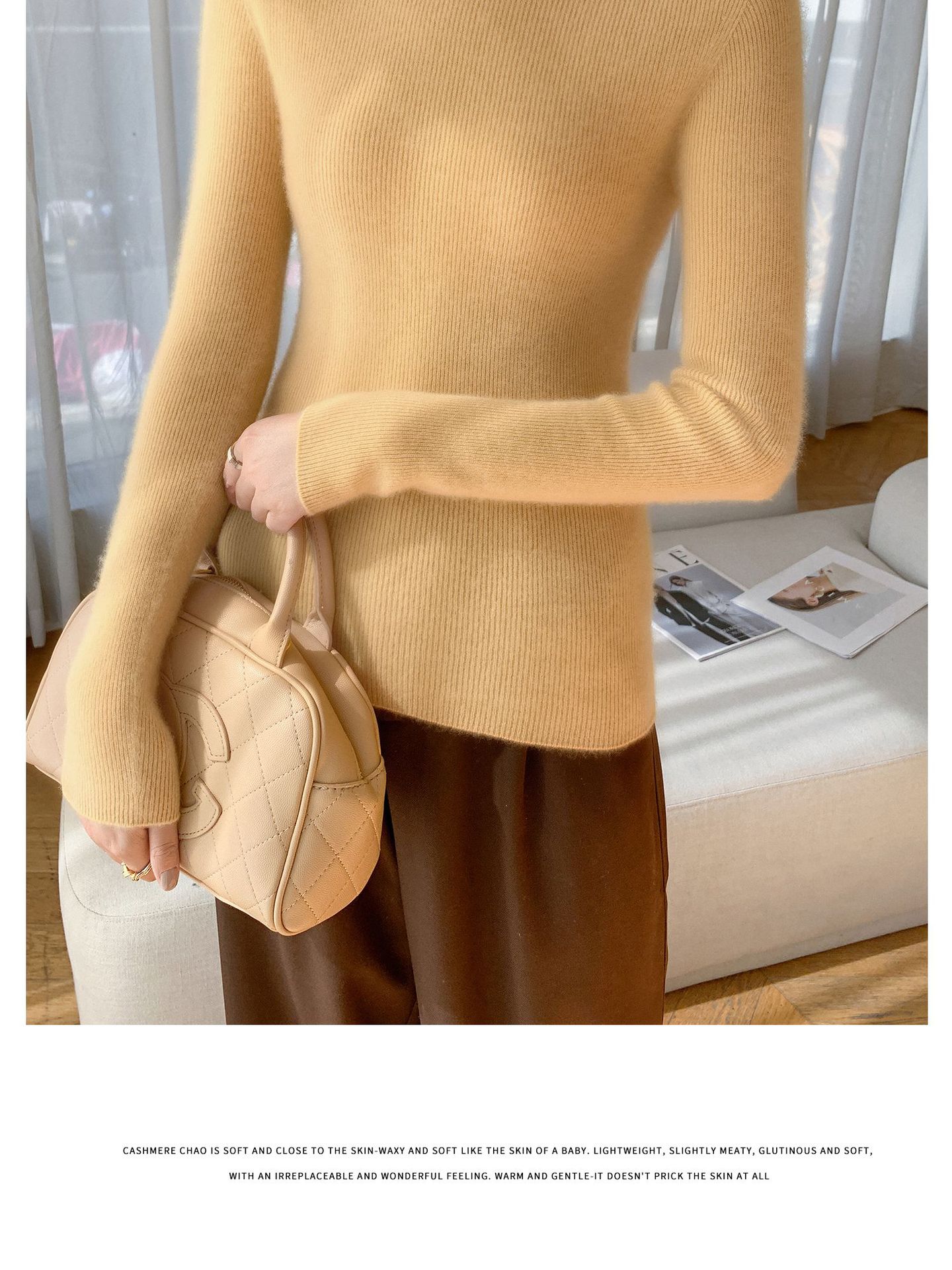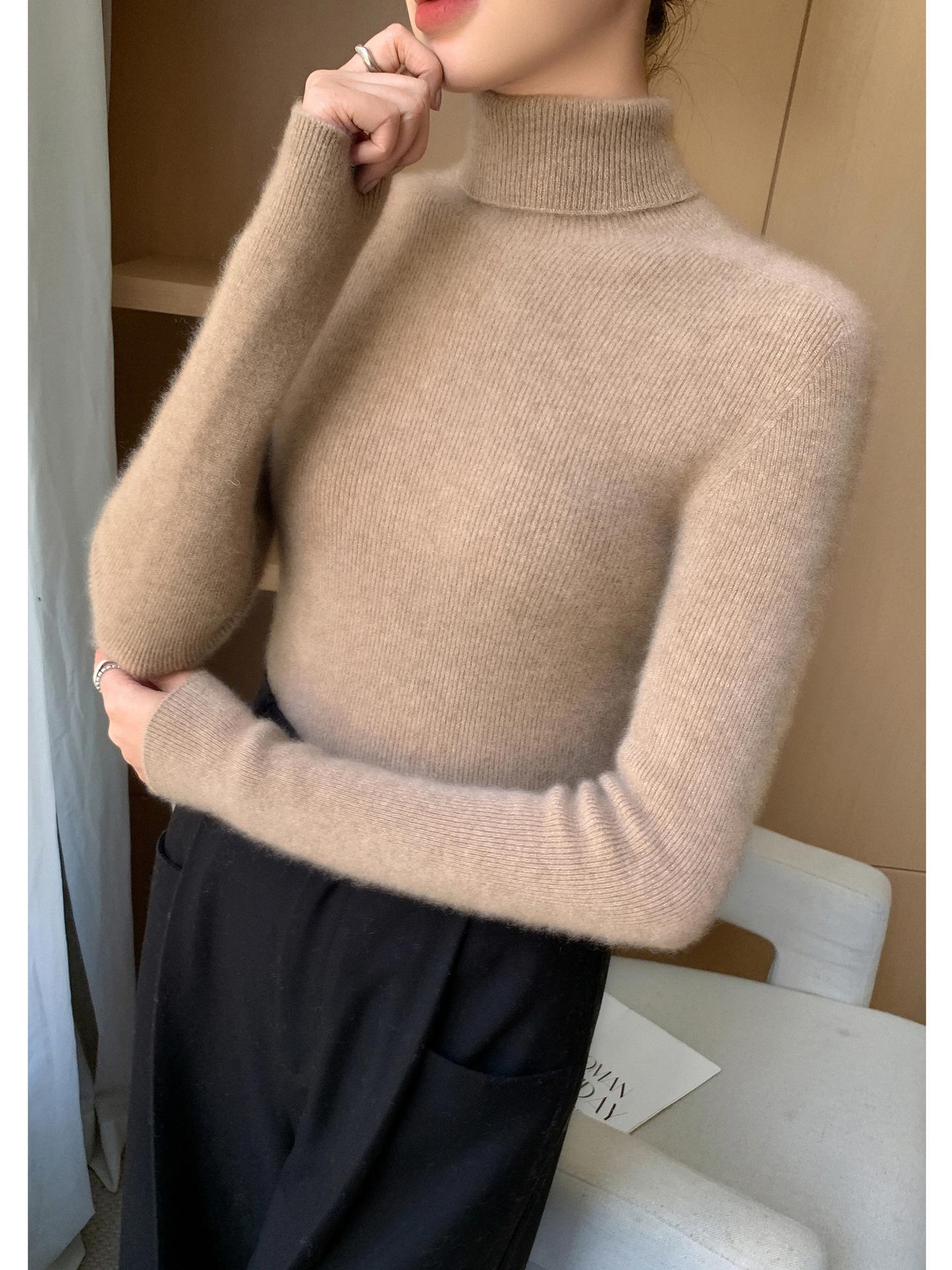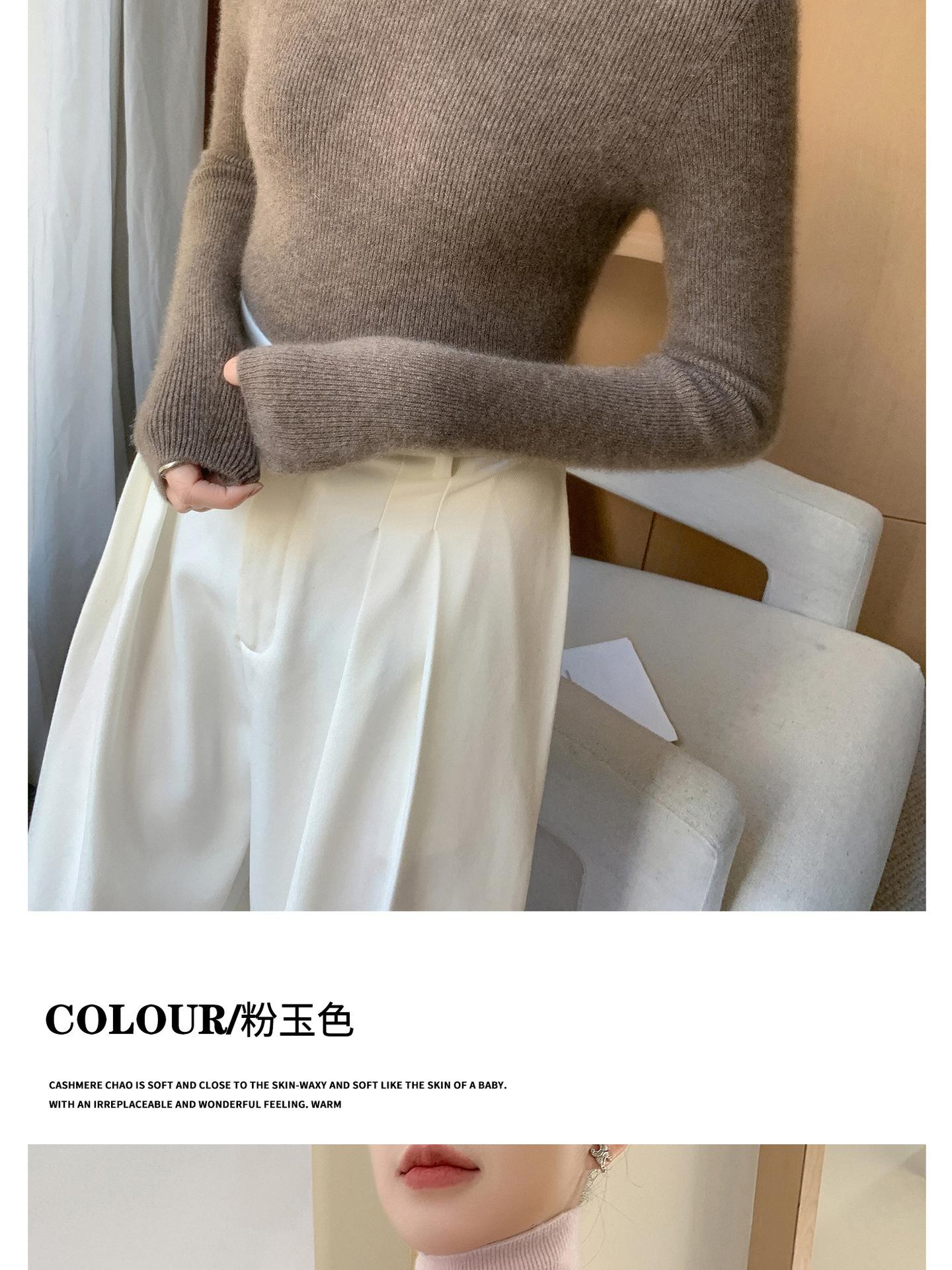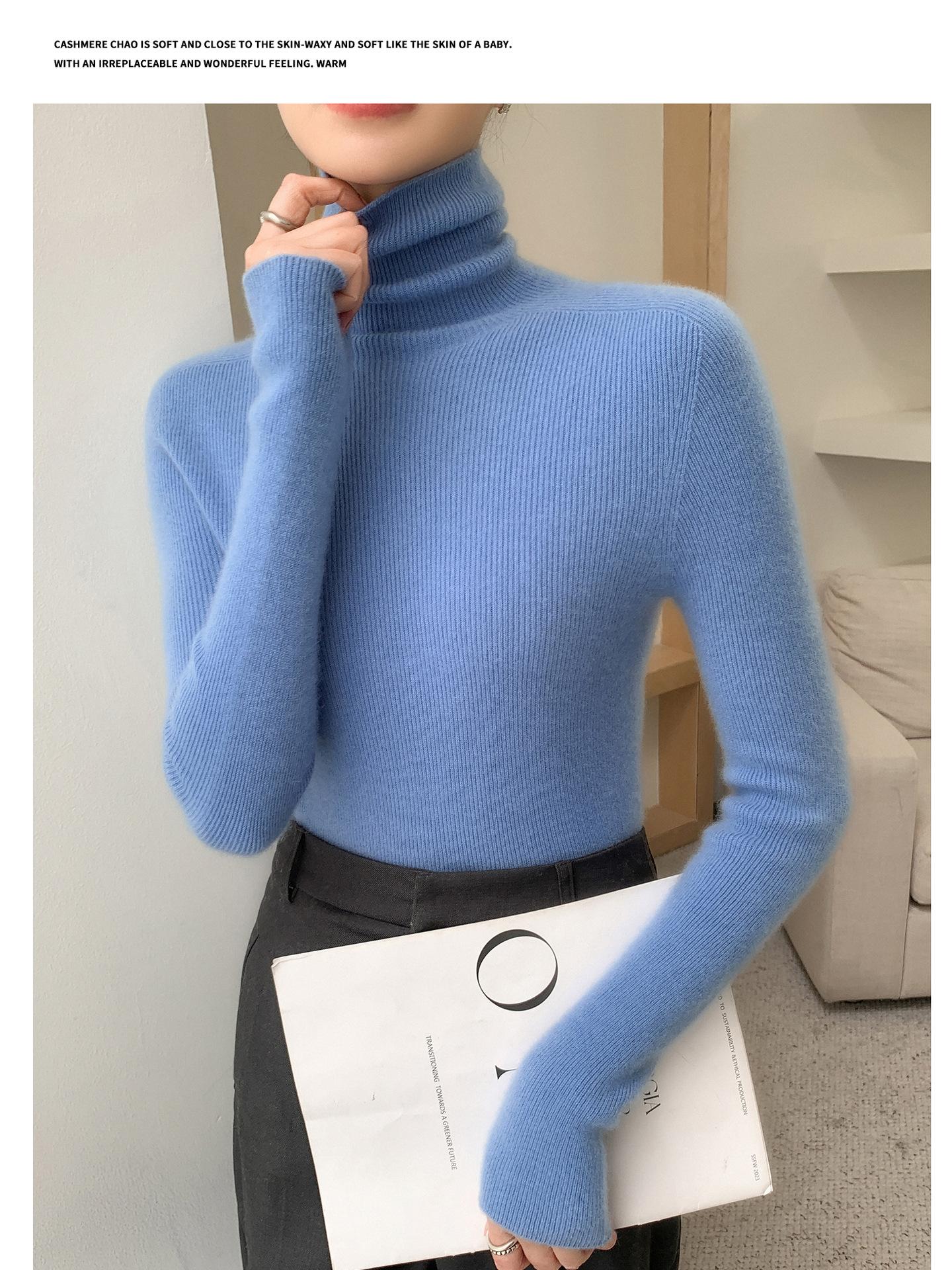 Nova Camada Base de Tricô de Caxemira Outono/Inverno Moda Trabalho Versátil Macia Confortável Solta Emagrecimento Gola Empilhada
