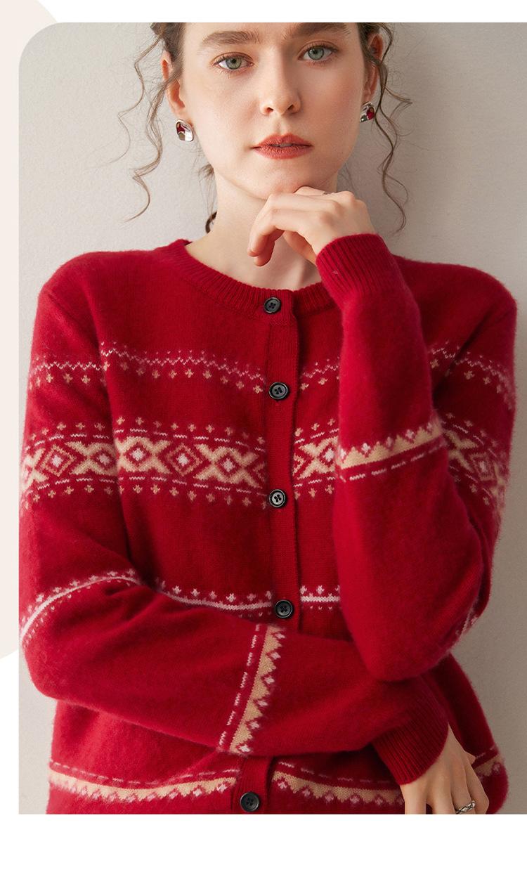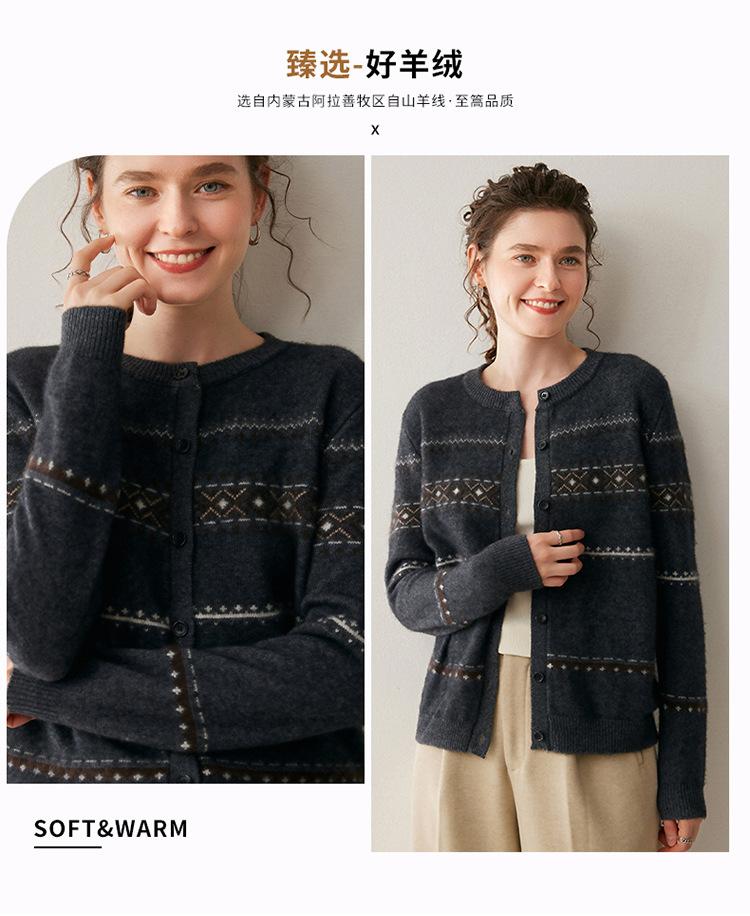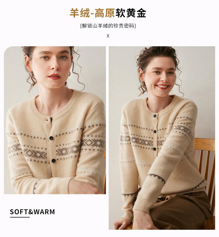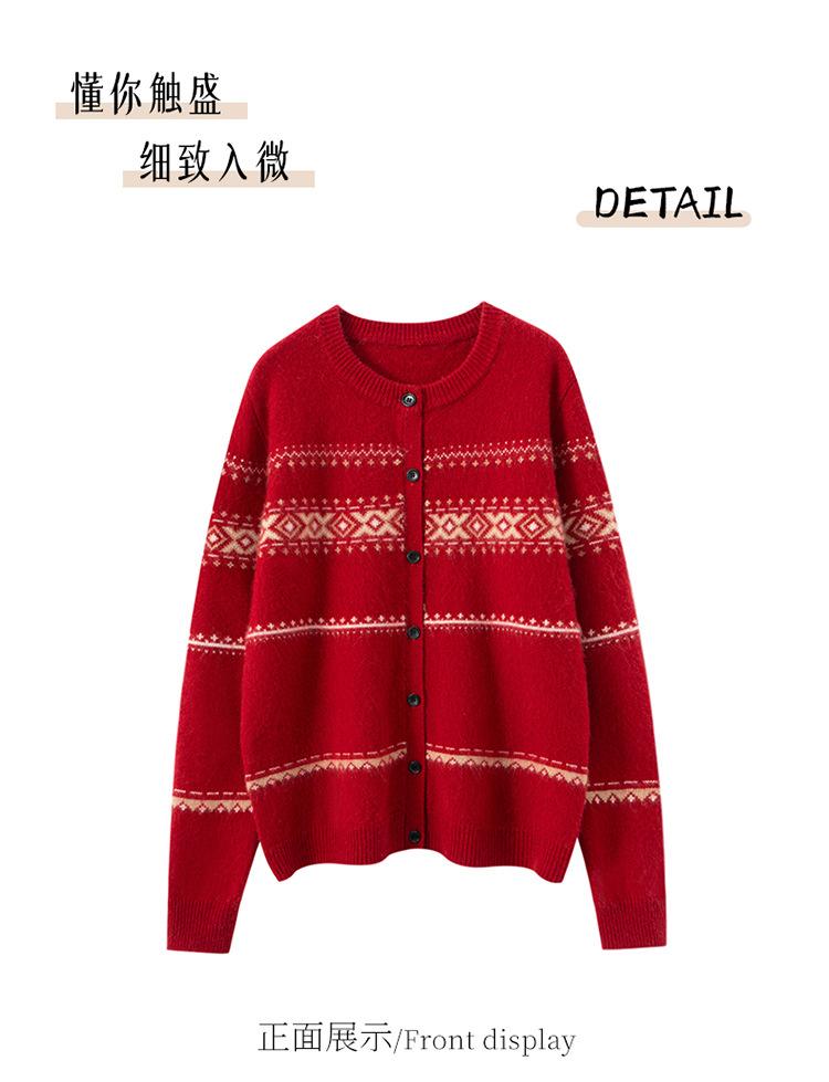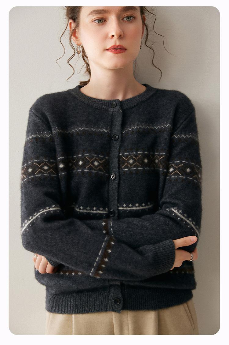Novo Cardigã de Caxemira de Outono e Inverno Gola Redonda Suéter Jacquard Espesso Feminino Solto Emagrecimento Simples Camisa Básica Tricotada
