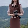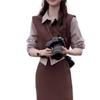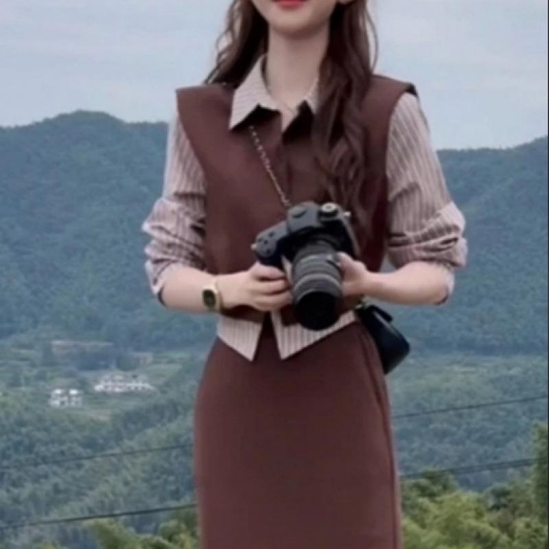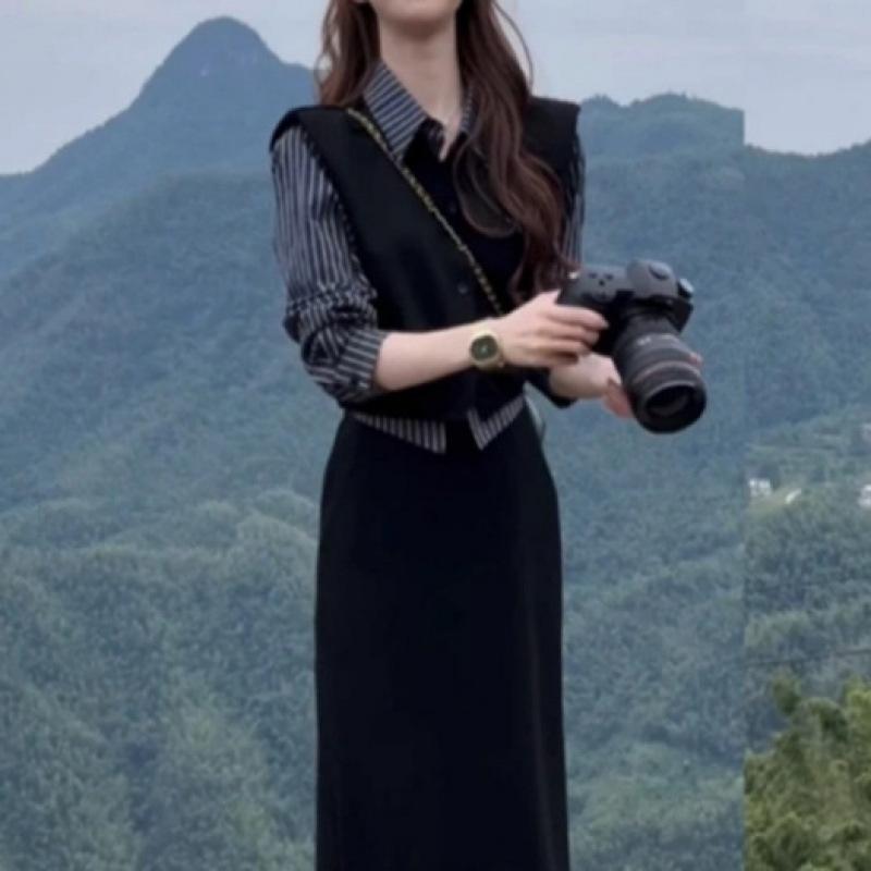 Outono Nova Moda Temperamento Emagrecimento Top Listrado High-End + Saia Midi Conjunto de Moda Feminino