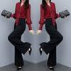 Terno Feminino Moderno e Casual 2025 Outono Novo Estiloso e Estilo Estrangeiro Jaqueta com Gola Alta e Zíper Duplo Calças de Perna Larga Conjunto de Duas Peças