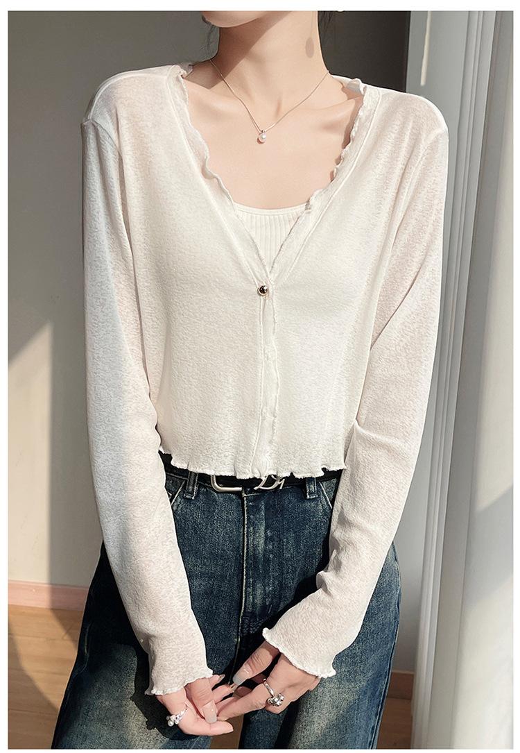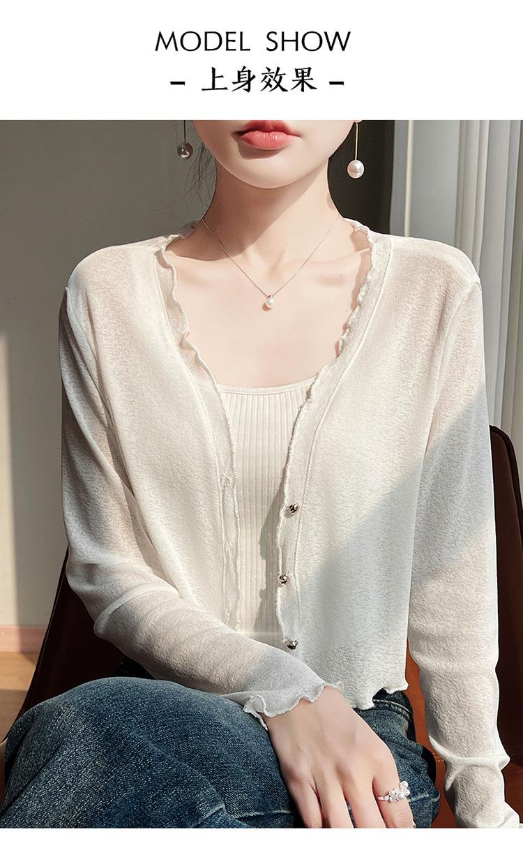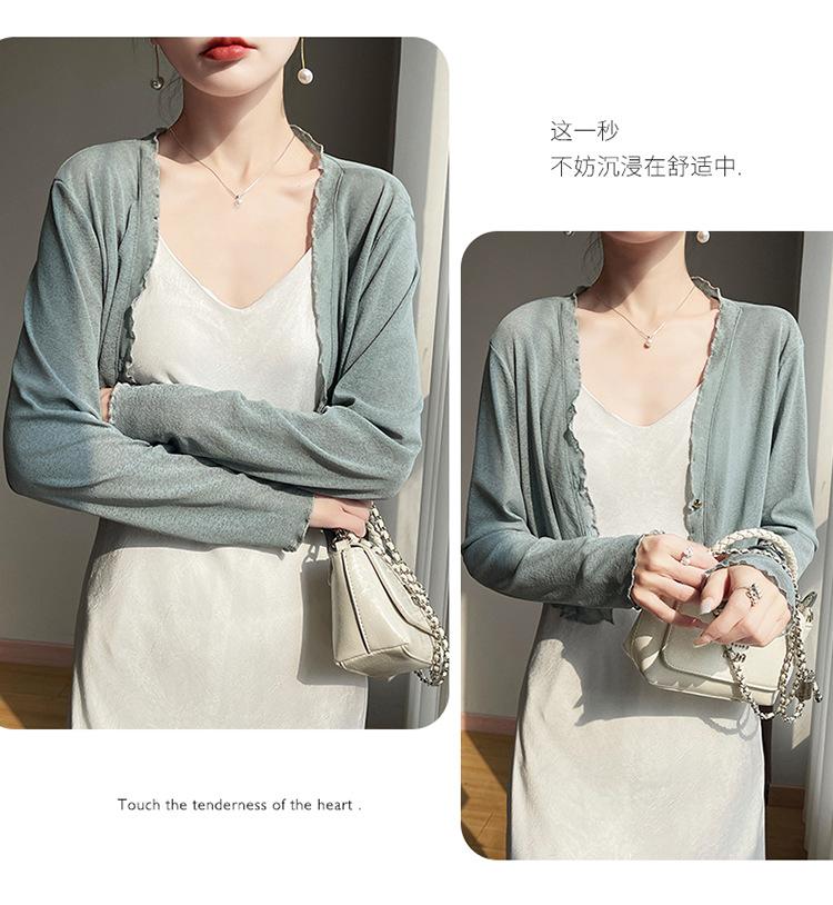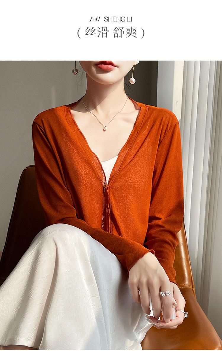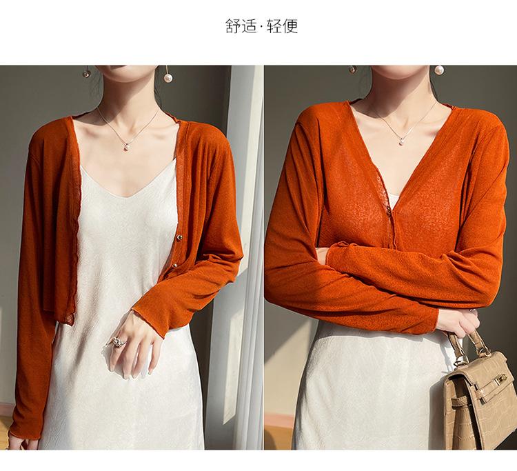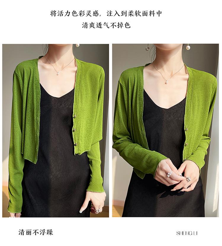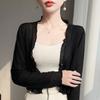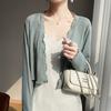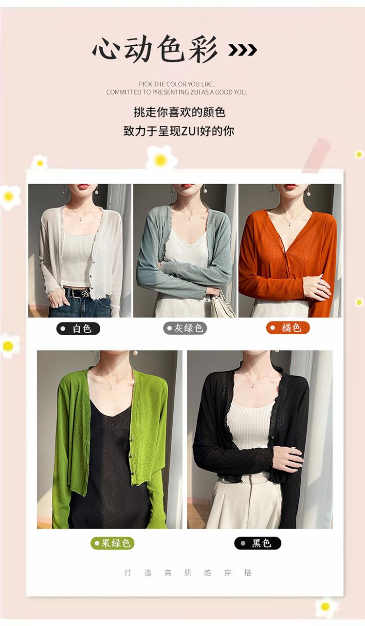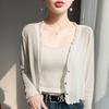 25 Verão Novo Cardigan de Malha Decote V Feminino Curto Cor Sólida Fino Senso de Design Blusa Roupa Protetora Solar