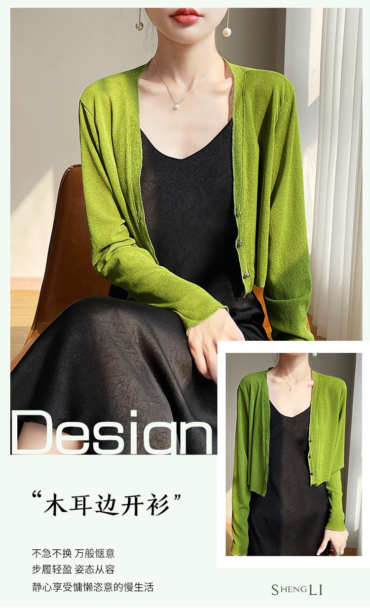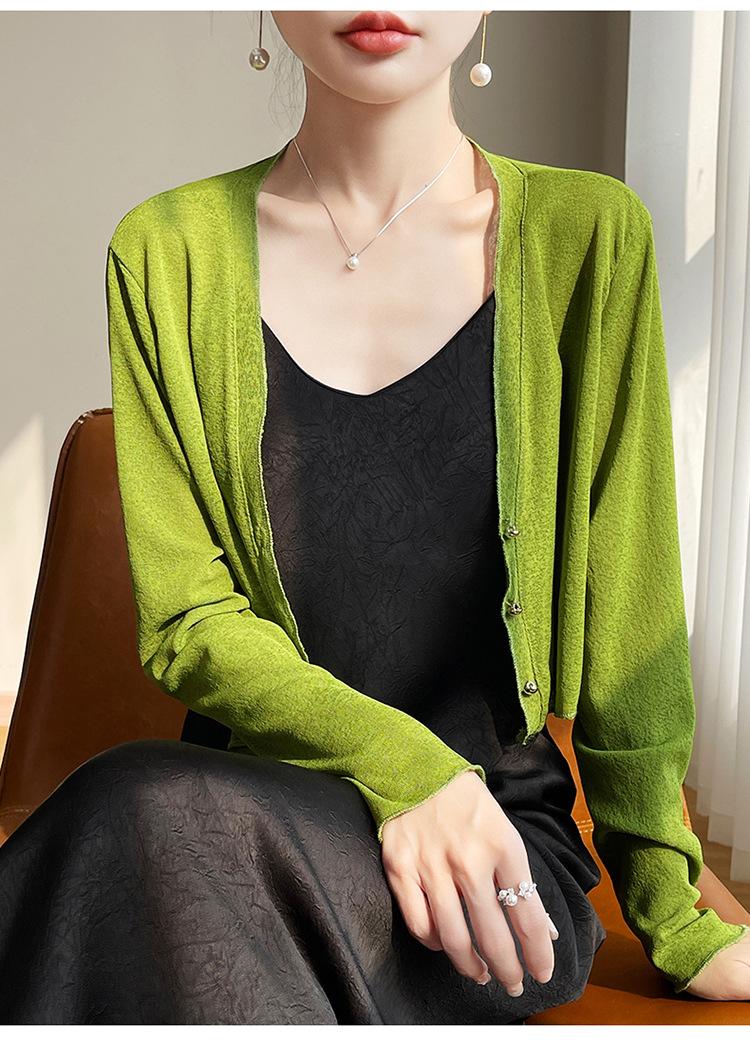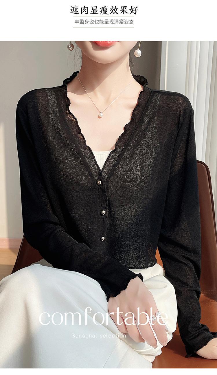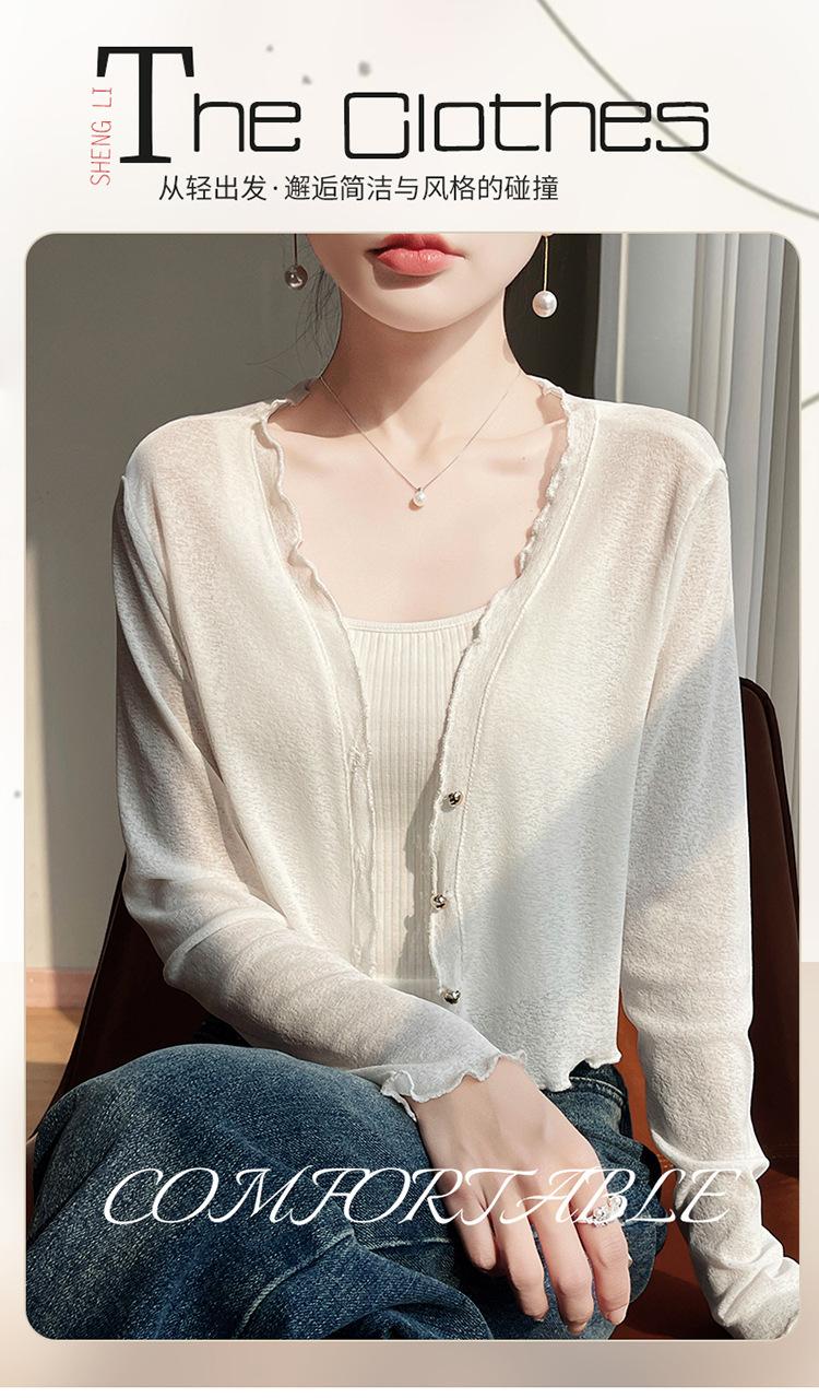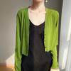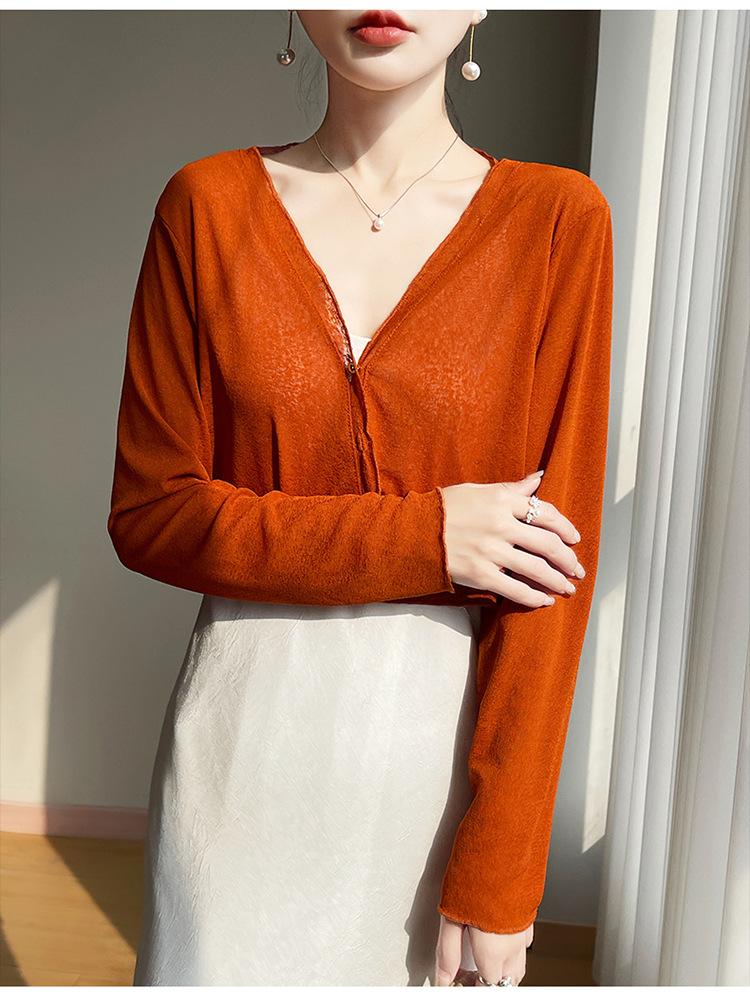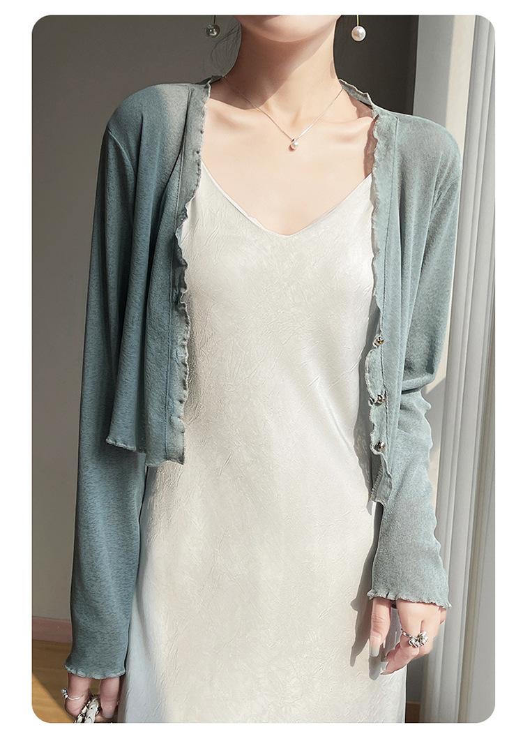 25 Verão Novo Cardigan de Malha Decote V Feminino Curto Cor Sólida Fino Senso de Design Blusa Roupa Protetora Solar