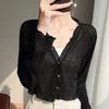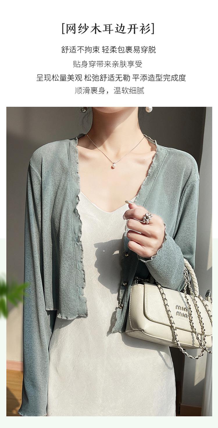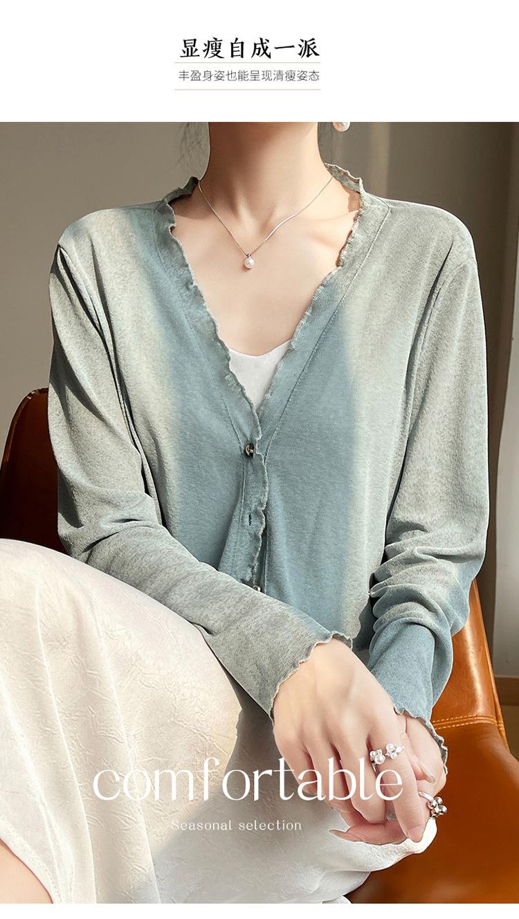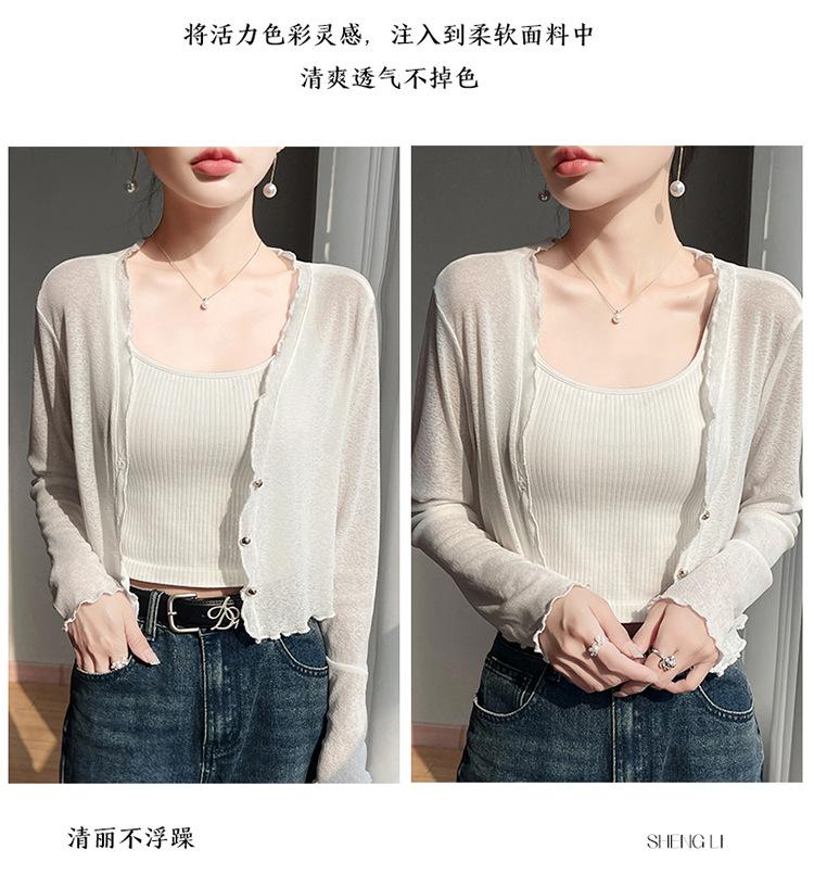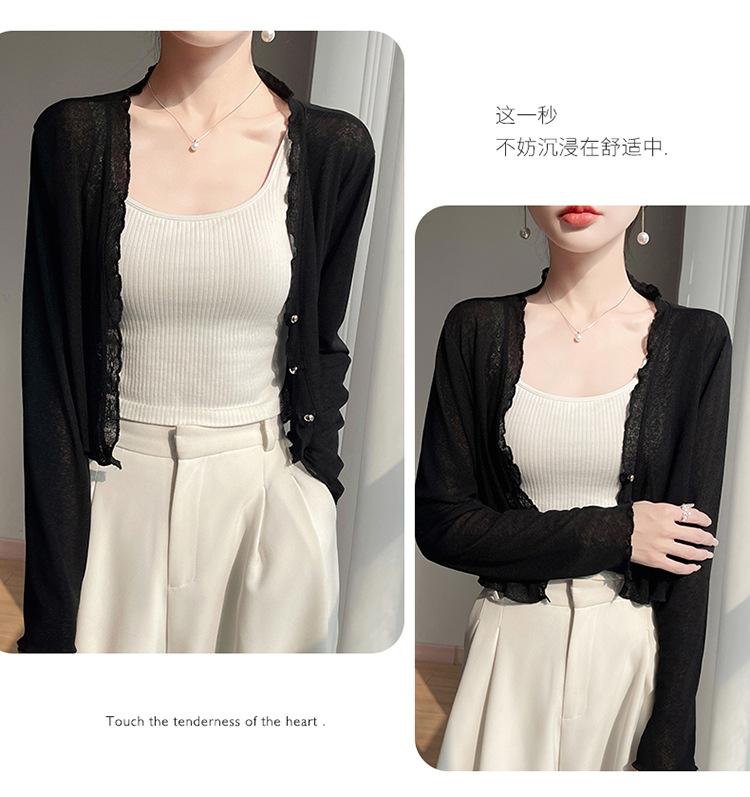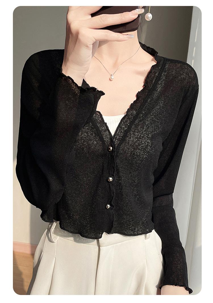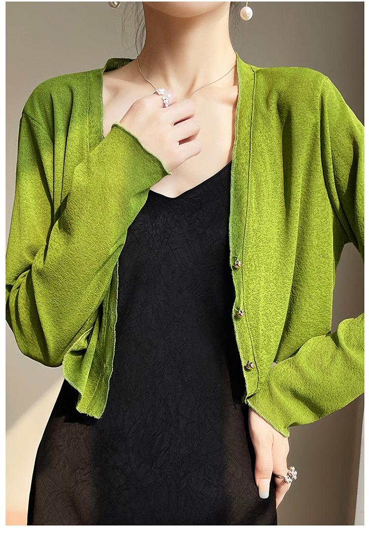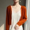 25 Verão Novo Cardigan de Malha Decote V Feminino Curto Cor Sólida Fino Senso de Design Blusa Roupa Protetora Solar