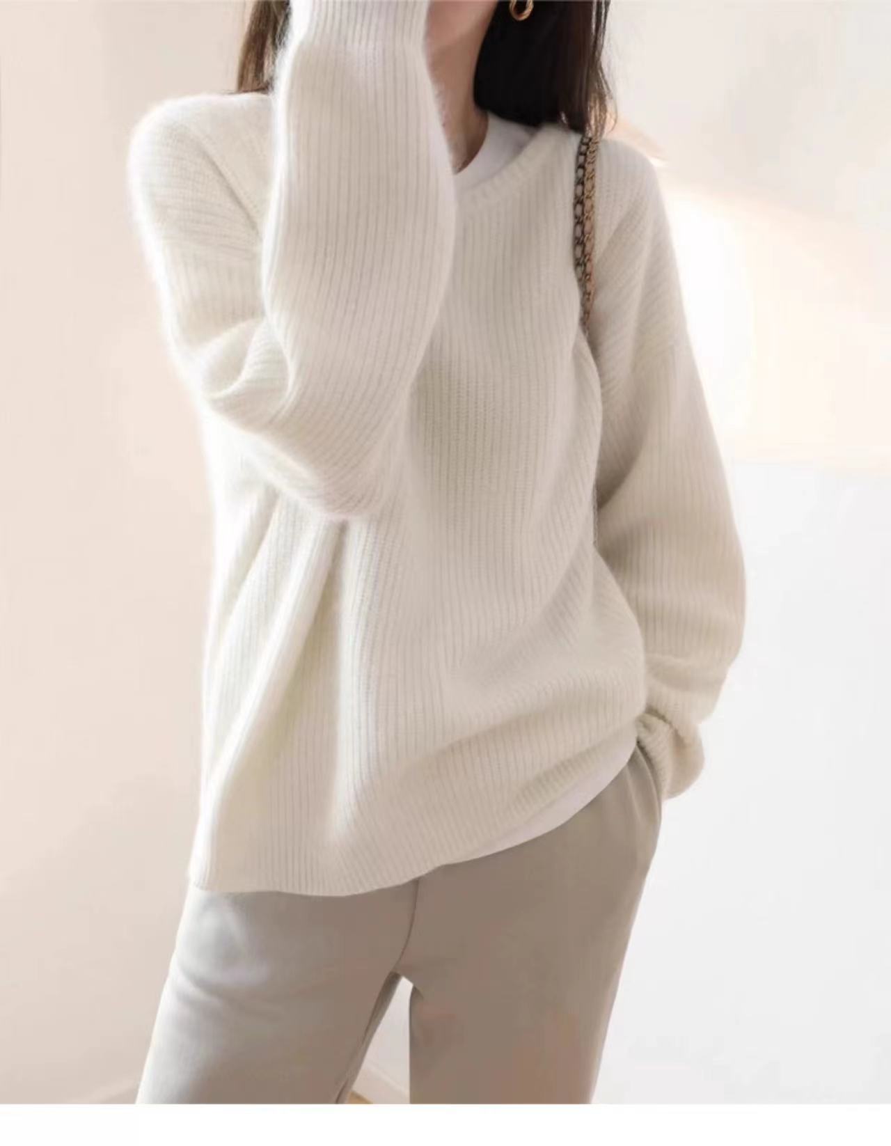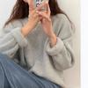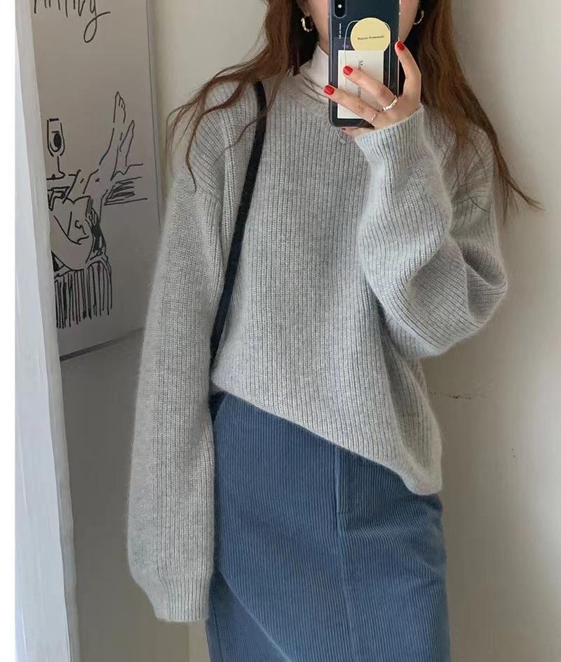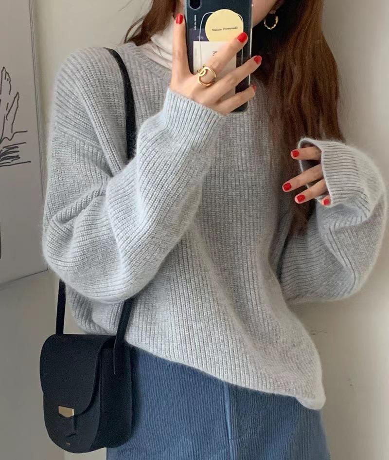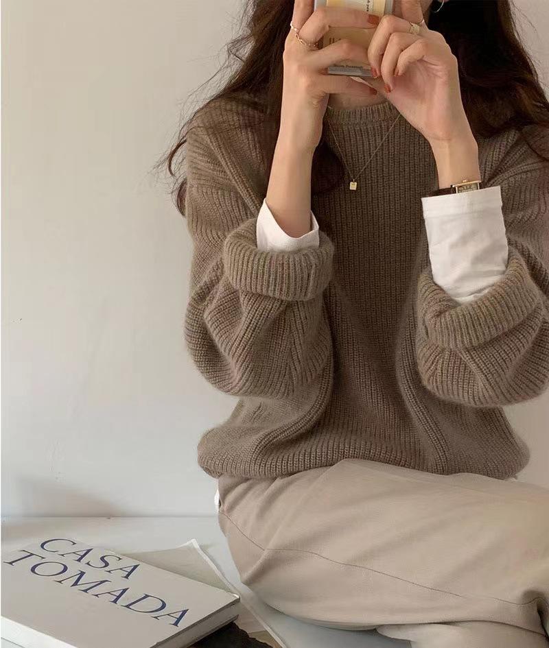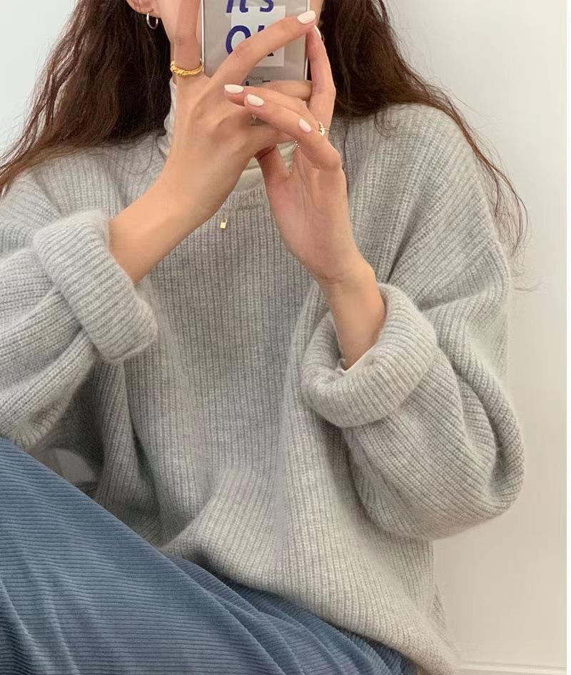 Suéter de Caxemira Estilo Europeu Outono/Inverno Feminino 2025 Outono/Inverno Novo Macio e Aconchegante Solto Preguiçoso Grosso Lã Base Suéter